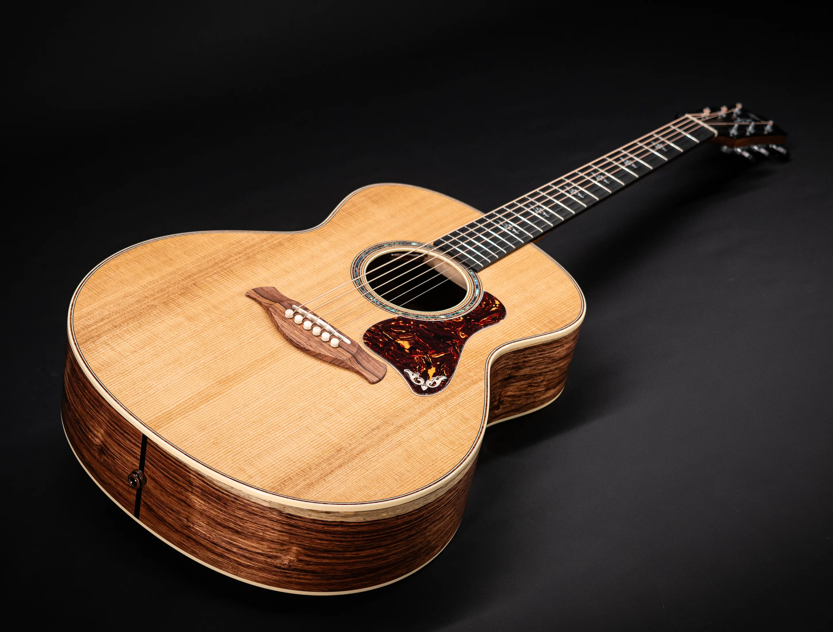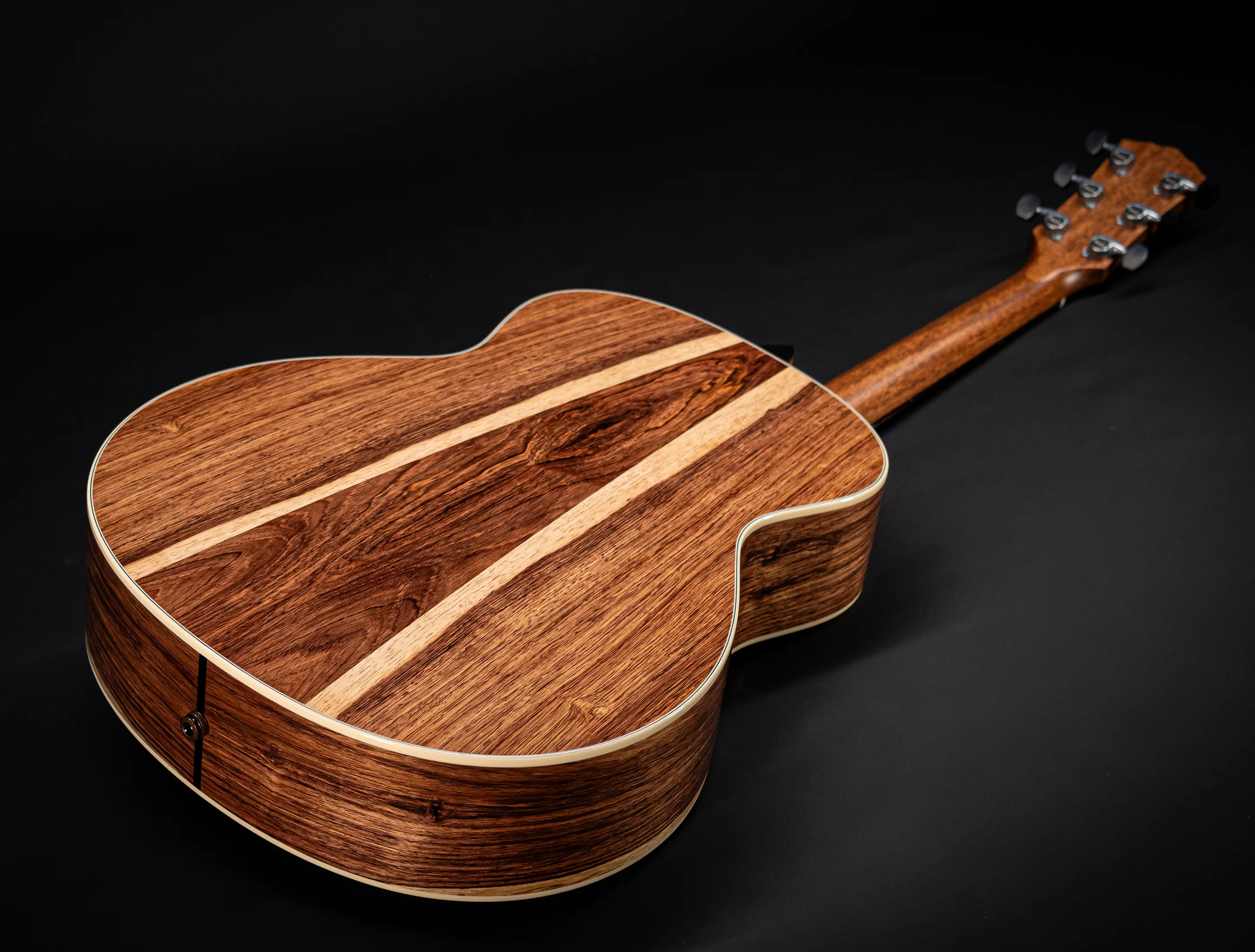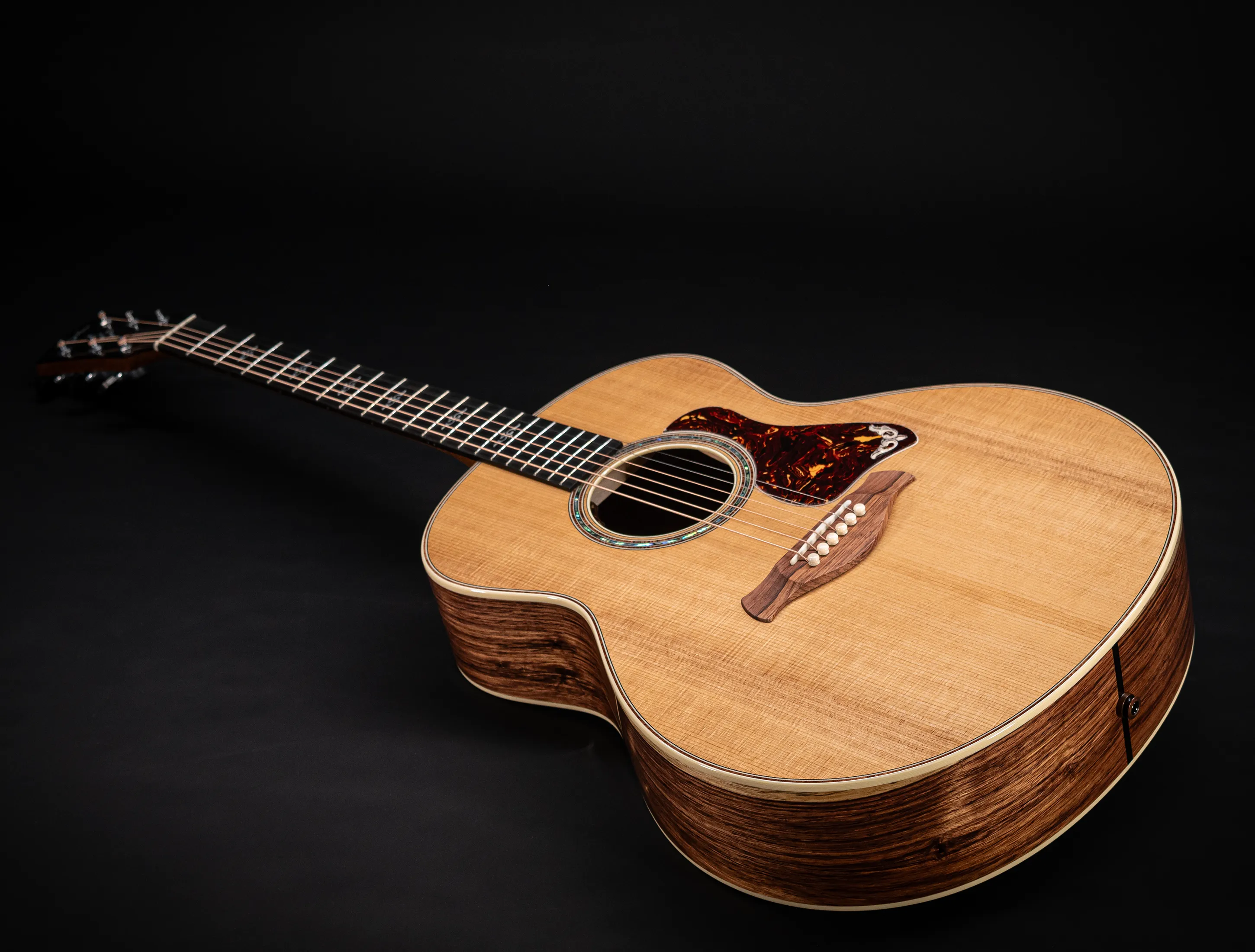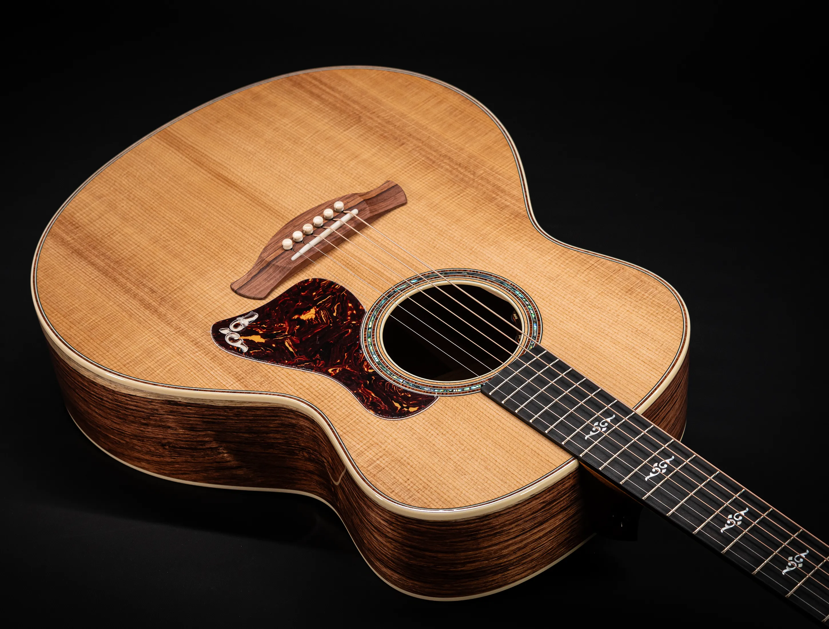 Höchste Aufmerksamkeit für das Detail ist hier natürlich gegeben. Dies beginnt beim erlesensten Honduras-Palisander für den Korpus, welcher eine wunderschöne, natürlich Maserung aufweist und sein - von Natur aus - niedriger Dämpfungsfaktor eine sehr strukturiertes, harmonische Klangbild mit üppigen schwingenden Obertönen verleiht. Mit seinen klaren Höhen und der Präsenz im Bassbereich passt die sanfte "Stimme" des honduranischen Palisanders perfekt zum Gesamtcharakter der Gold-Label.