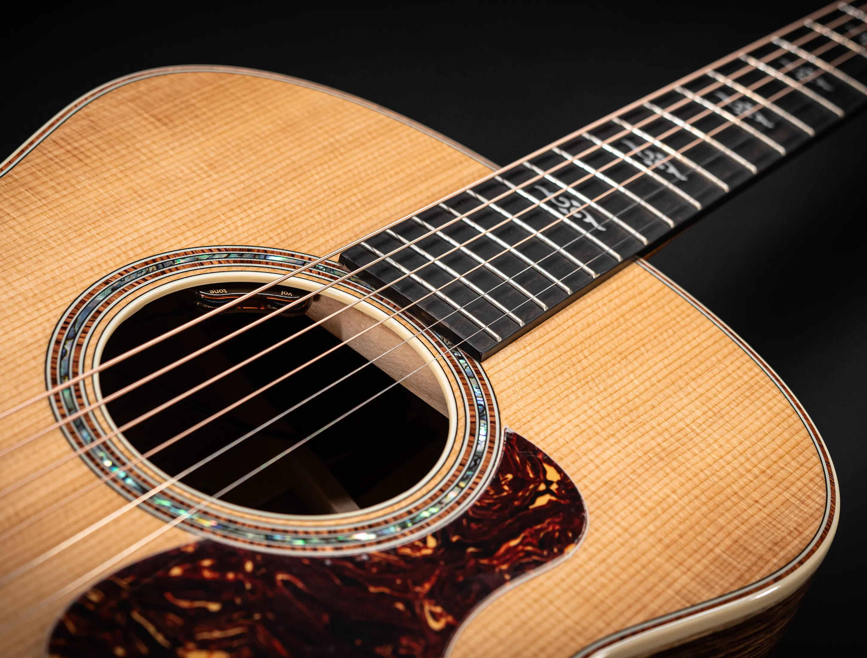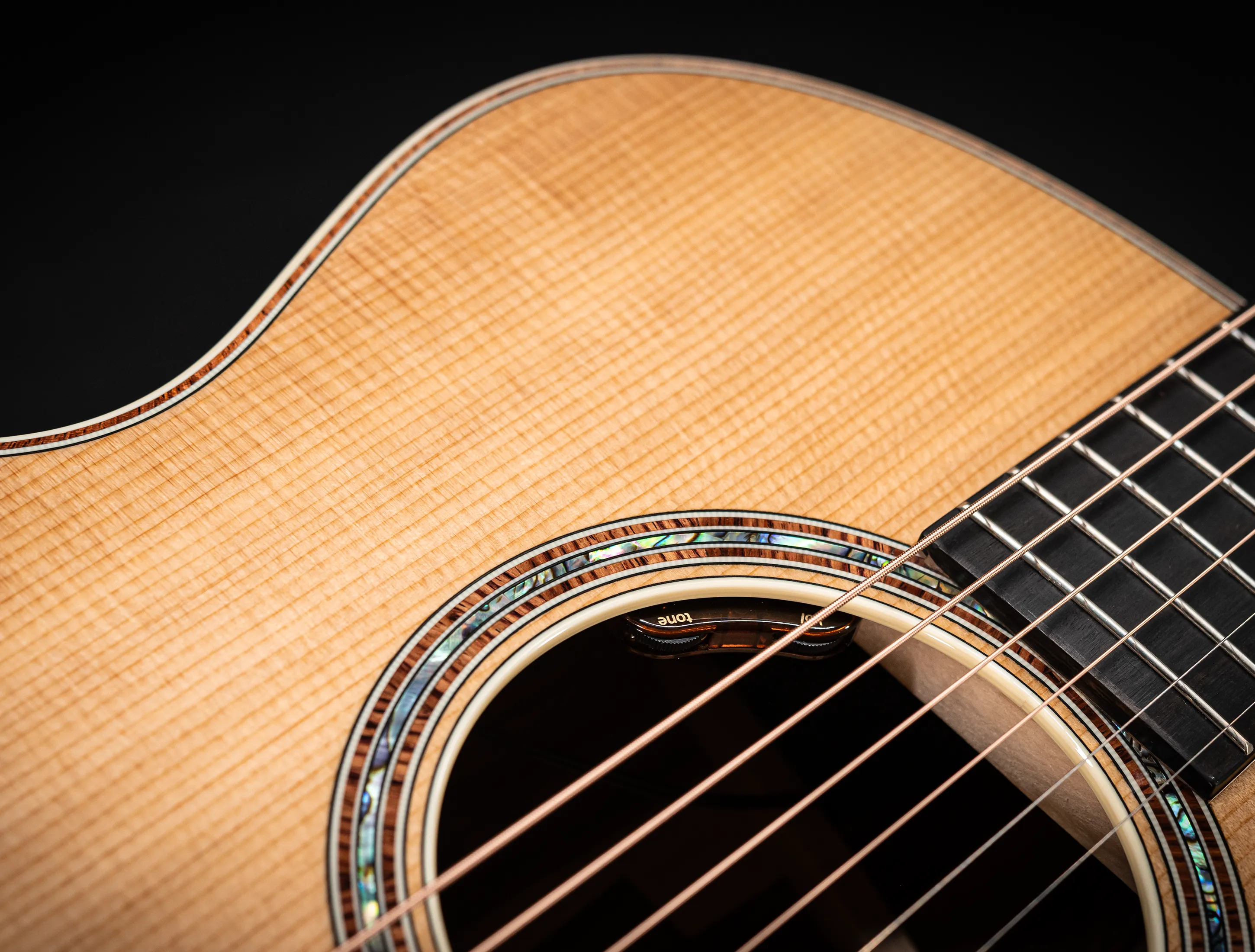 Final wurde die Gold-Label 814e mit dem beliebten L.R.Baggs Element VTC (Volume-Tone-Compression) Tonabnehmer ausgestattet, ein Piezo-Tonabnehmer welcher speziell für Akustikgitarren abgestimmt wurde und über einen dezenten Volumen-& Tonregler im Schalllochrand regelbar ist.