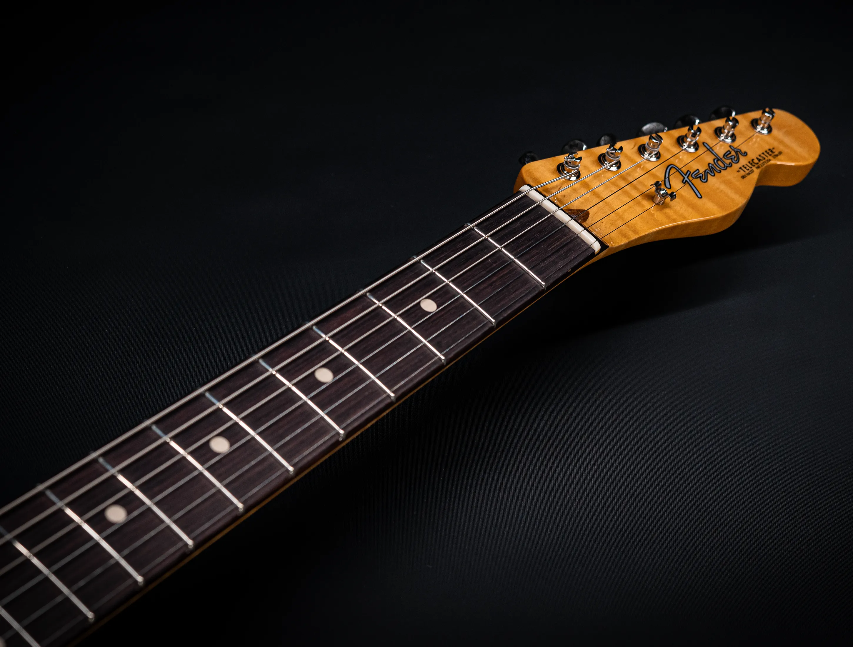 - Halsmaterial: vom Custom Shop ausgesuchter geflammter AAA premium Ahorn