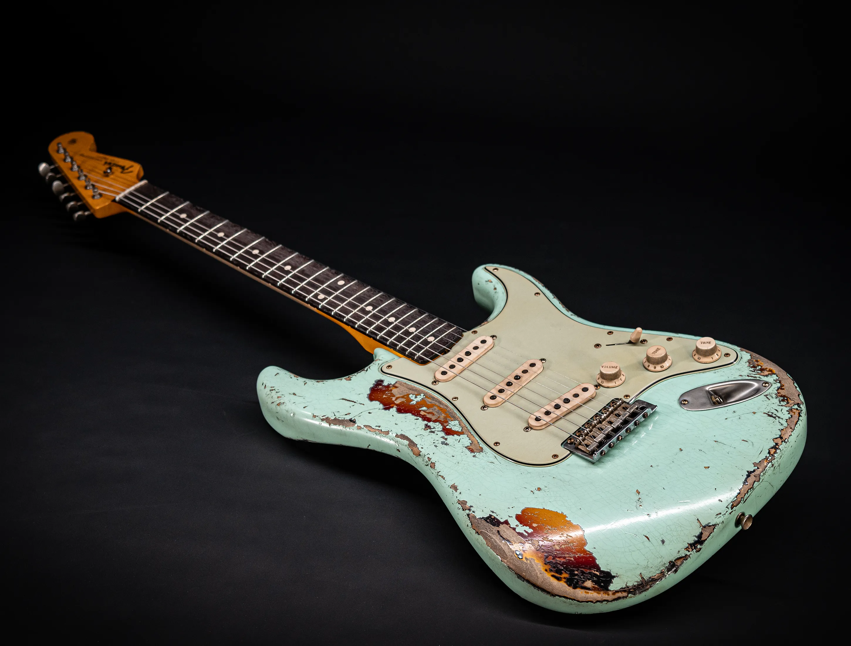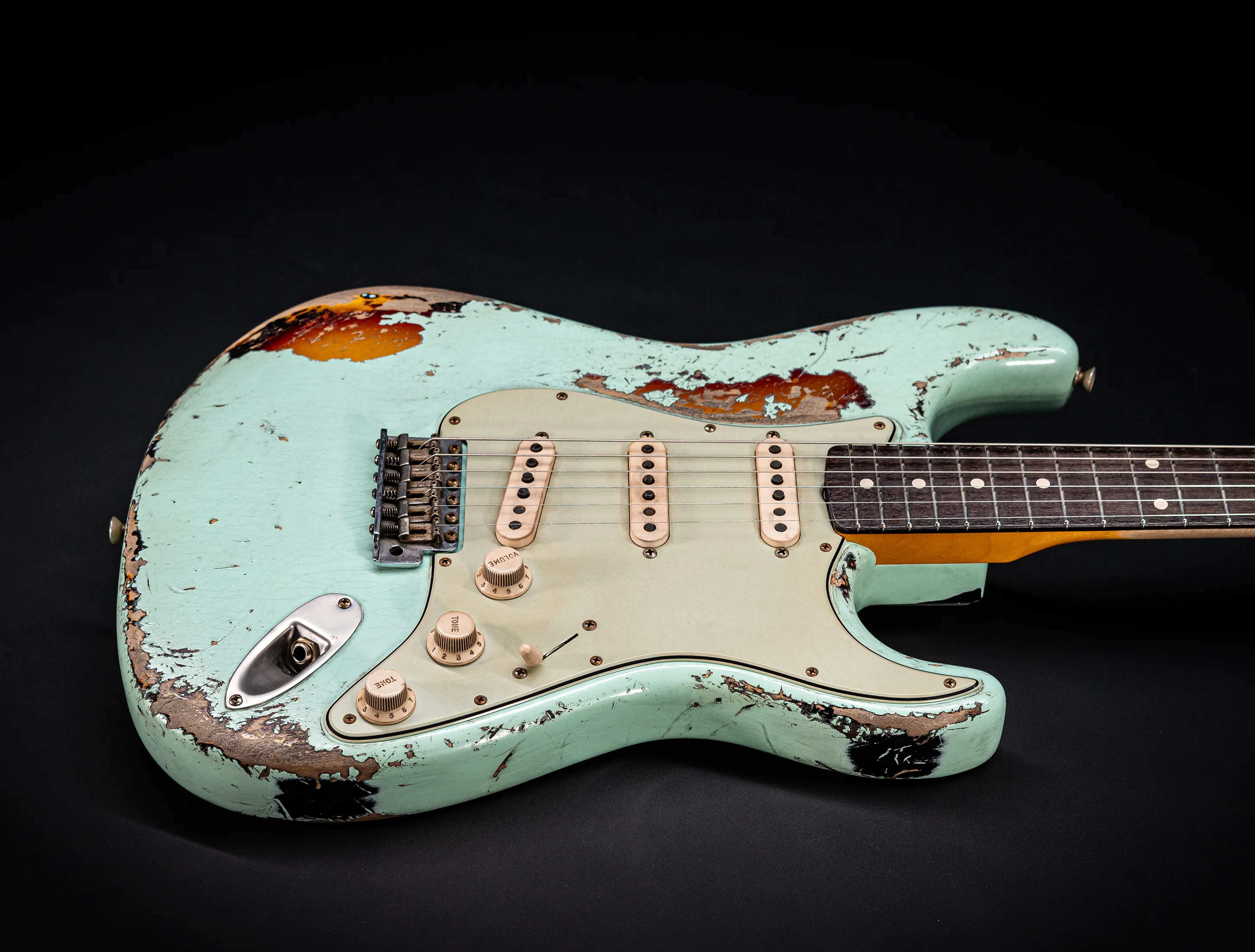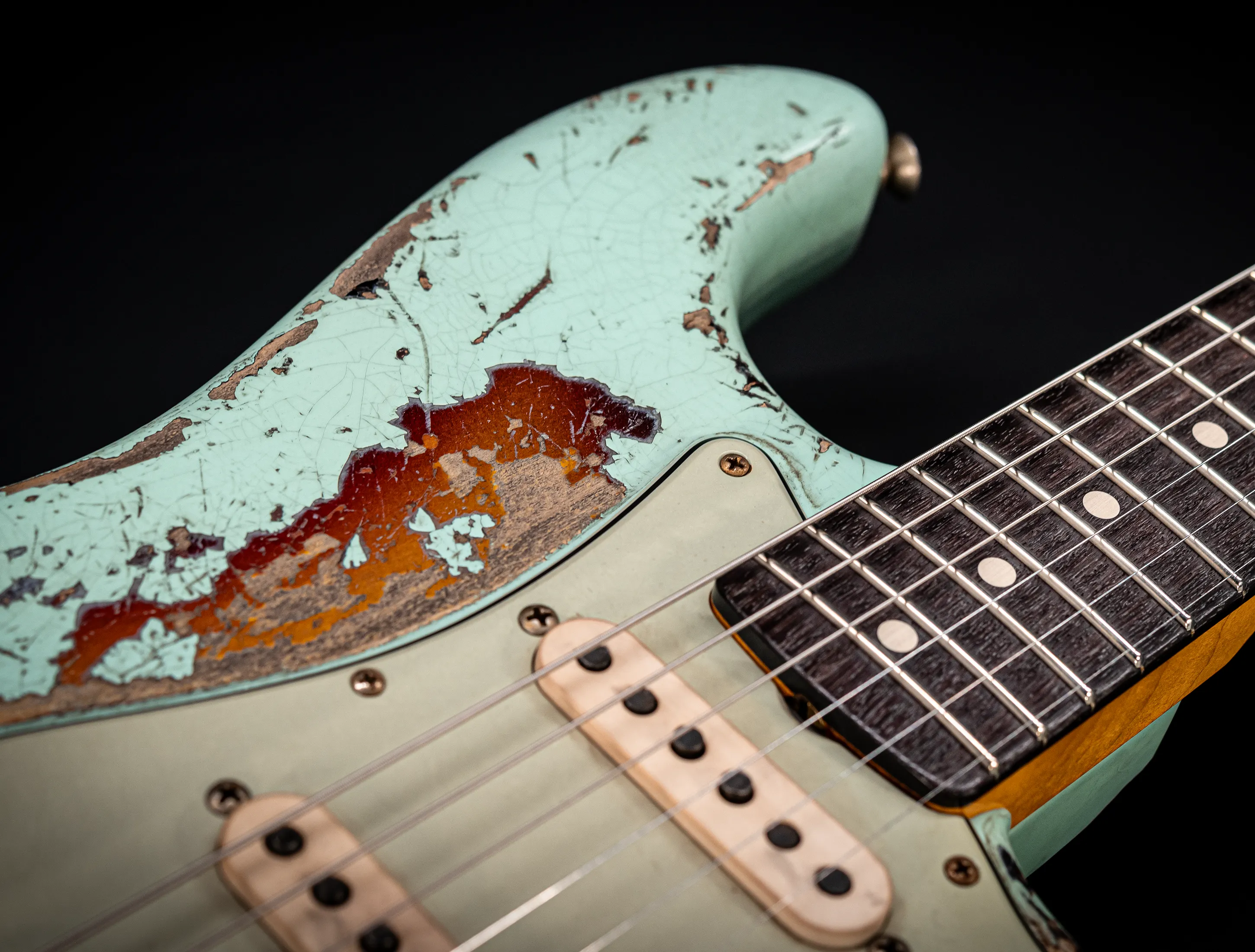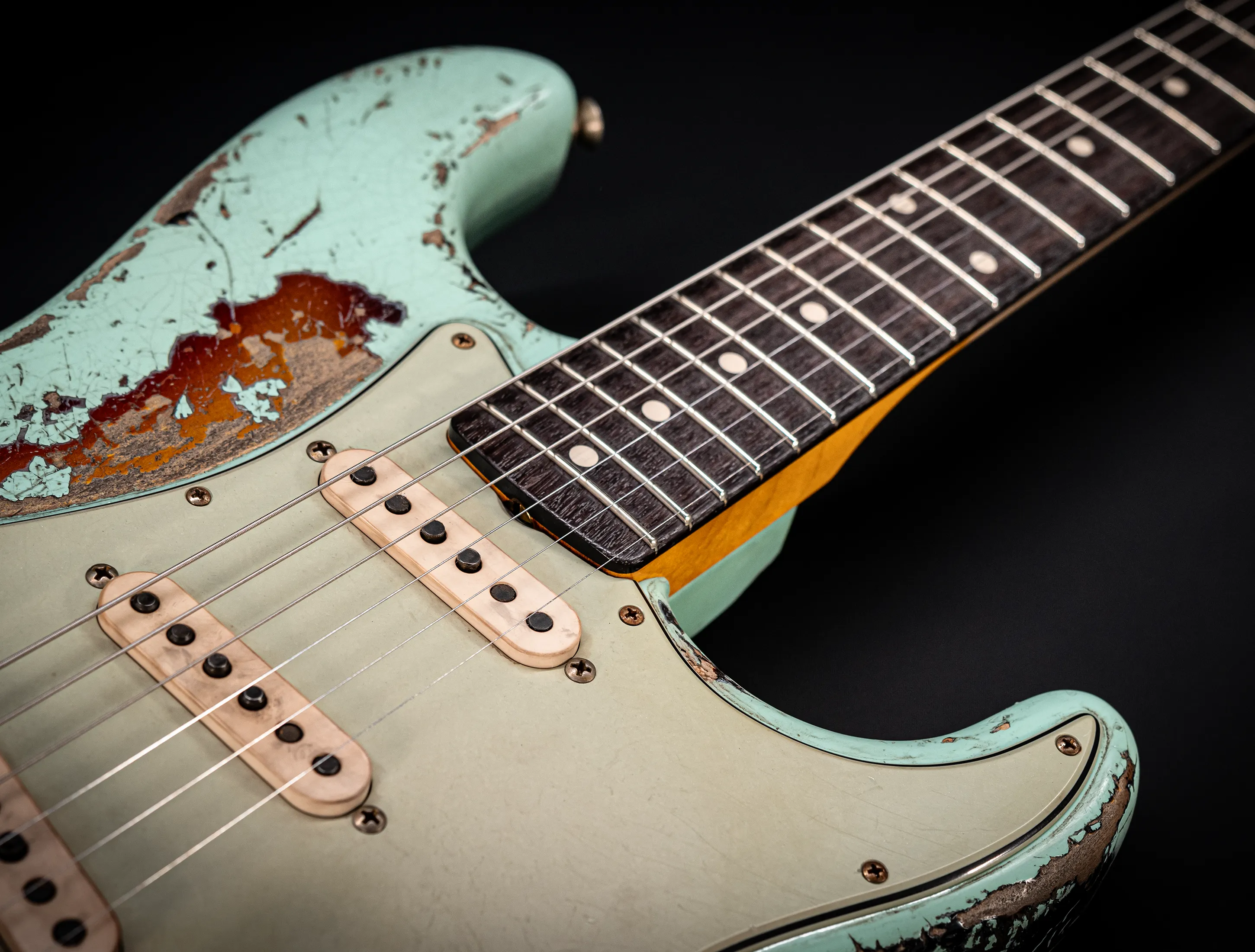Fender Masterbuilt Austin MacNutt 1961 F-branded Ex Pin-Up Stratocaster Heavy Relic Surf Green over Sunburst