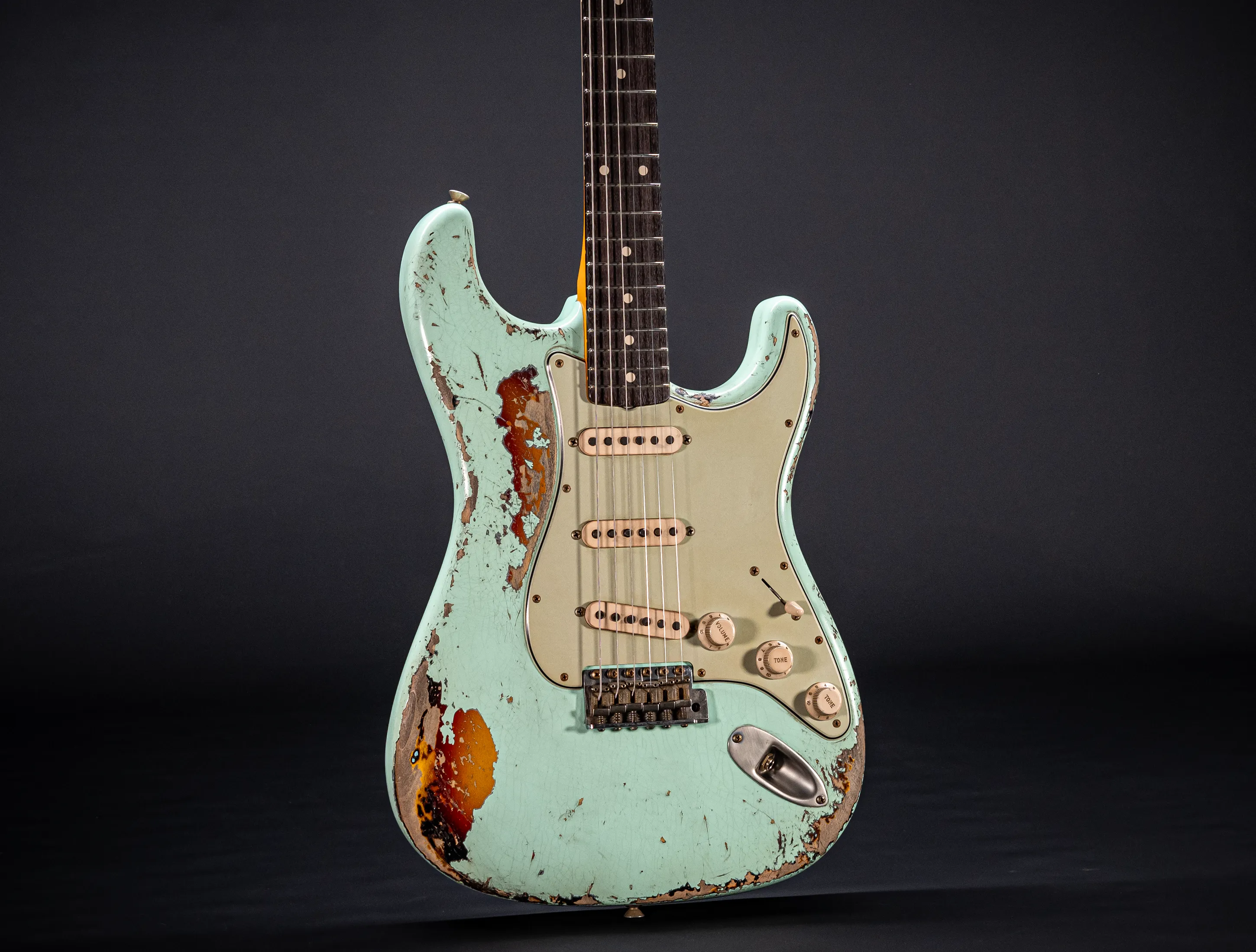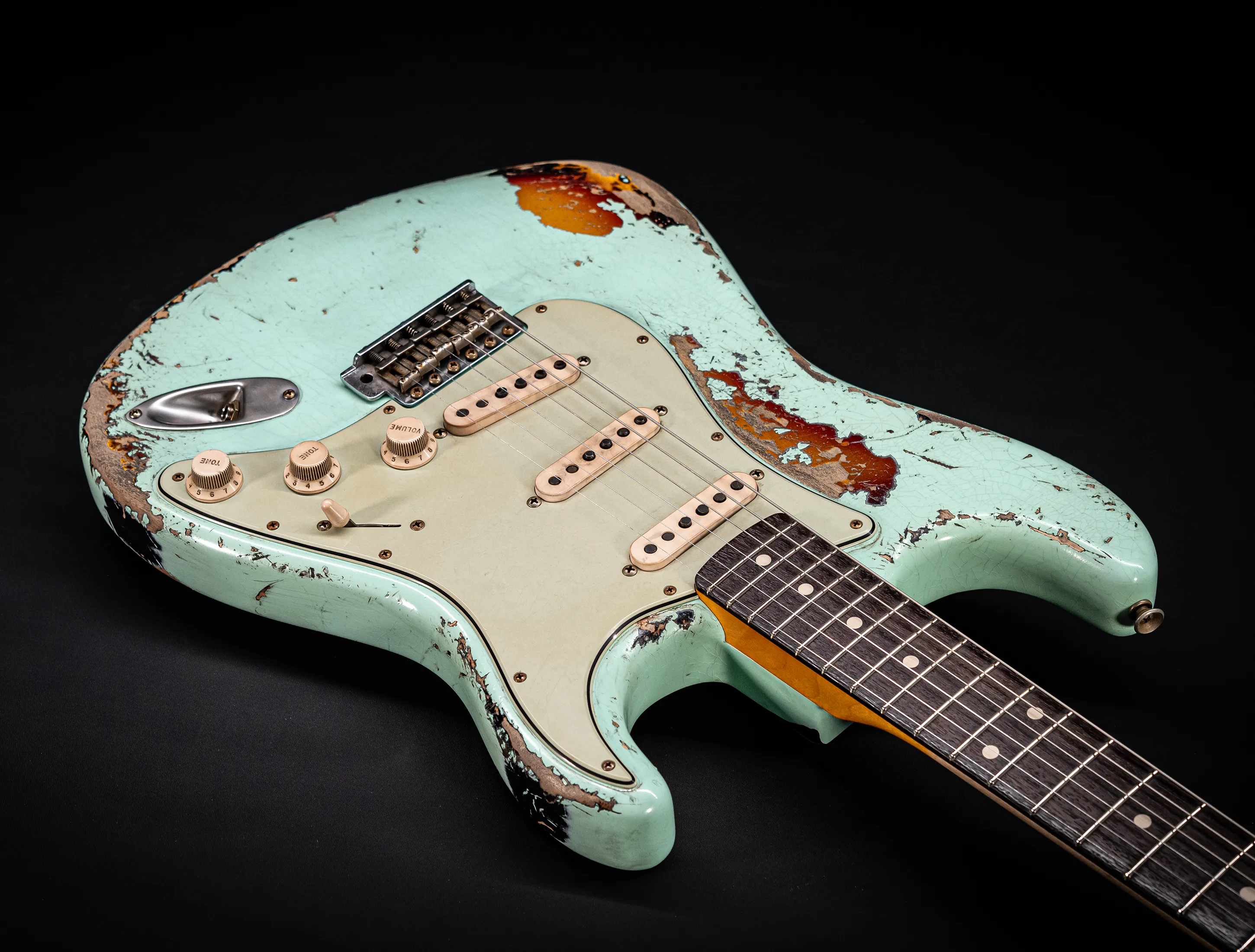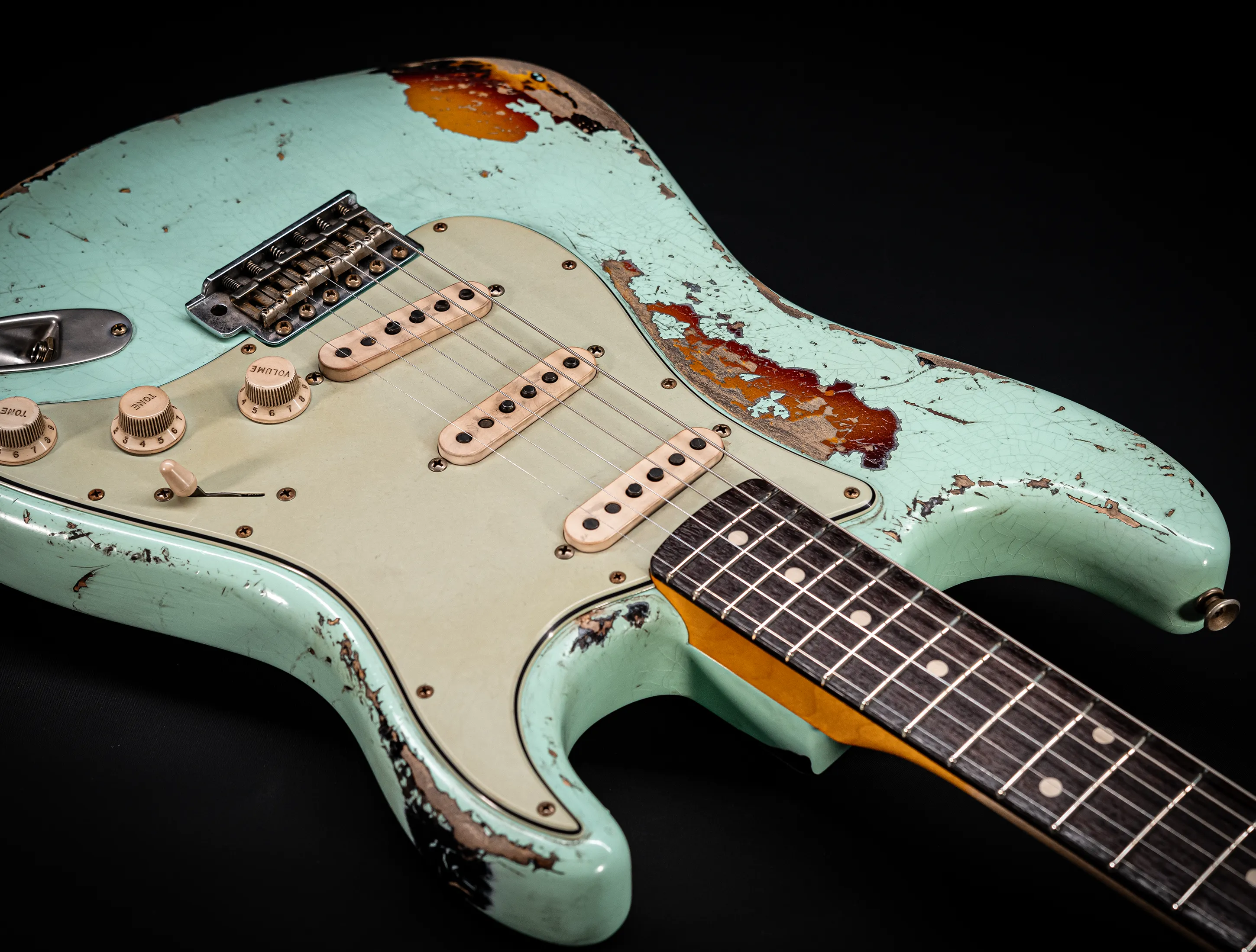 Fender Masterbuilt Austin MacNutt 1961 F-branded Ex Pin-Up Stratocaster Heavy Relic Surf Green over Sunburst