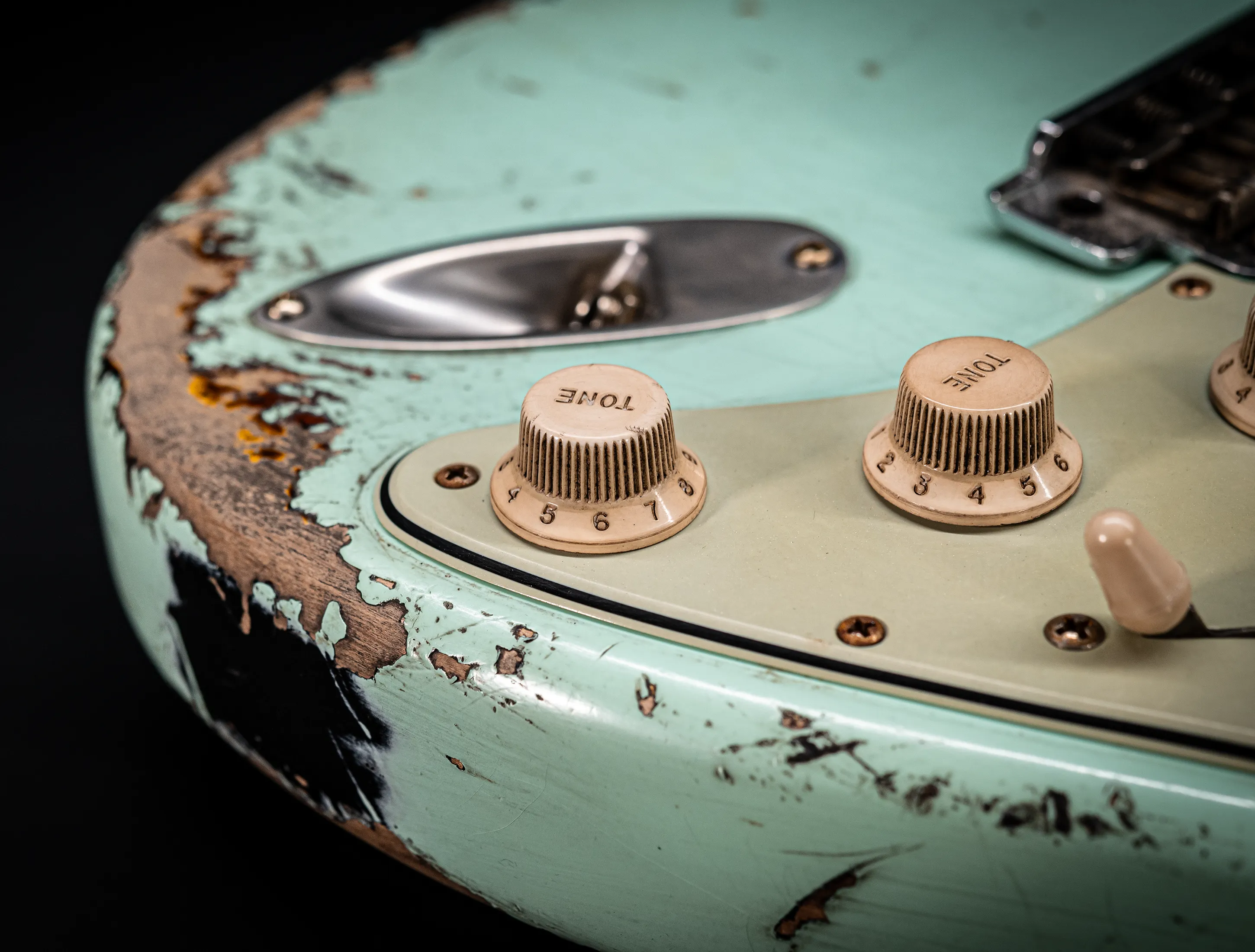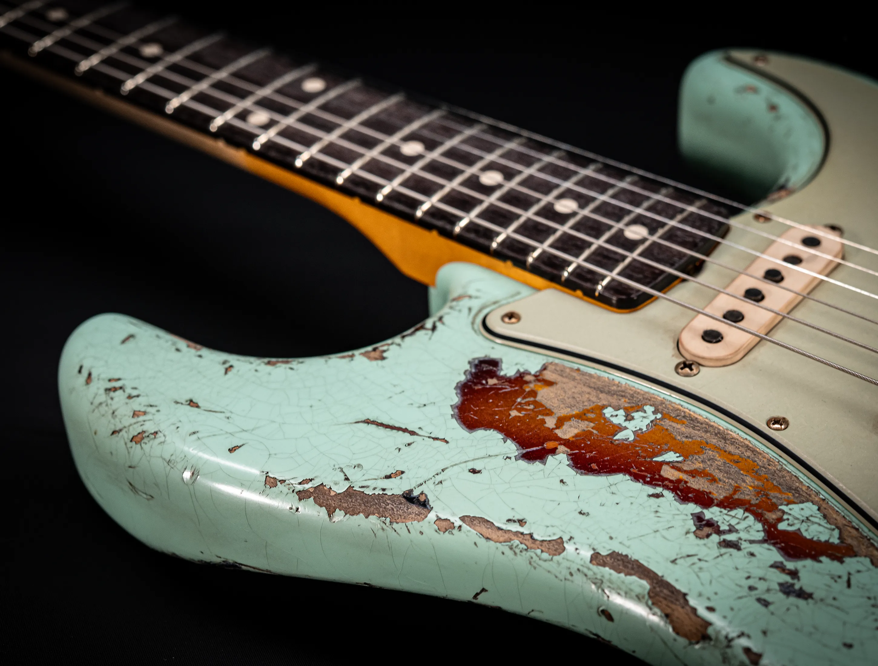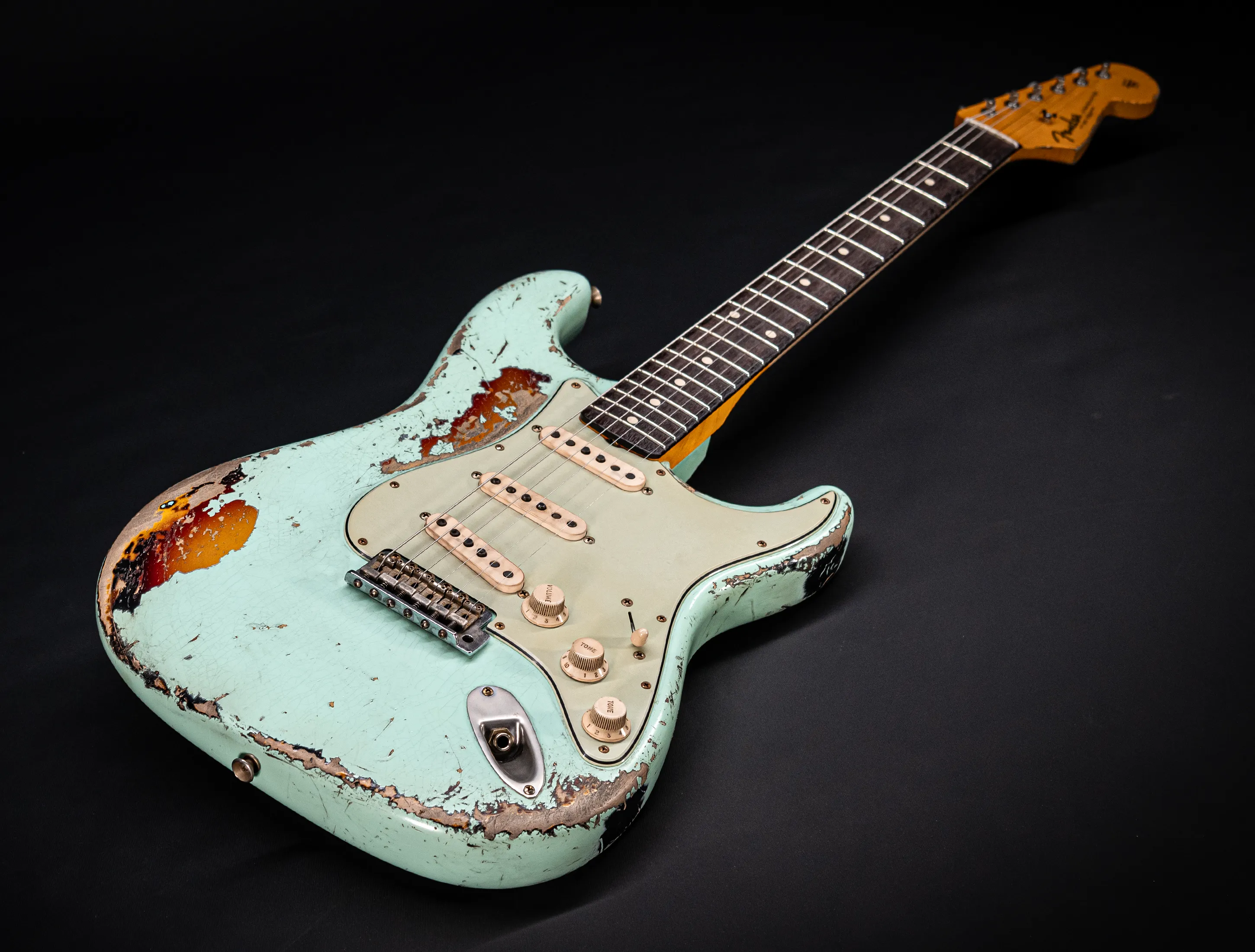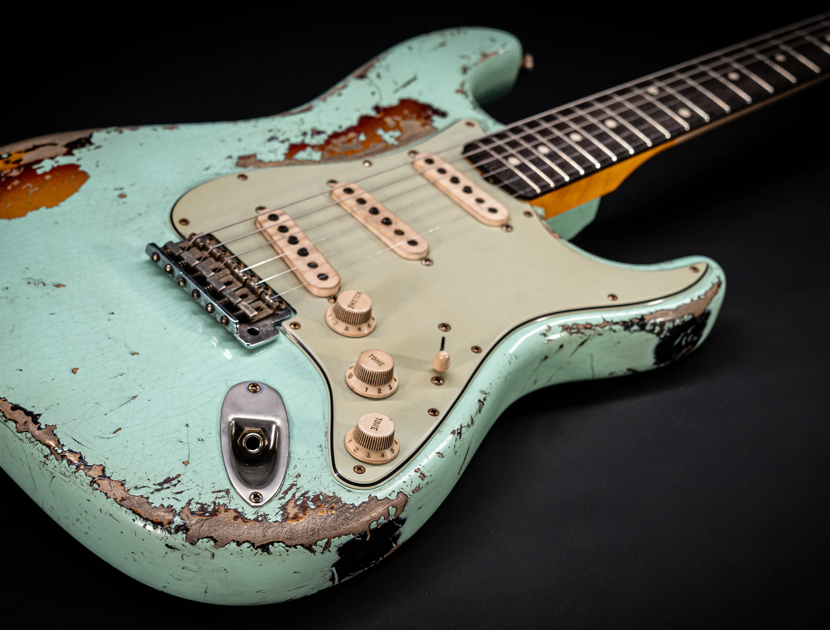 Fender Masterbuilt Austin MacNutt 1961 F-branded Ex Pin-Up Stratocaster Heavy Relic Surf Green over Sunburst