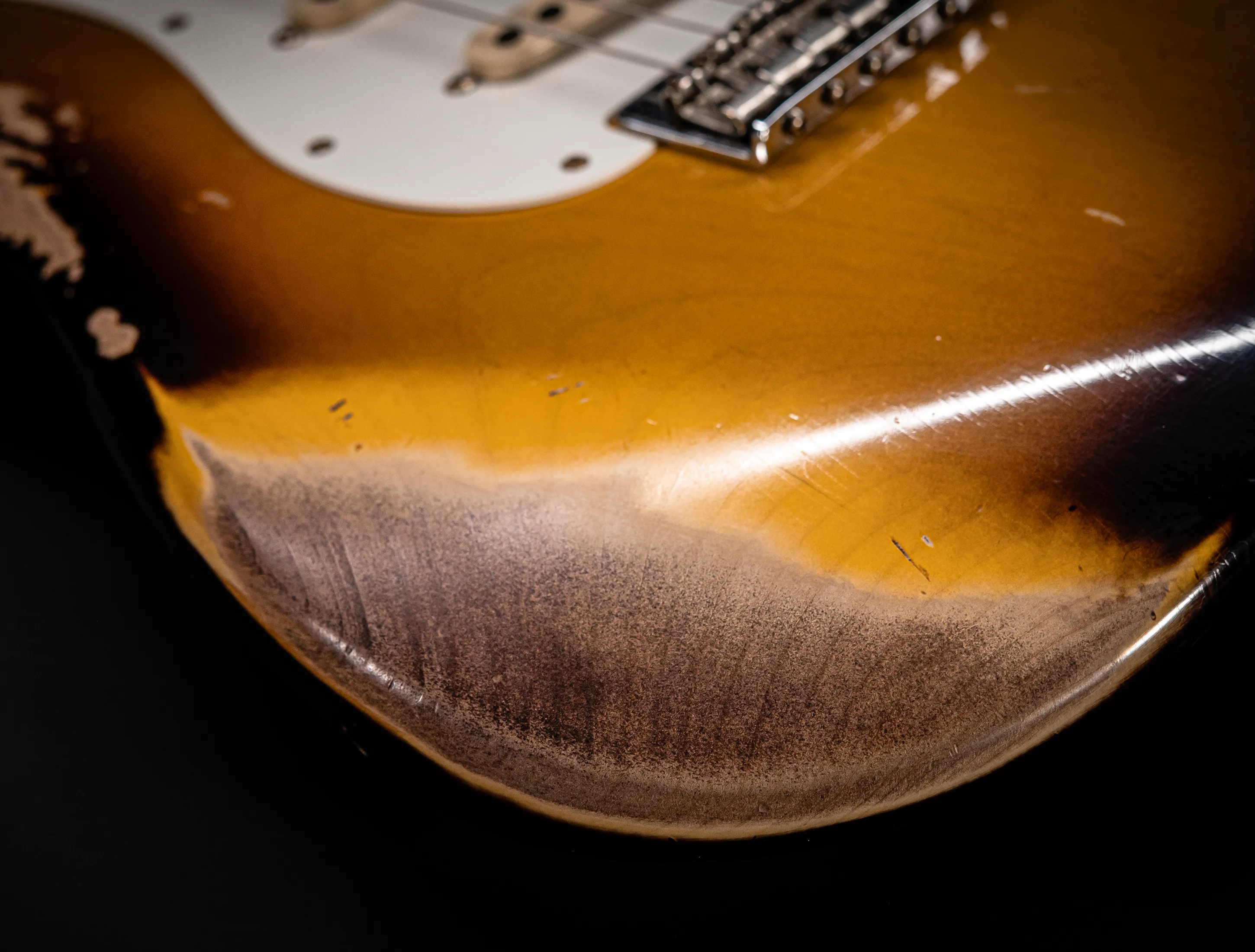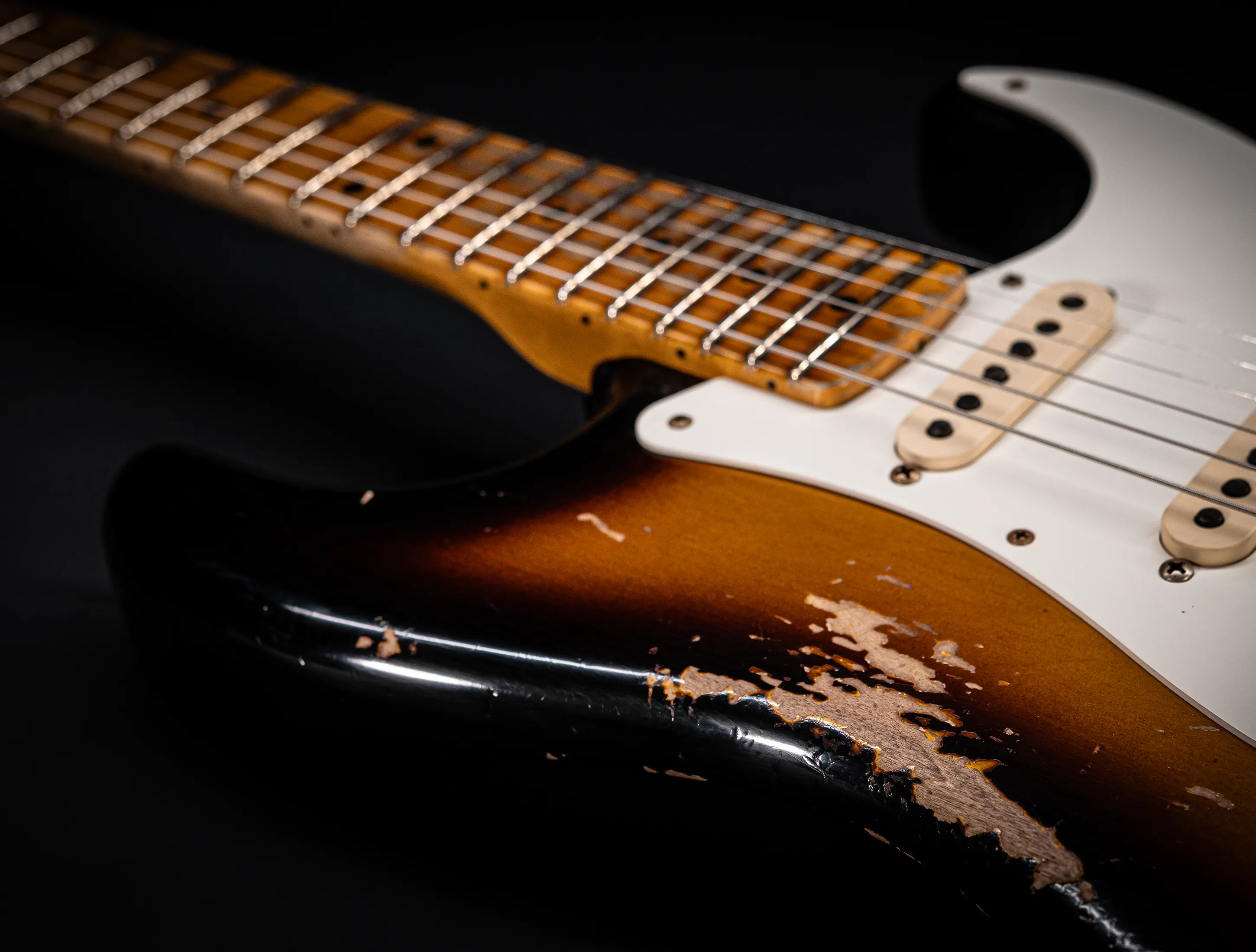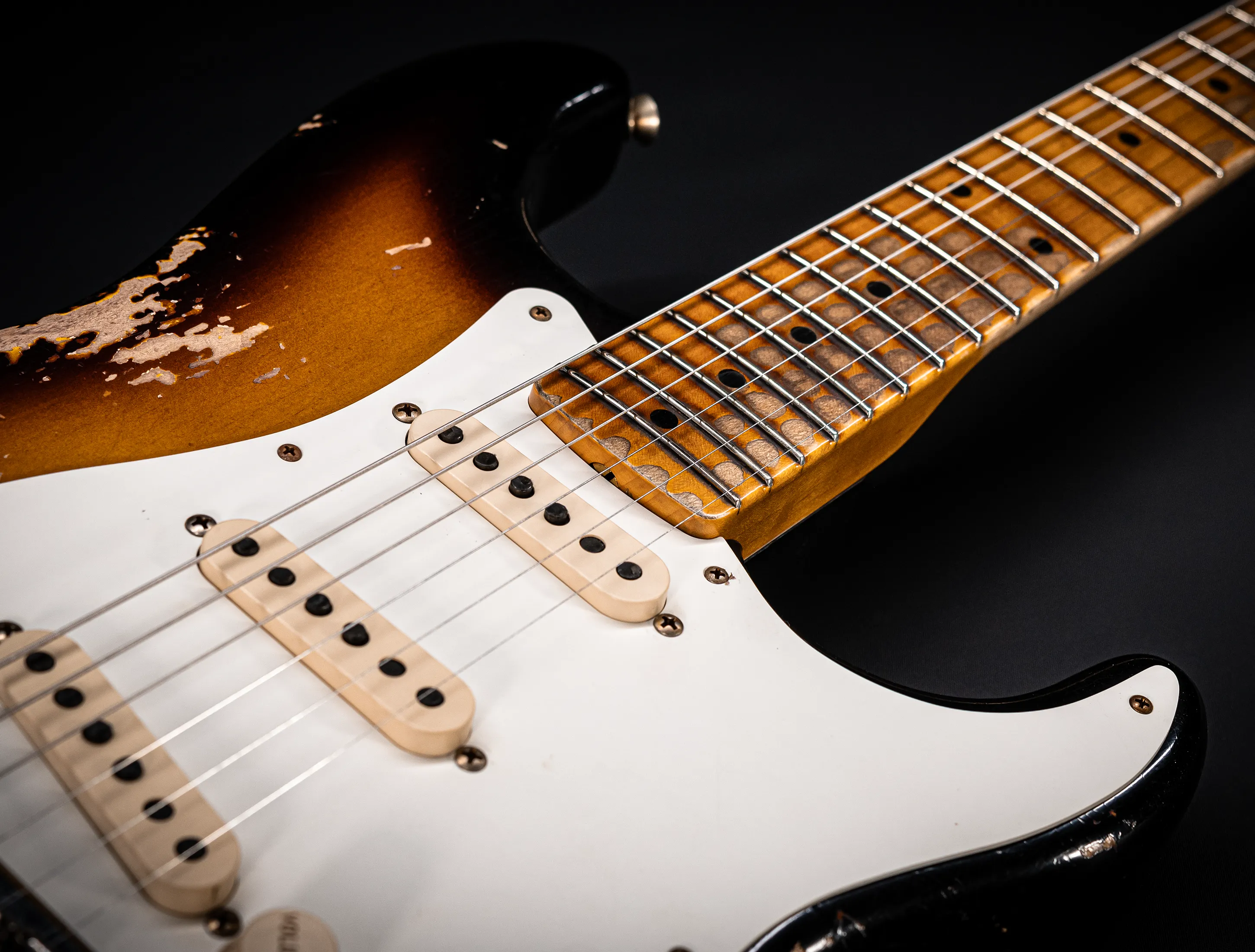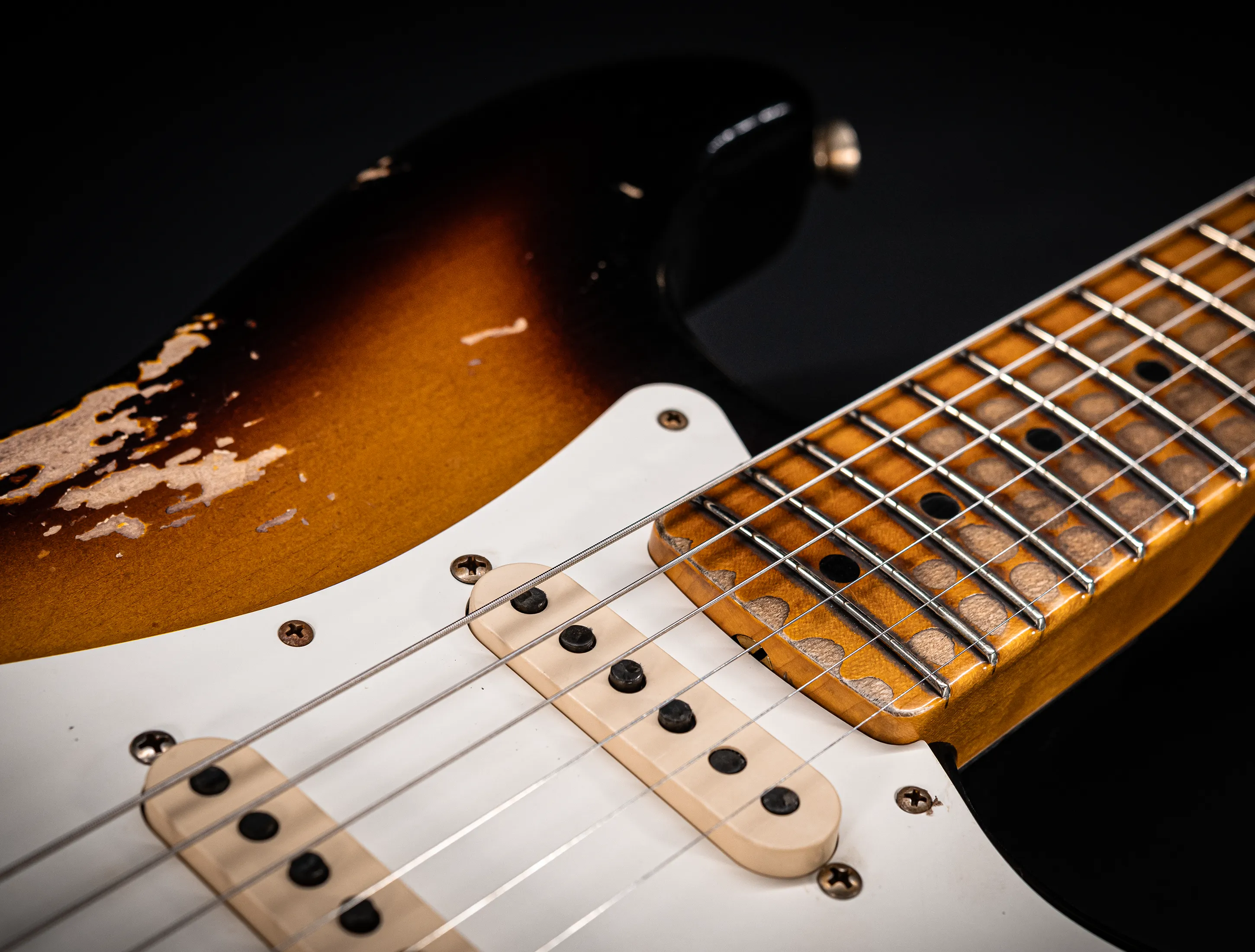- Stew Mac 155s Bünde, die ein Authentisches Vintage Spielgefühl mit moderner Ergonomie vereinen – sowie stark abgerollte Griffbrettkanten, die die Hand noch angenehmer über den Hals gleiten lassen.