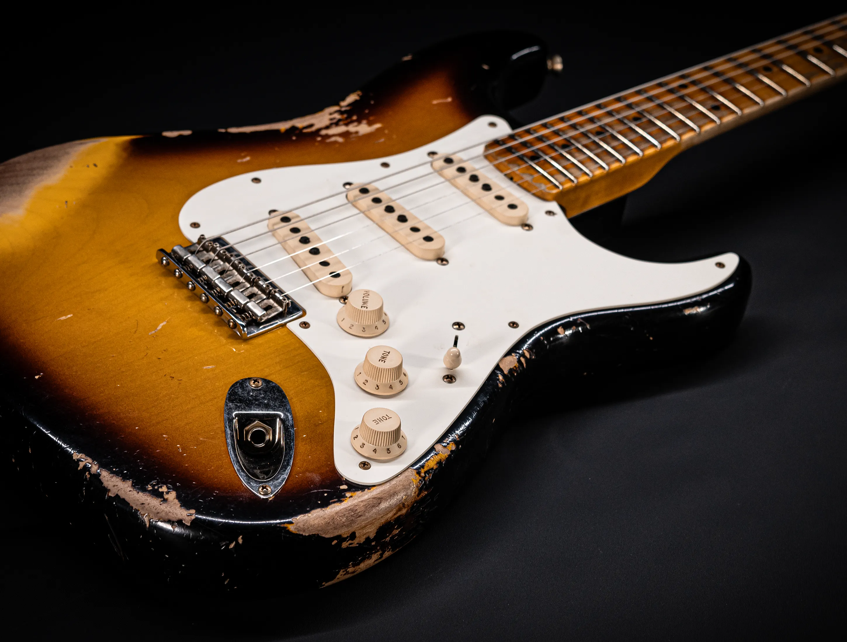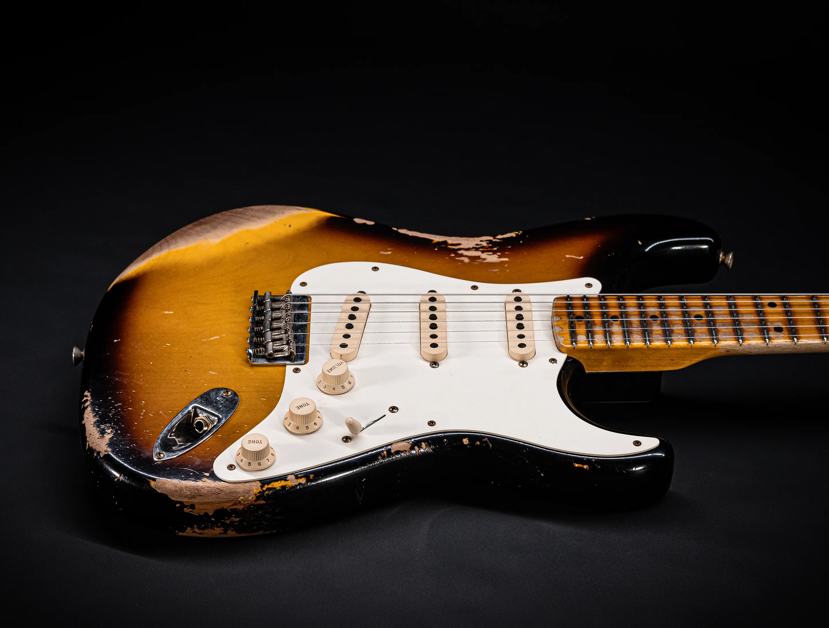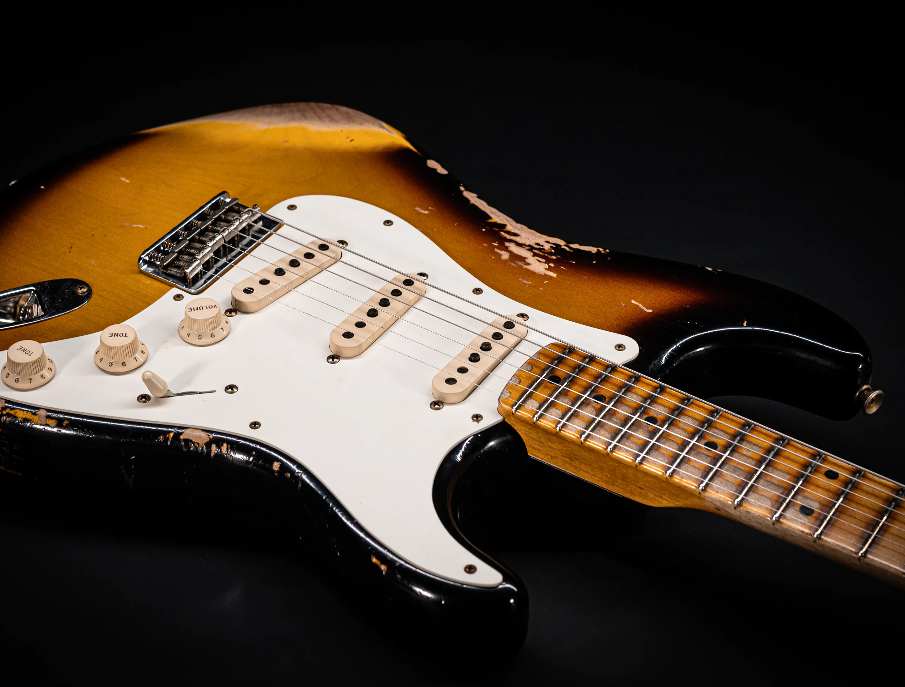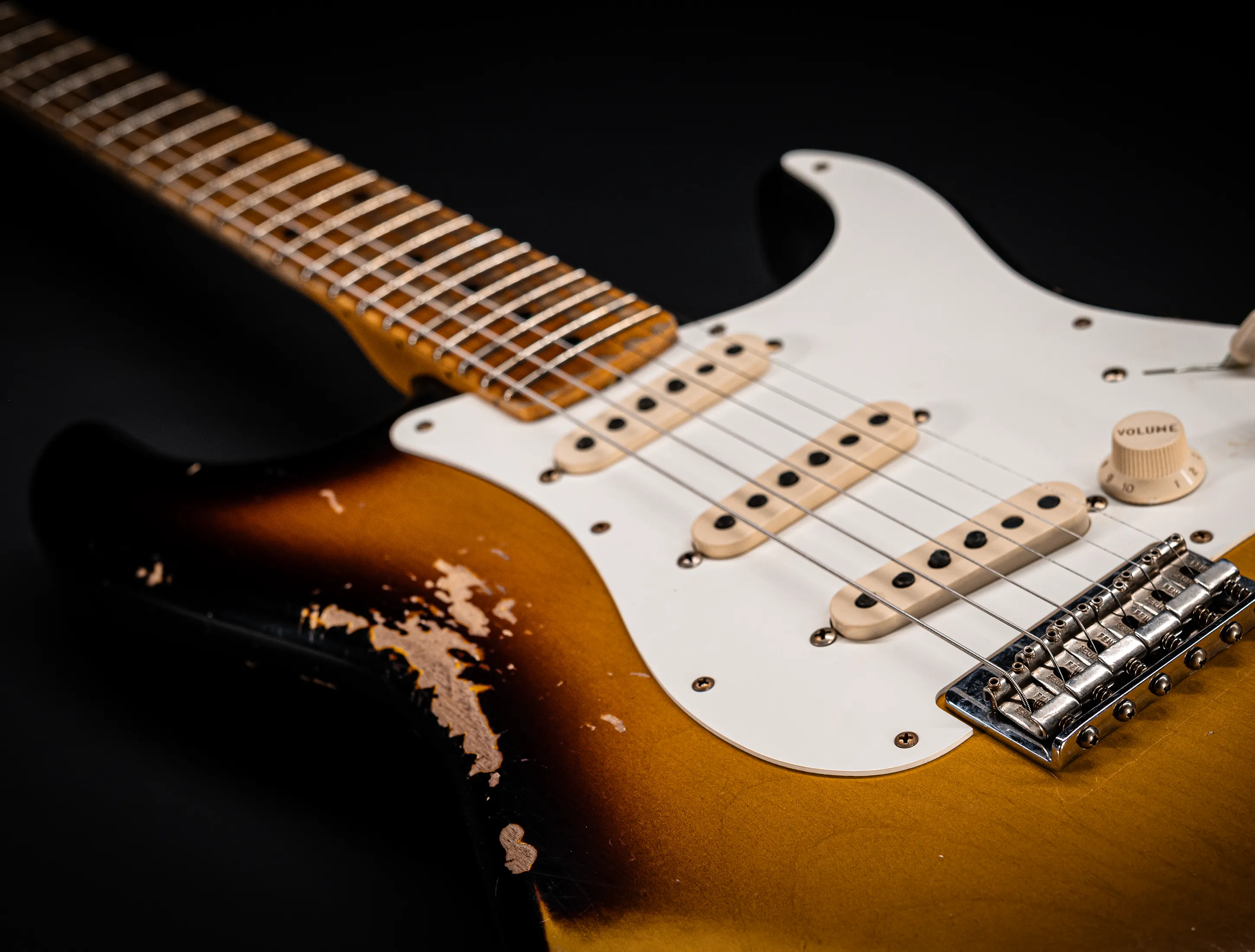 - Stew Mac 155s Bünde, die ein Authentisches Vintage Spielgefühl mit moderner Ergonomie vereinen – sowie stark abgerollte Griffbrettkanten, die die Hand noch angenehmer über den Hals gleiten lassen.