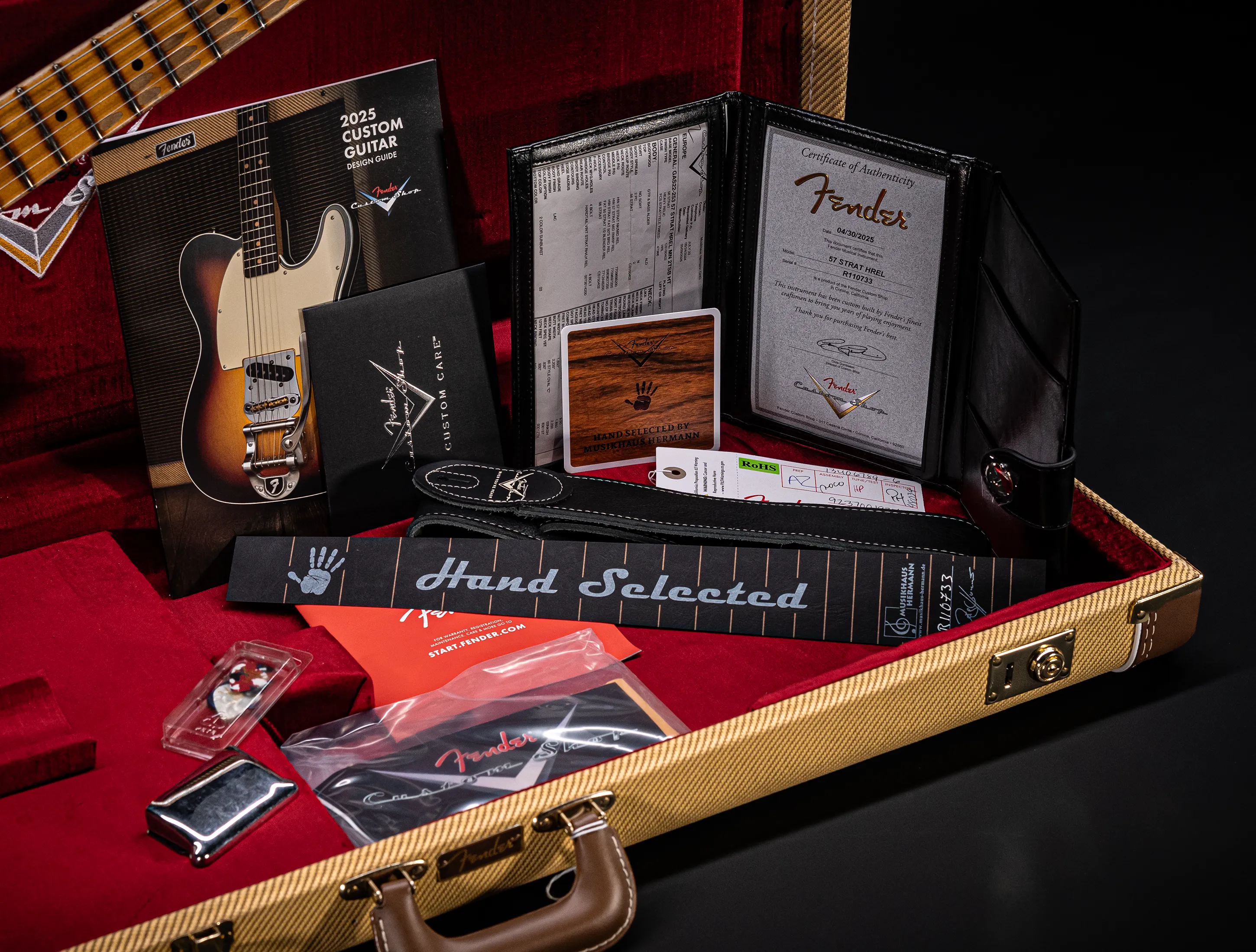 - Custom-Shop Zertifikat im gebundenem Booklet mit originalem Shop-Floor-Traveler