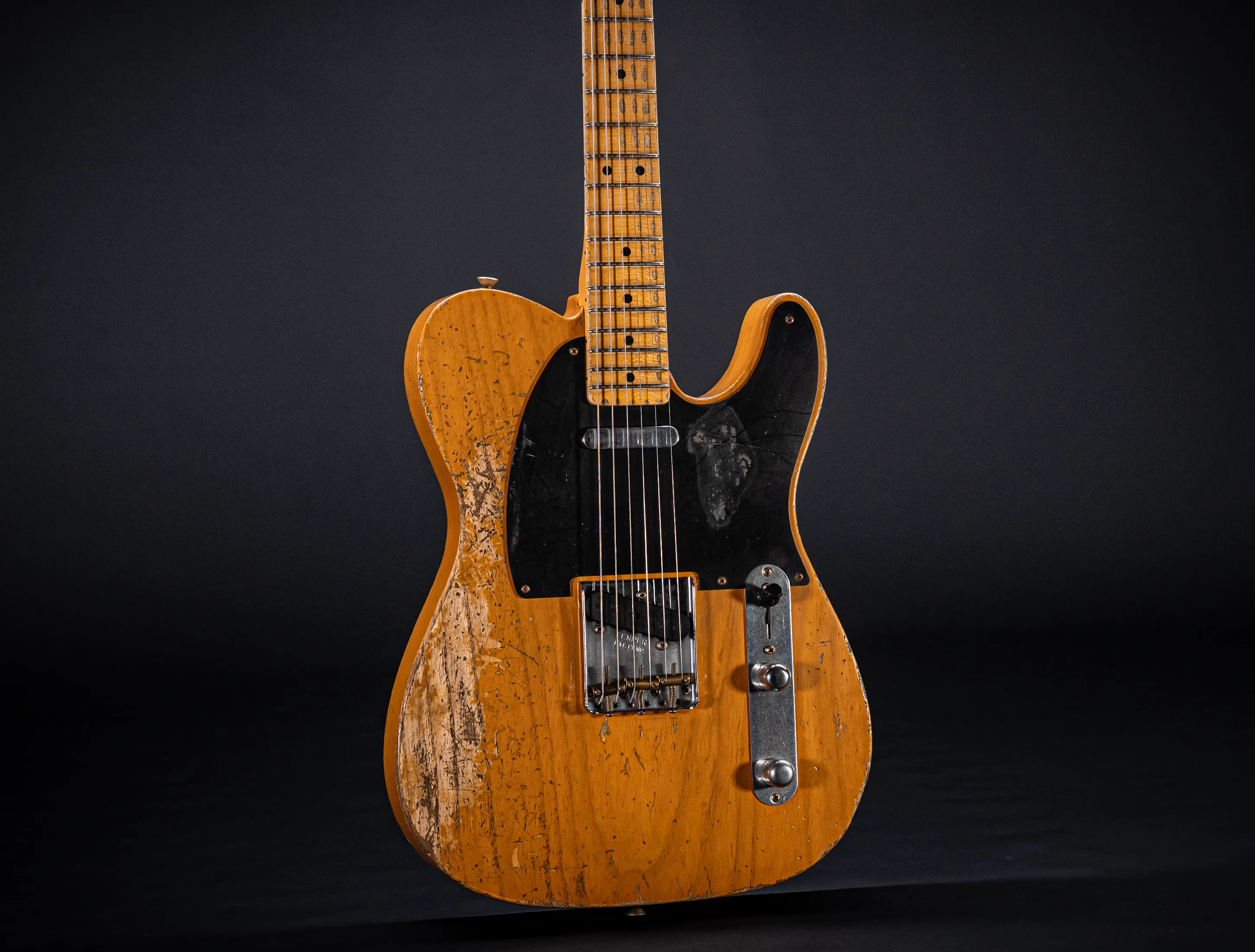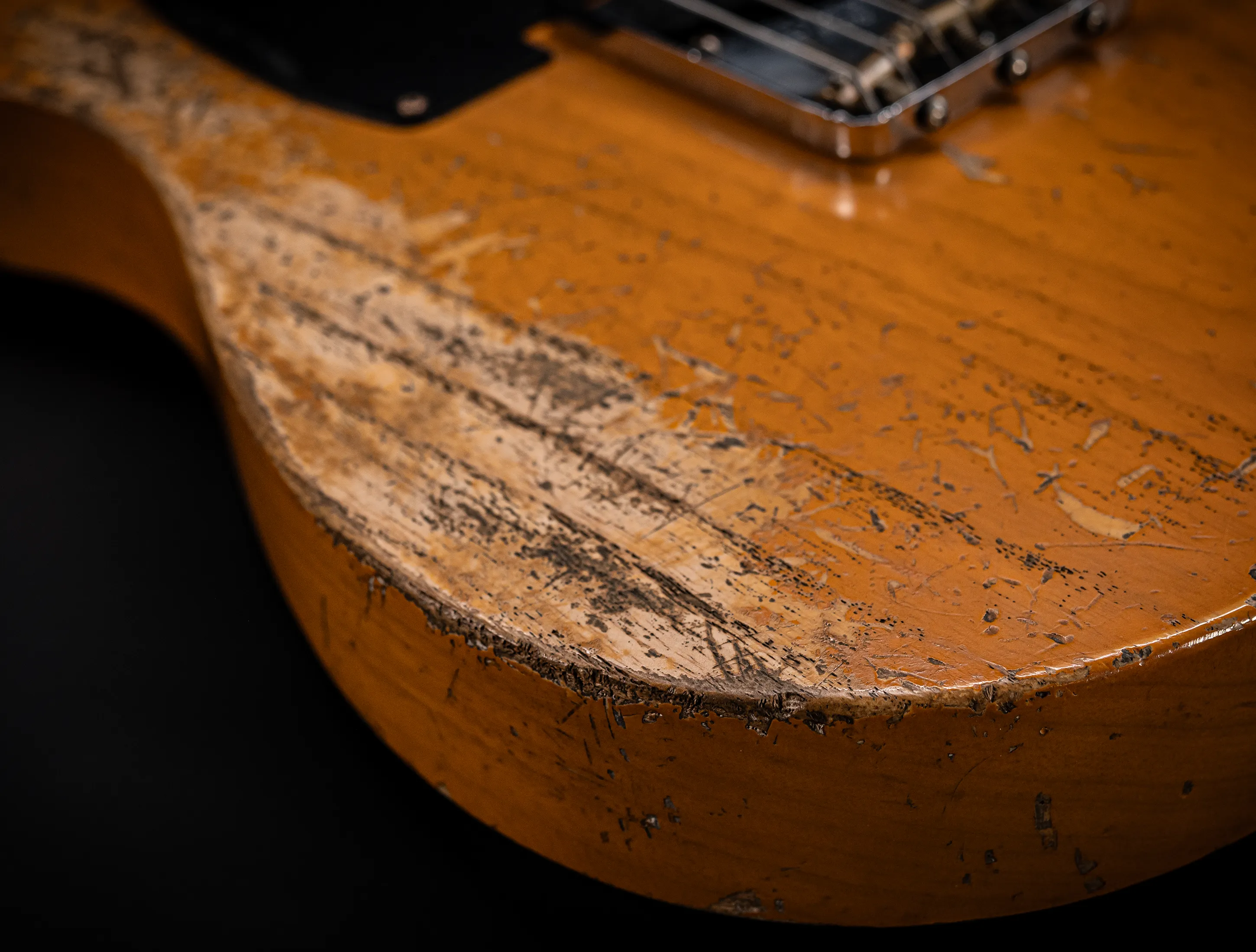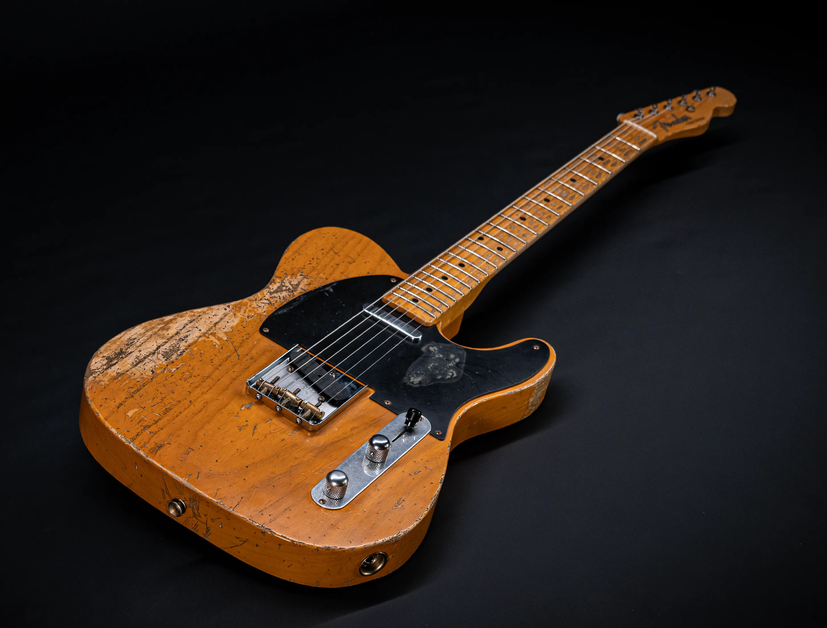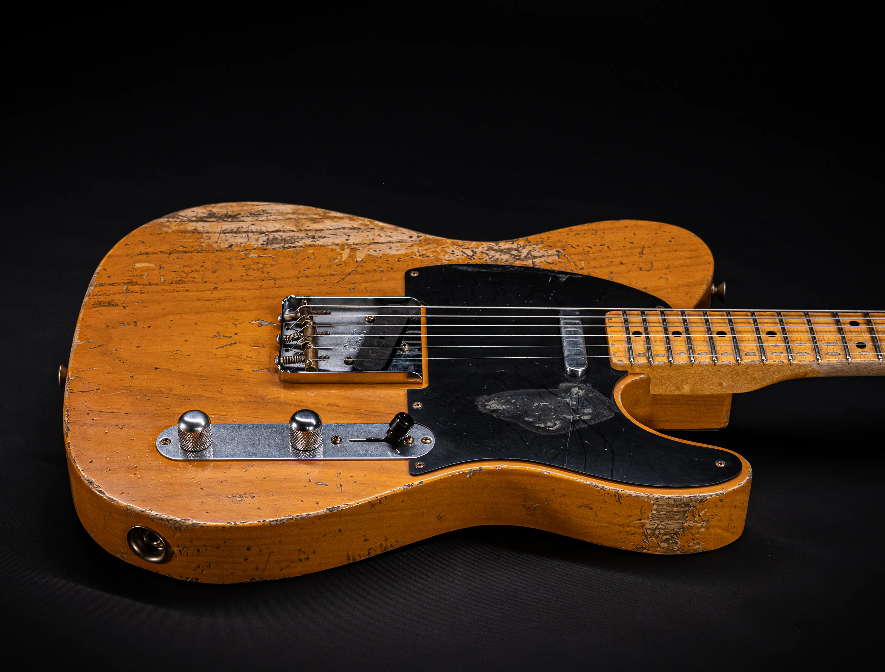 Schon der erste Blick verrät, wohin die Reise geht: pure, zeitlose Schönheit. Die hauchdünne Nitro-Lackierung wurde von Jason in einem kompromisslosen Super Heavy Relic Vintage Look umgesetzt – mit einer Authentizität, die sofort unter die Haut geht. Jede Spielspur, jede Abnutzung wirkt so echt, als hätte diese Telecaster bereits Jahrzehnte Musikgeschichte geschrieben. Das klassische Aged Butterscotch Blonde – untrennbar verbunden mit den legendären „Blackguard“-Teles – gehört zu den ikonischsten Finishes, die Fender je hervorgebracht hat. Und genau hier entfaltet es seine volle Magie: roh, ehrlich und absolut stilprägend.