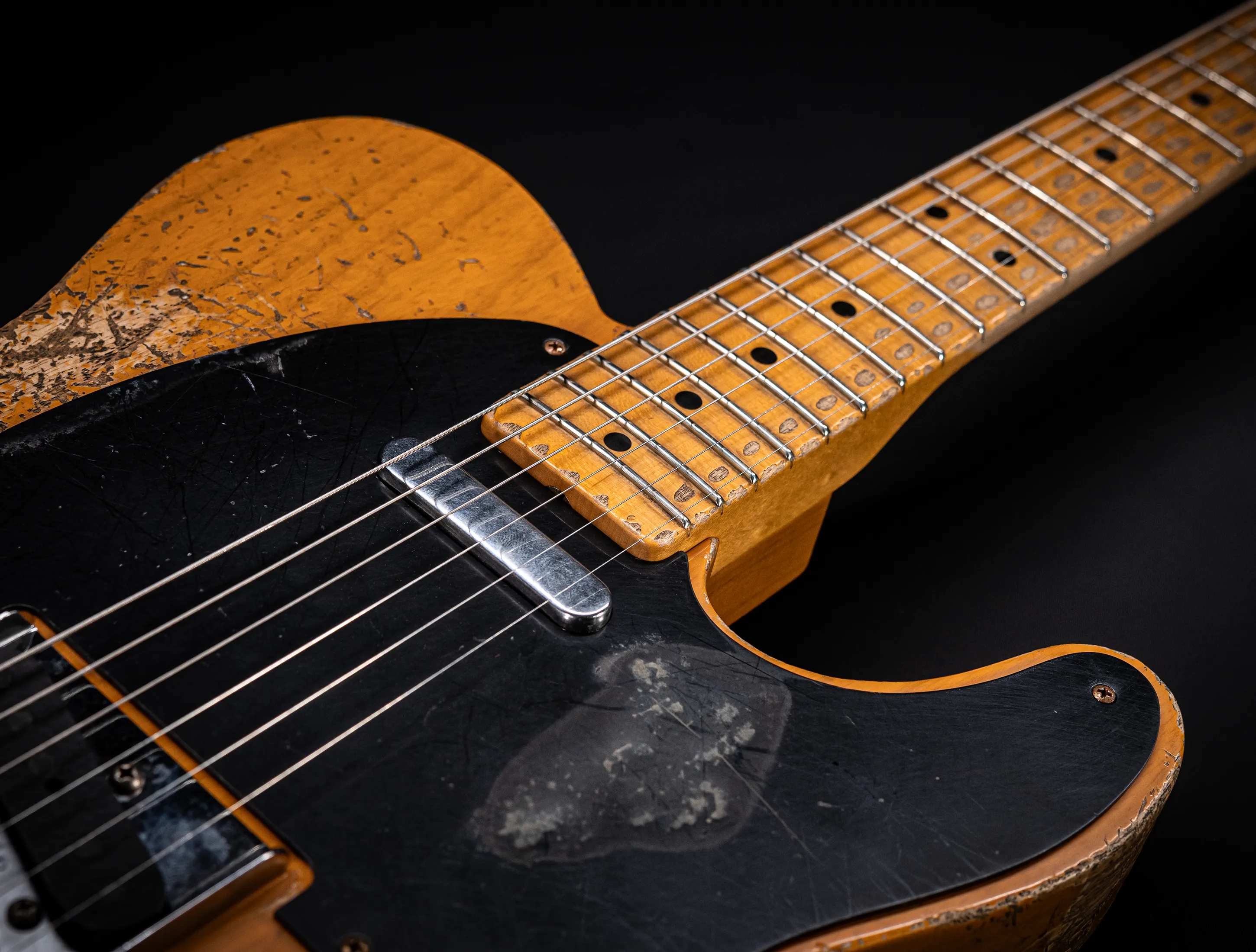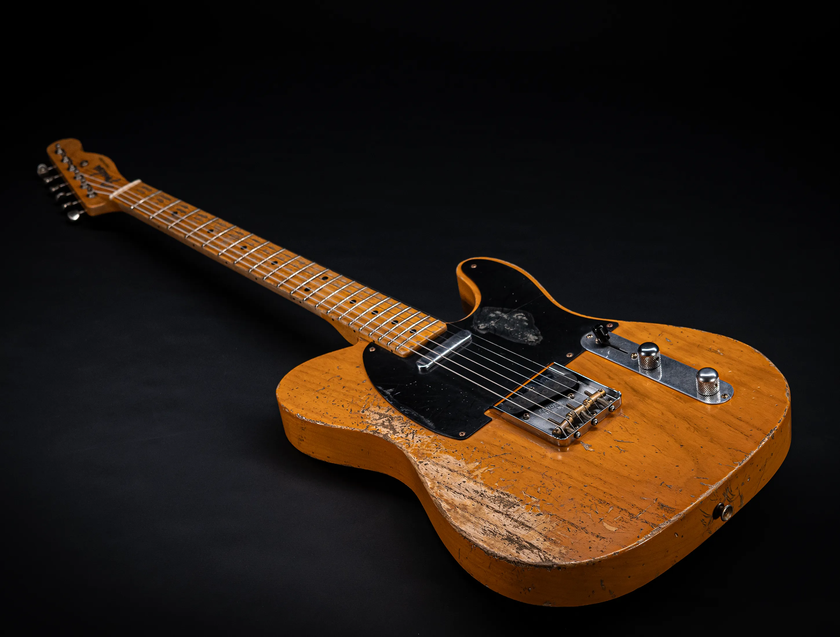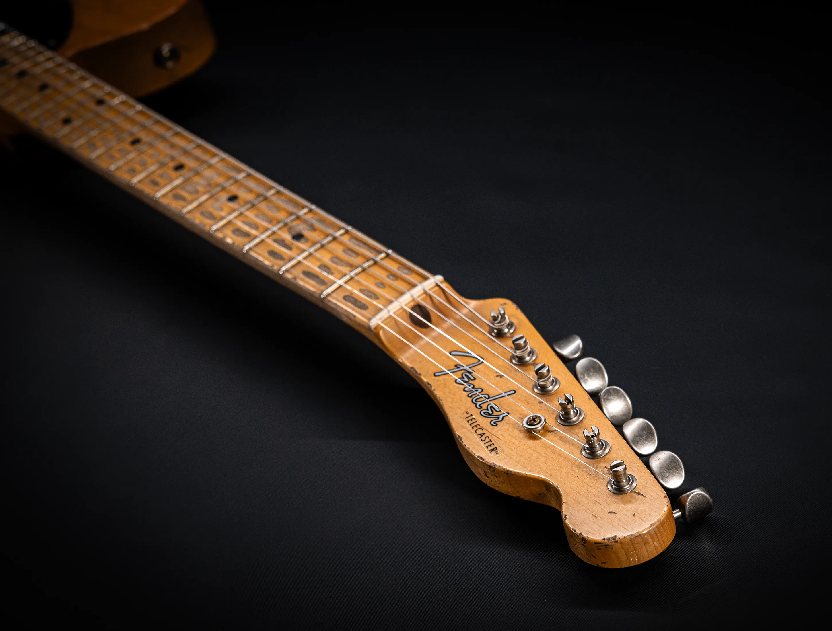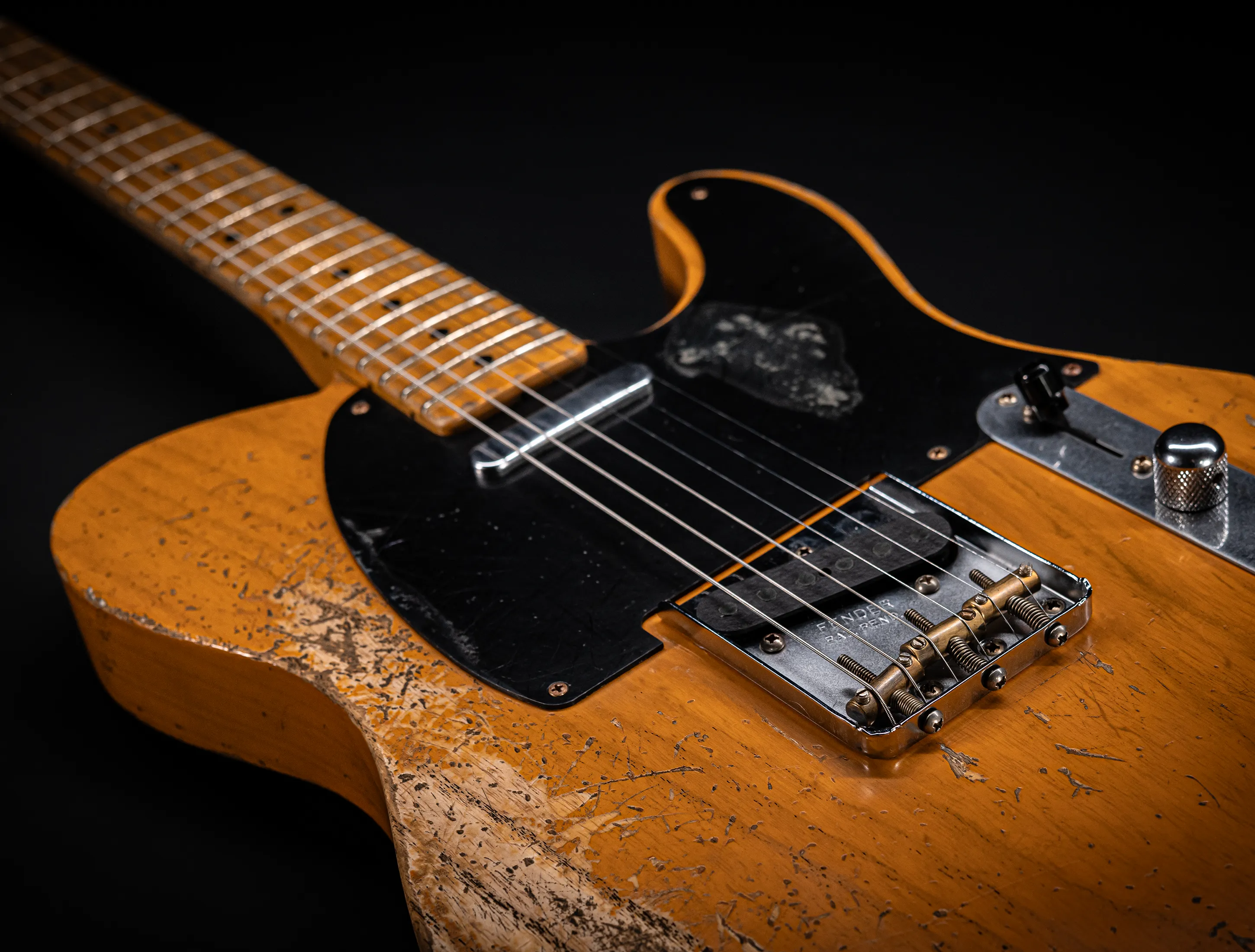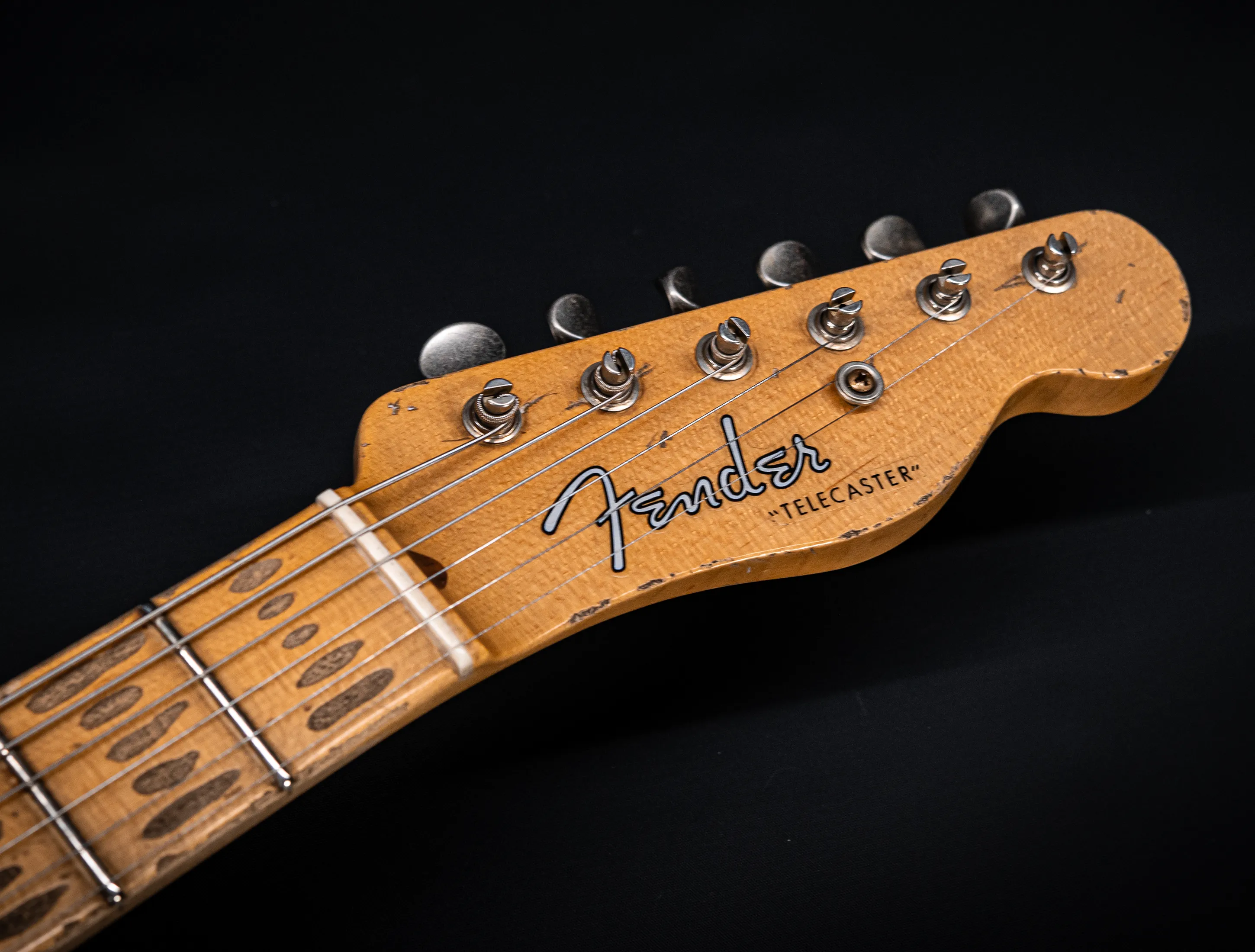 Schon der erste Blick verrät, wohin die Reise geht: pure, zeitlose Schönheit. Die hauchdünne Nitro-Lackierung wurde von Jason in einem kompromisslosen Super Heavy Relic Vintage Look umgesetzt – mit einer Authentizität, die sofort unter die Haut geht. Jede Spielspur, jede Abnutzung wirkt so echt, als hätte diese Telecaster bereits Jahrzehnte Musikgeschichte geschrieben. Das klassische Aged Butterscotch Blonde – untrennbar verbunden mit den legendären „Blackguard“-Teles – gehört zu den ikonischsten Finishes, die Fender je hervorgebracht hat. Und genau hier entfaltet es seine volle Magie: roh, ehrlich und absolut stilprägend.