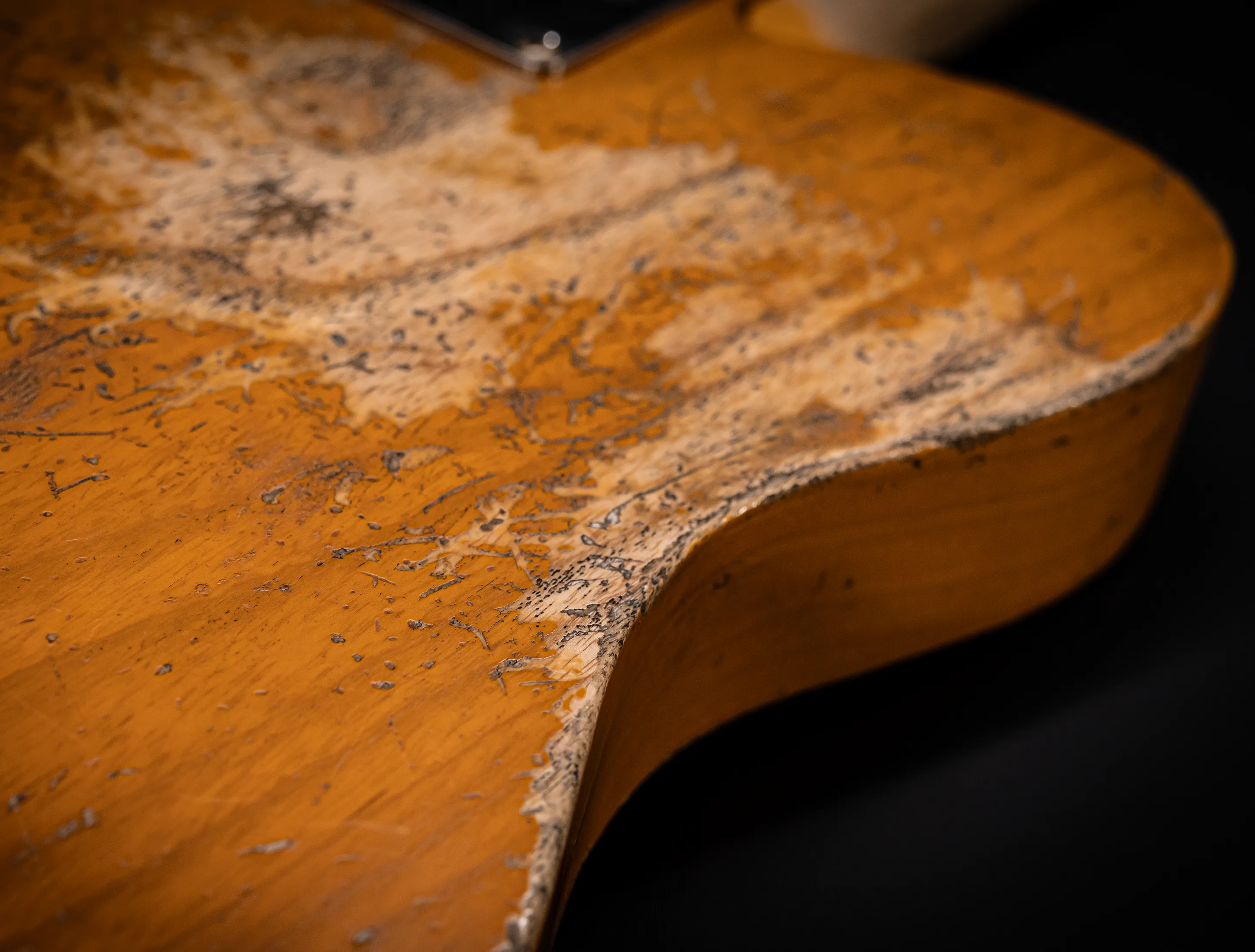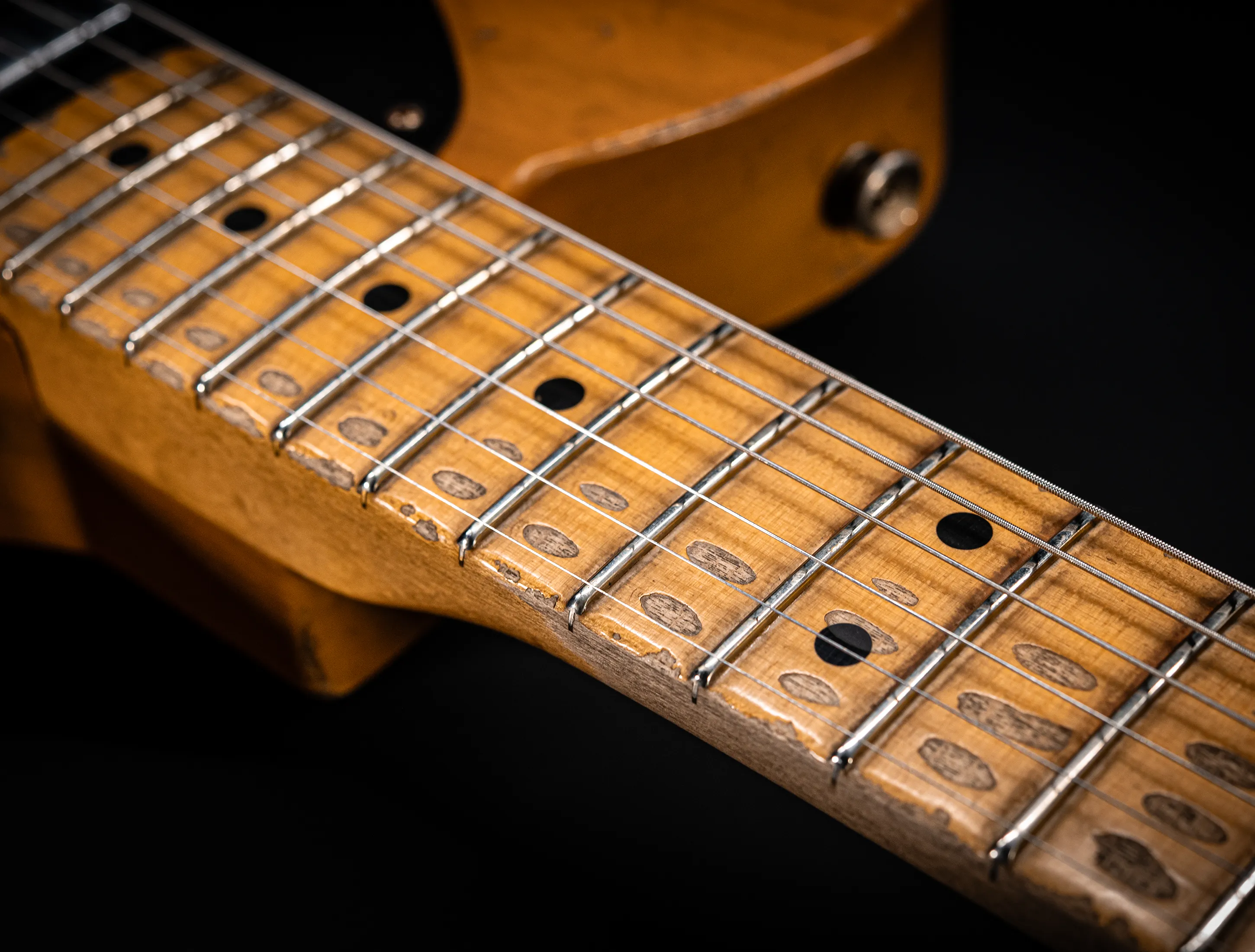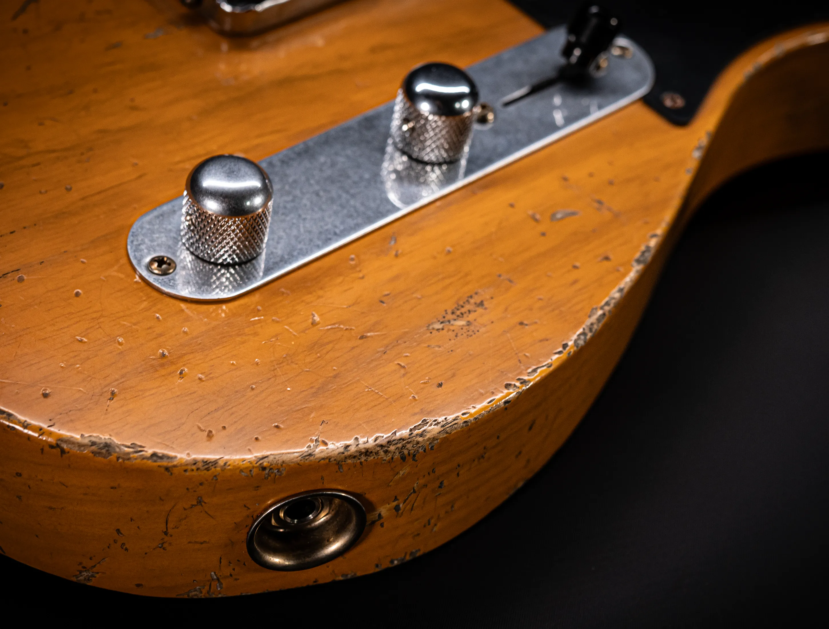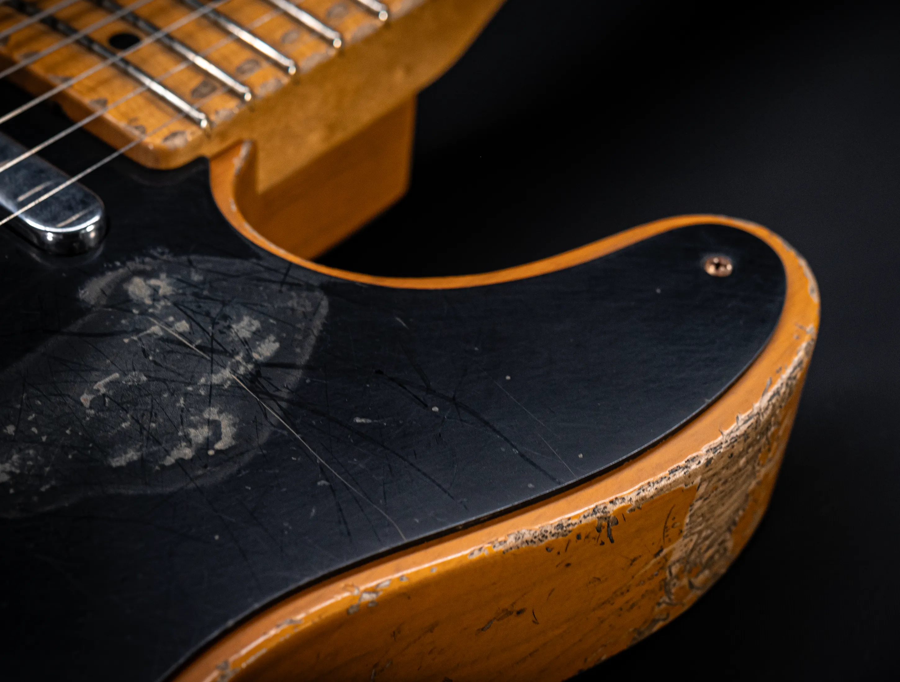 Schon der erste Blick verrät, wohin die Reise geht: pure, zeitlose Schönheit. Die hauchdünne Nitro-Lackierung wurde von Jason in einem kompromisslosen Super Heavy Relic Vintage Look umgesetzt – mit einer Authentizität, die sofort unter die Haut geht. Jede Spielspur, jede Abnutzung wirkt so echt, als hätte diese Telecaster bereits Jahrzehnte Musikgeschichte geschrieben. Das klassische Aged Butterscotch Blonde – untrennbar verbunden mit den legendären „Blackguard“-Teles – gehört zu den ikonischsten Finishes, die Fender je hervorgebracht hat. Und genau hier entfaltet es seine volle Magie: roh, ehrlich und absolut stilprägend.