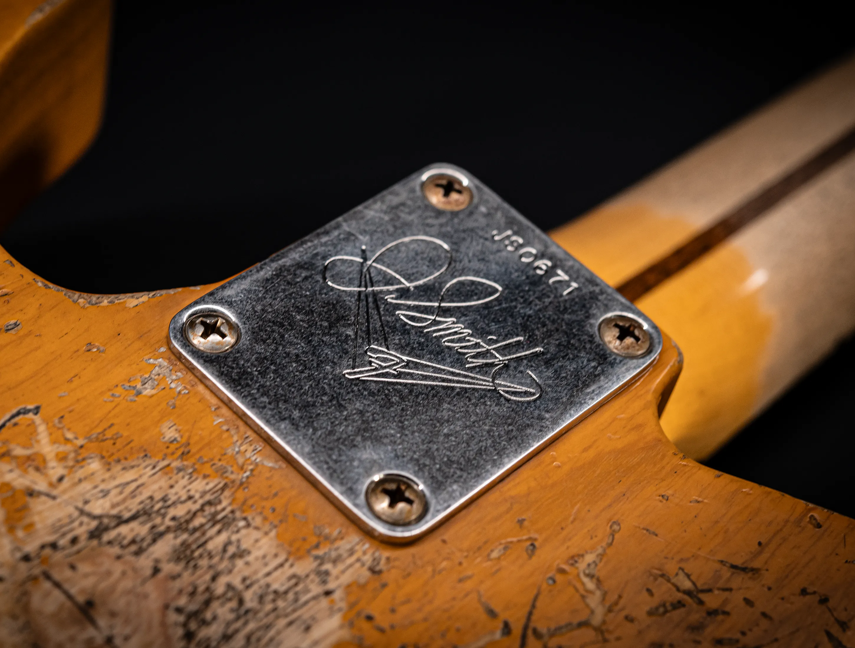 - Neck Plate: Fender V-Logo mit JS Signature