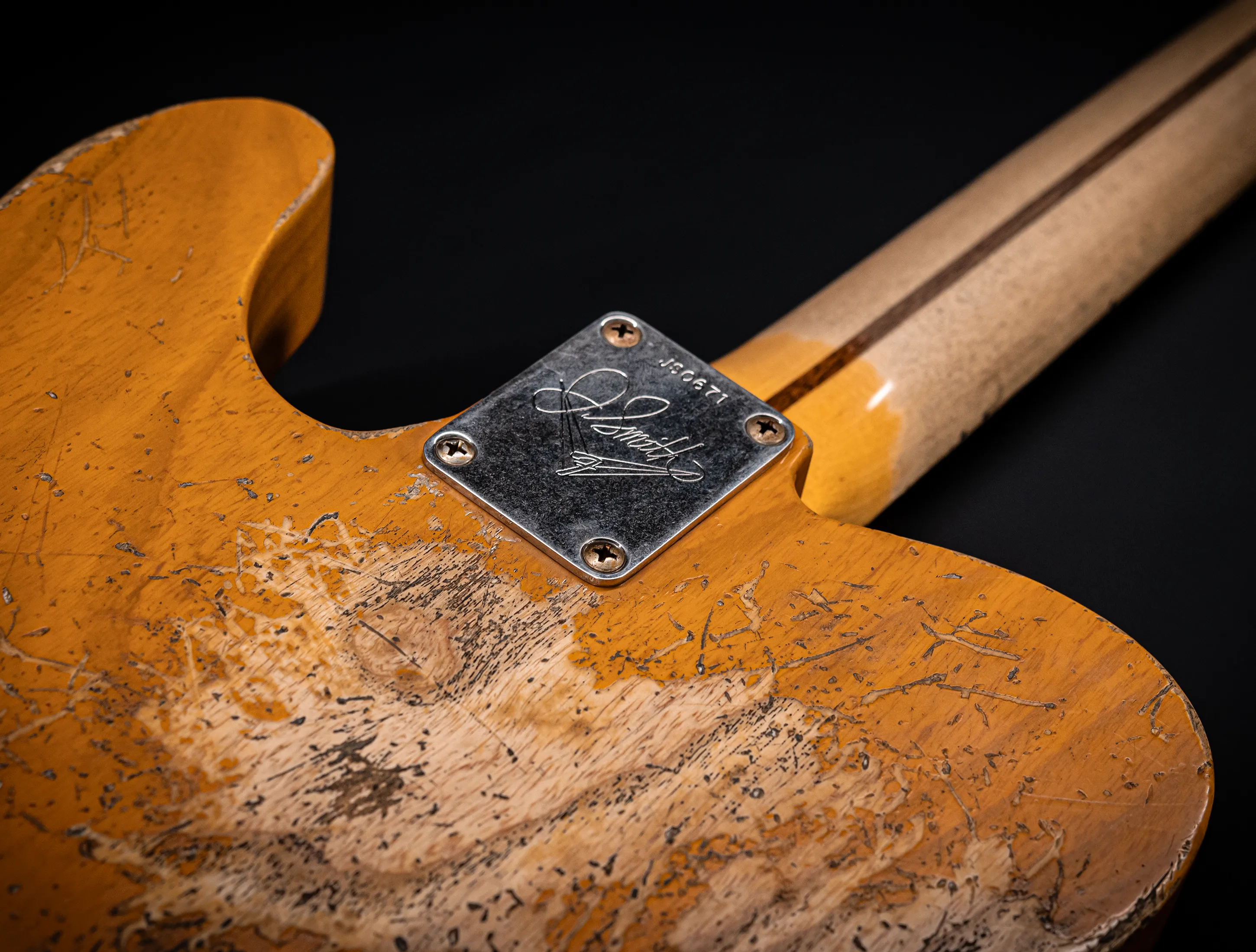 Das Besondere an diesem Instrument ist jedoch die Idee dahinter: Gemeinsam haben Jörg Hermann und Jason Smith eine Vision verfolgt – eine Telecaster zu erschaffen, die äußerlich das ultimative Vintage-Statement setzt, während sie im Inneren keine Kompromisse eingeht. Der Look: absolut legendär, fast schon archetypisch. Die „Inneren Werte“: auf modernstem Custom Shop Niveau, mit fein abgestimmten Komponenten und maximaler Performance.