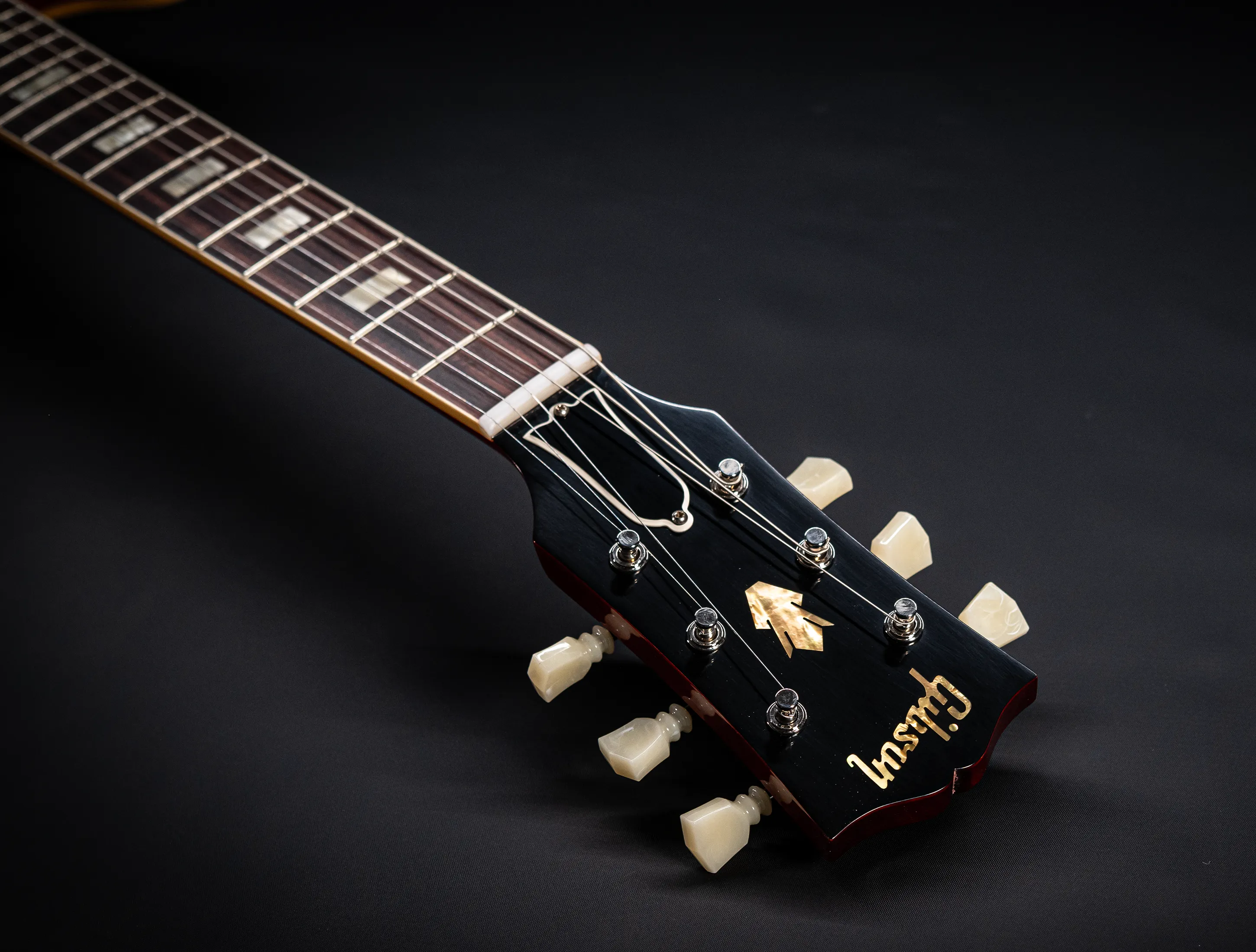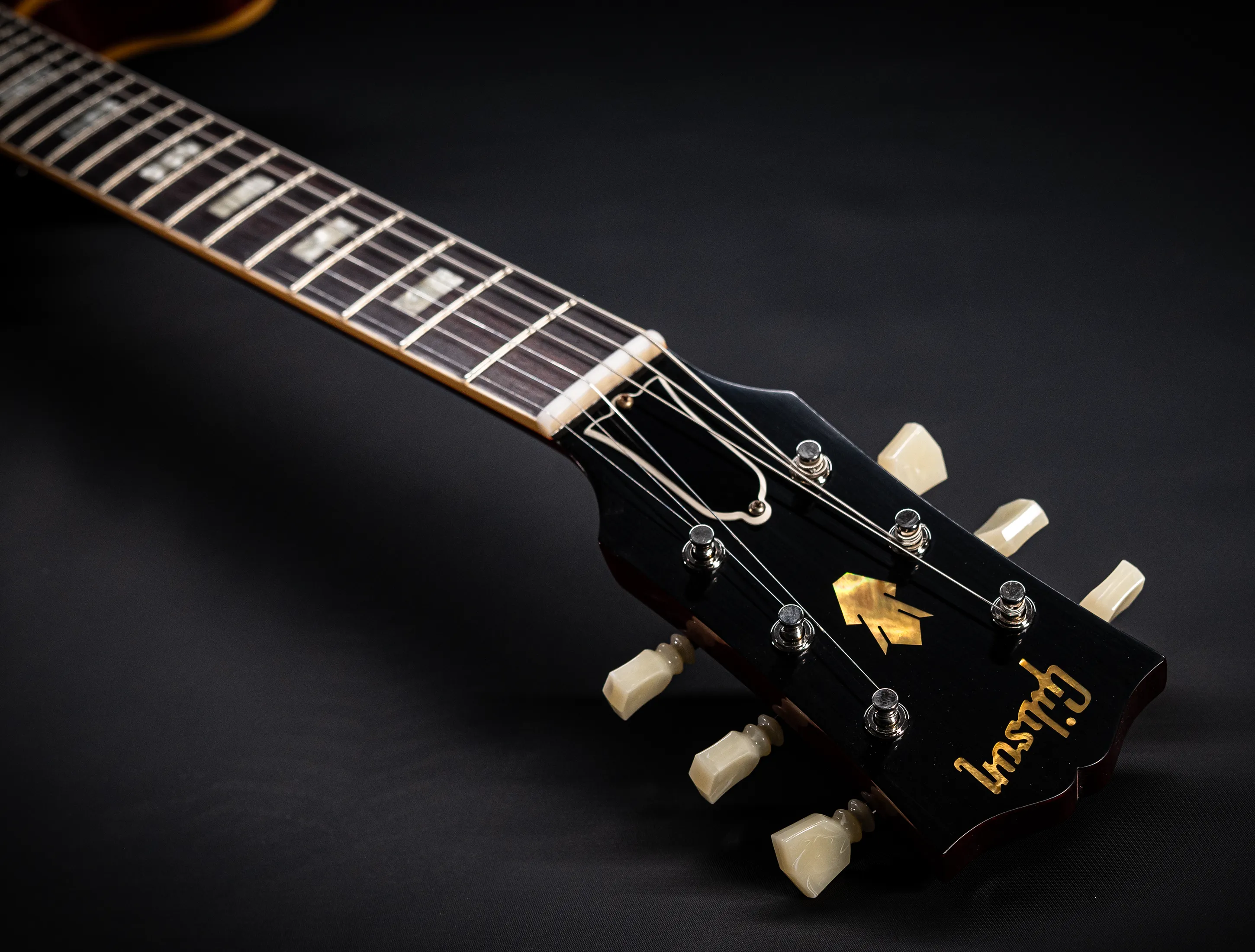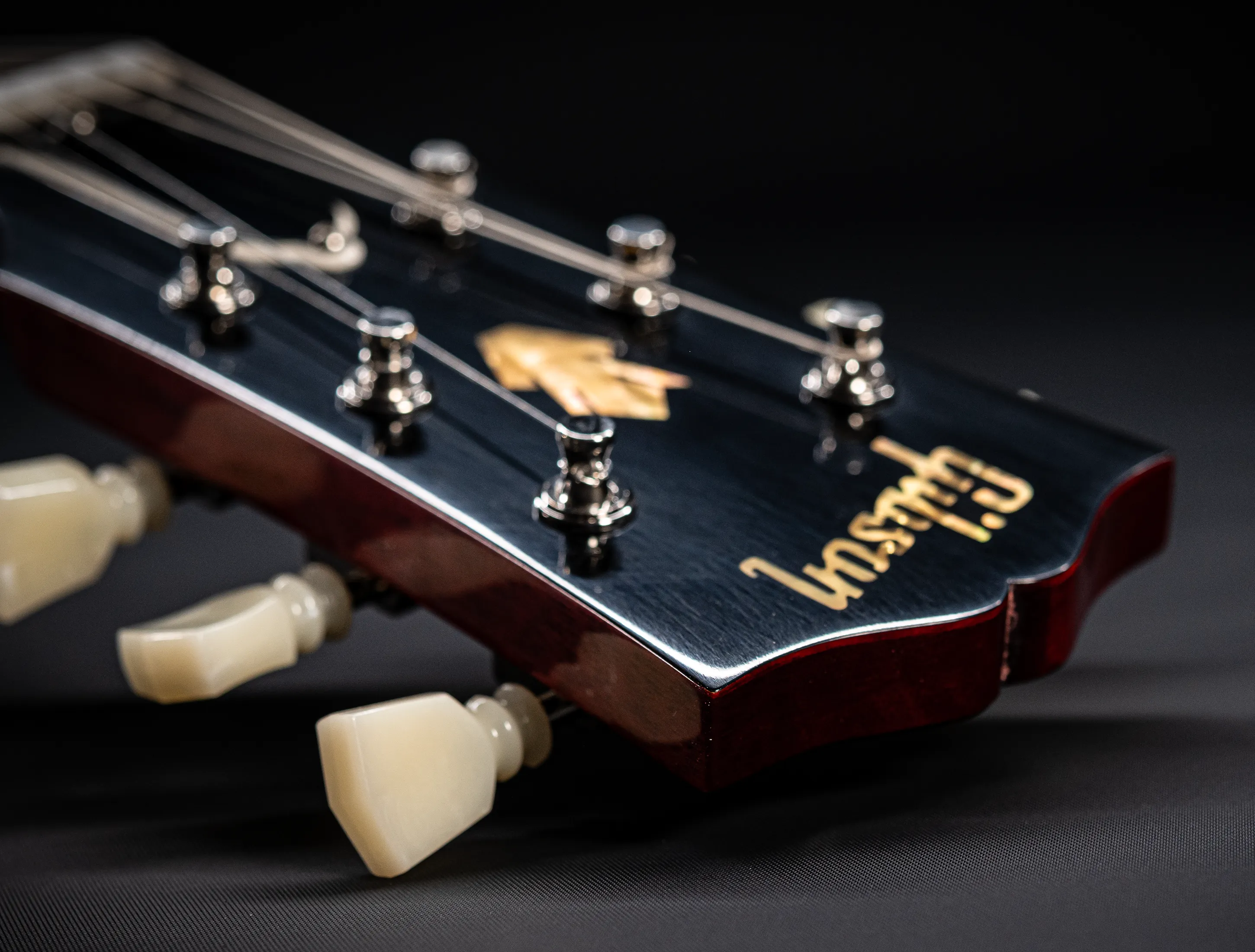 - Die Hals-Korpusverbindung wurde mit Hide-Glue (Heissleim - Knochenleim) verleimt. Historisch korrekt und die beste Verbindung für einen echten Gibson-Sound.