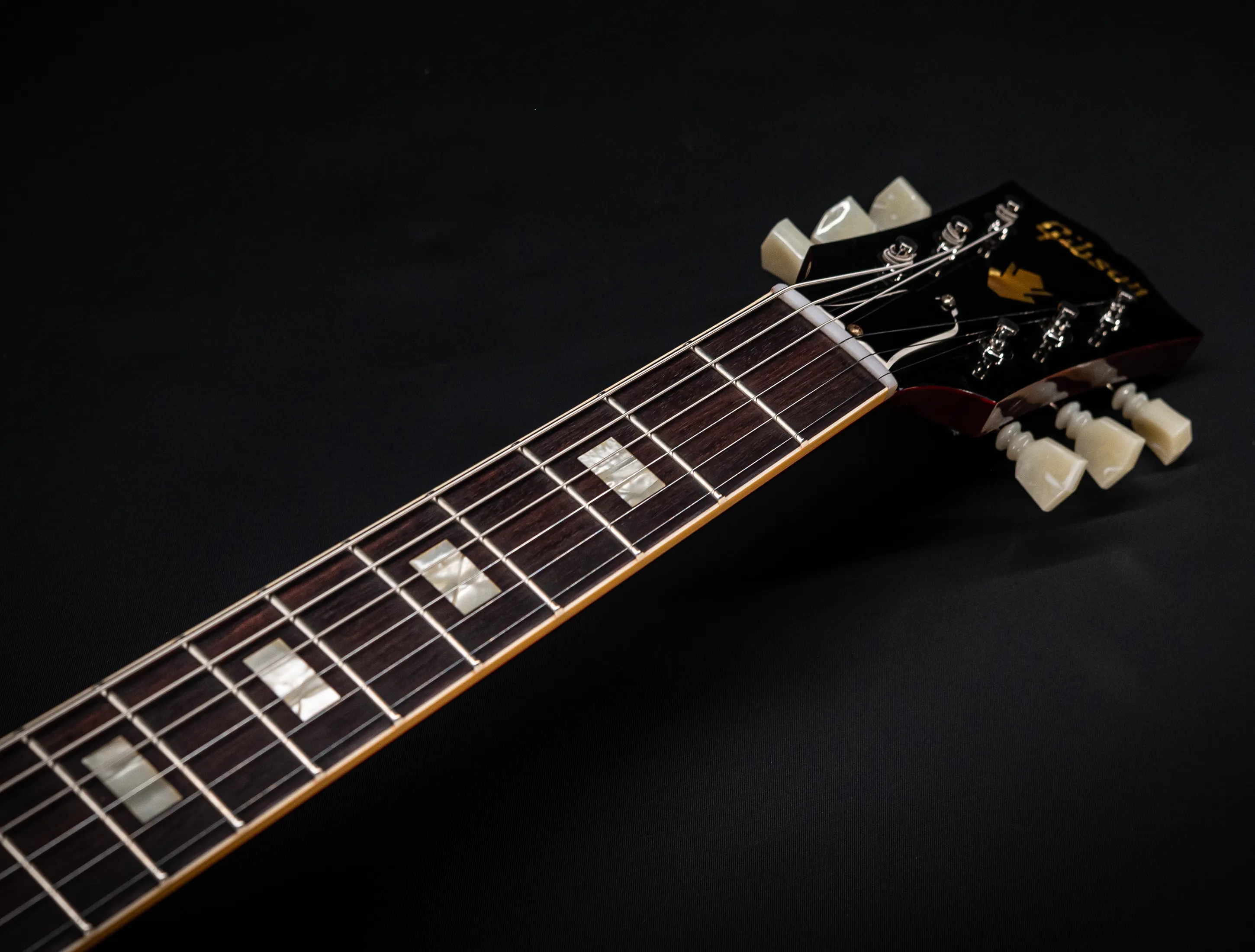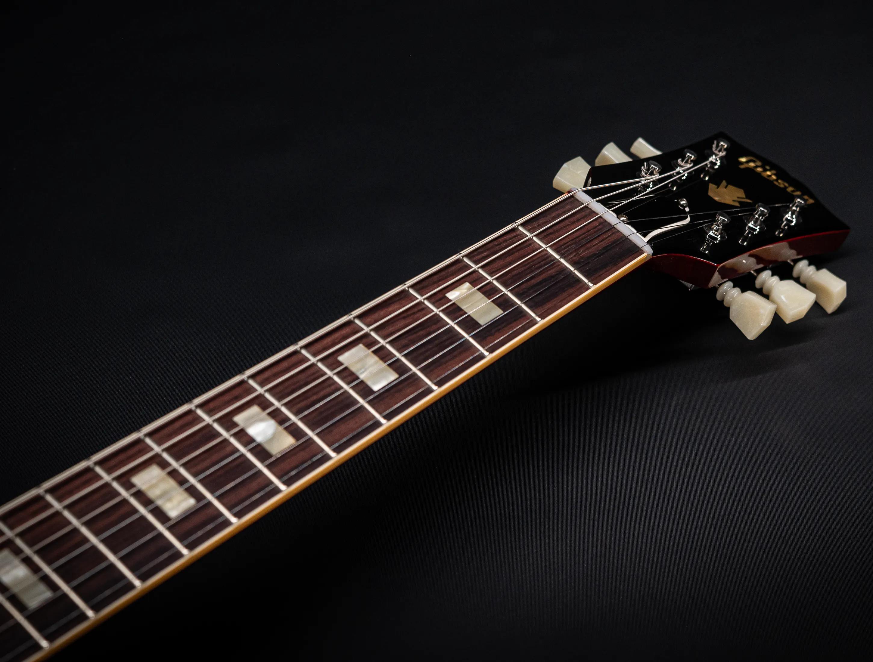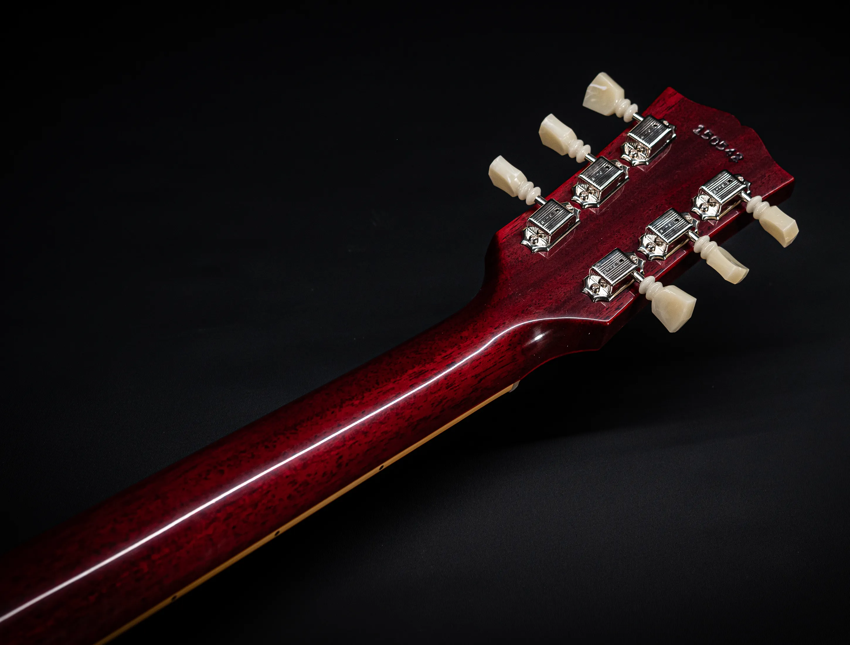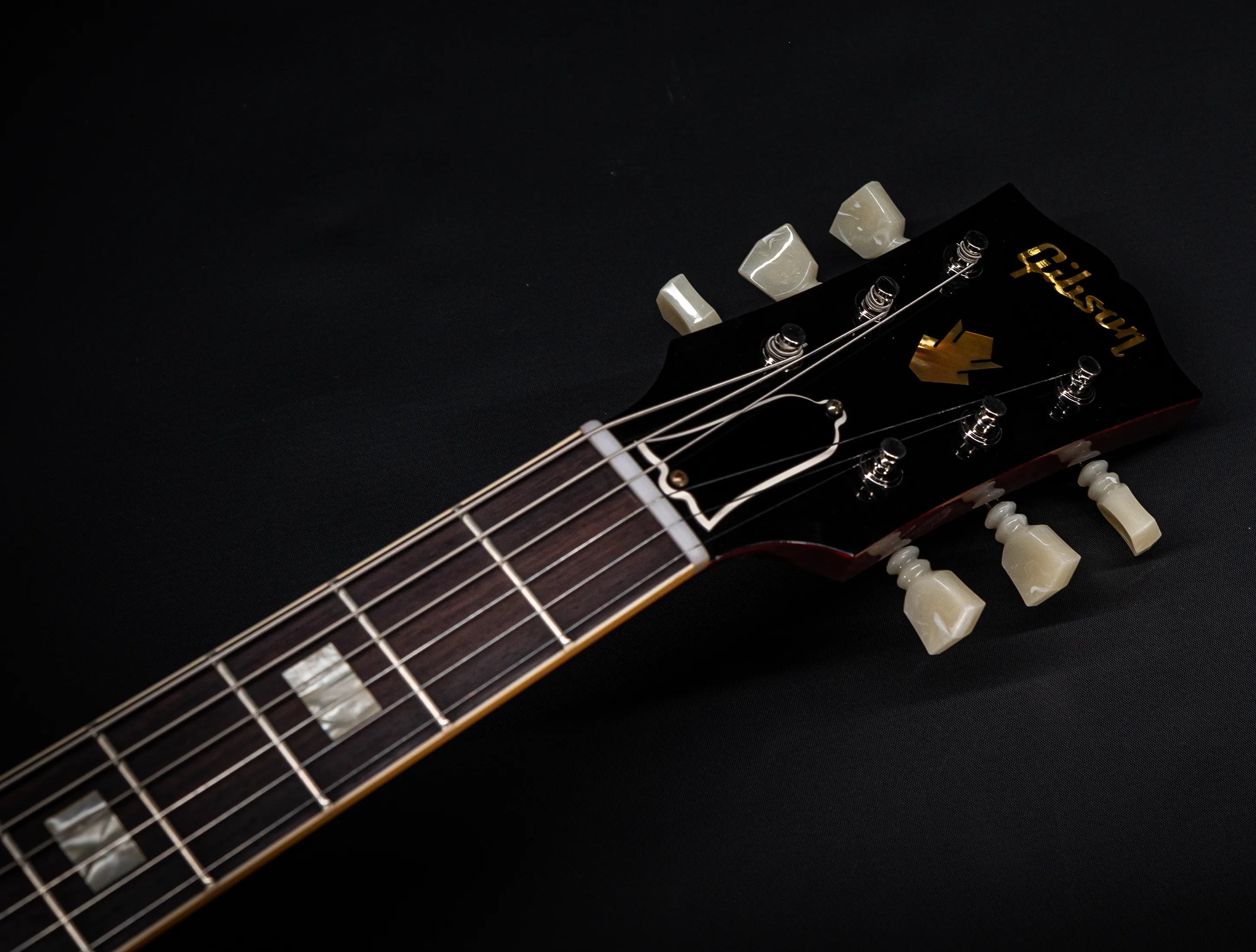 - Die Hals-Korpusverbindung wurde mit Hide-Glue (Heissleim - Knochenleim) verleimt. Historisch korrekt und die beste Verbindung für einen echten Gibson-Sound.