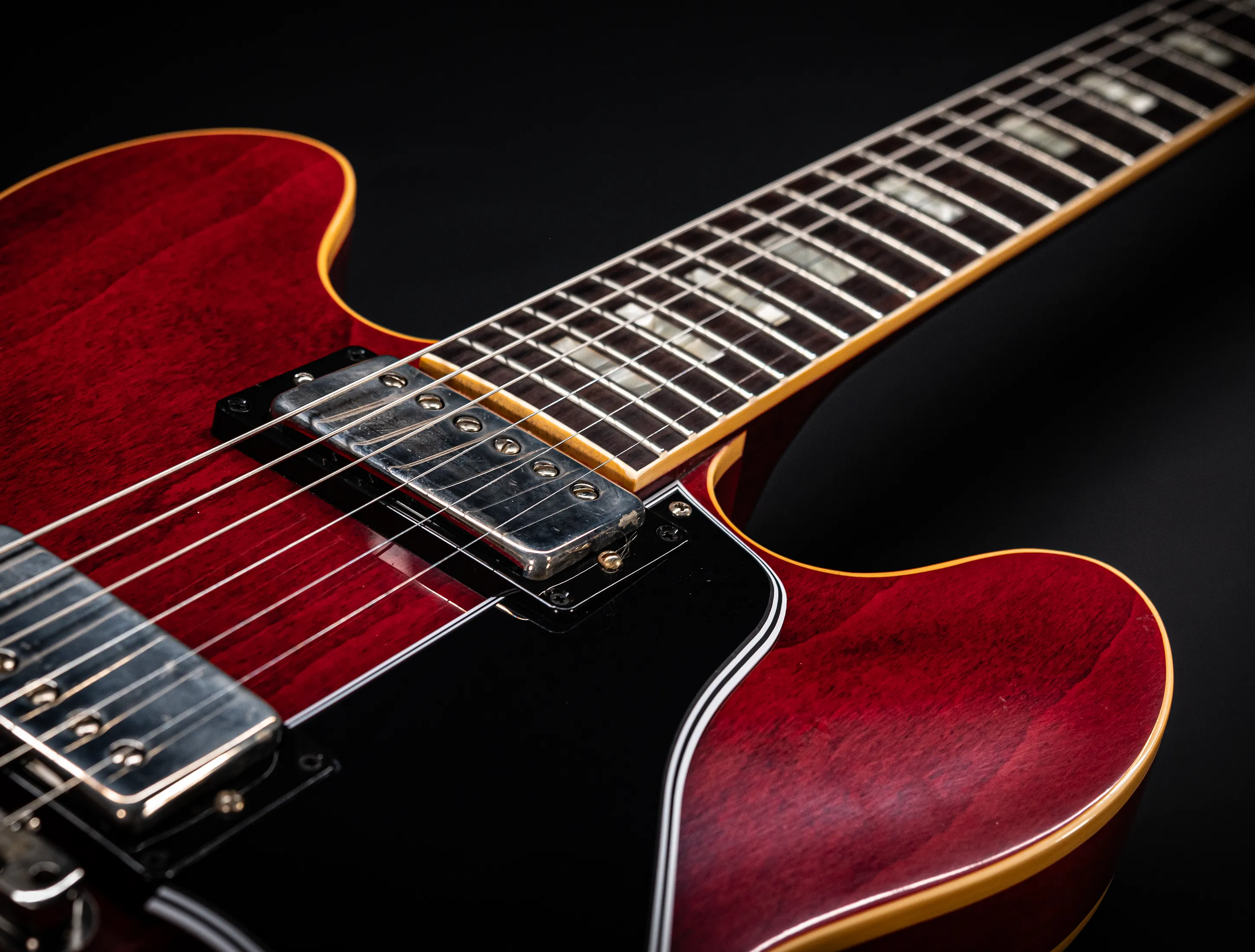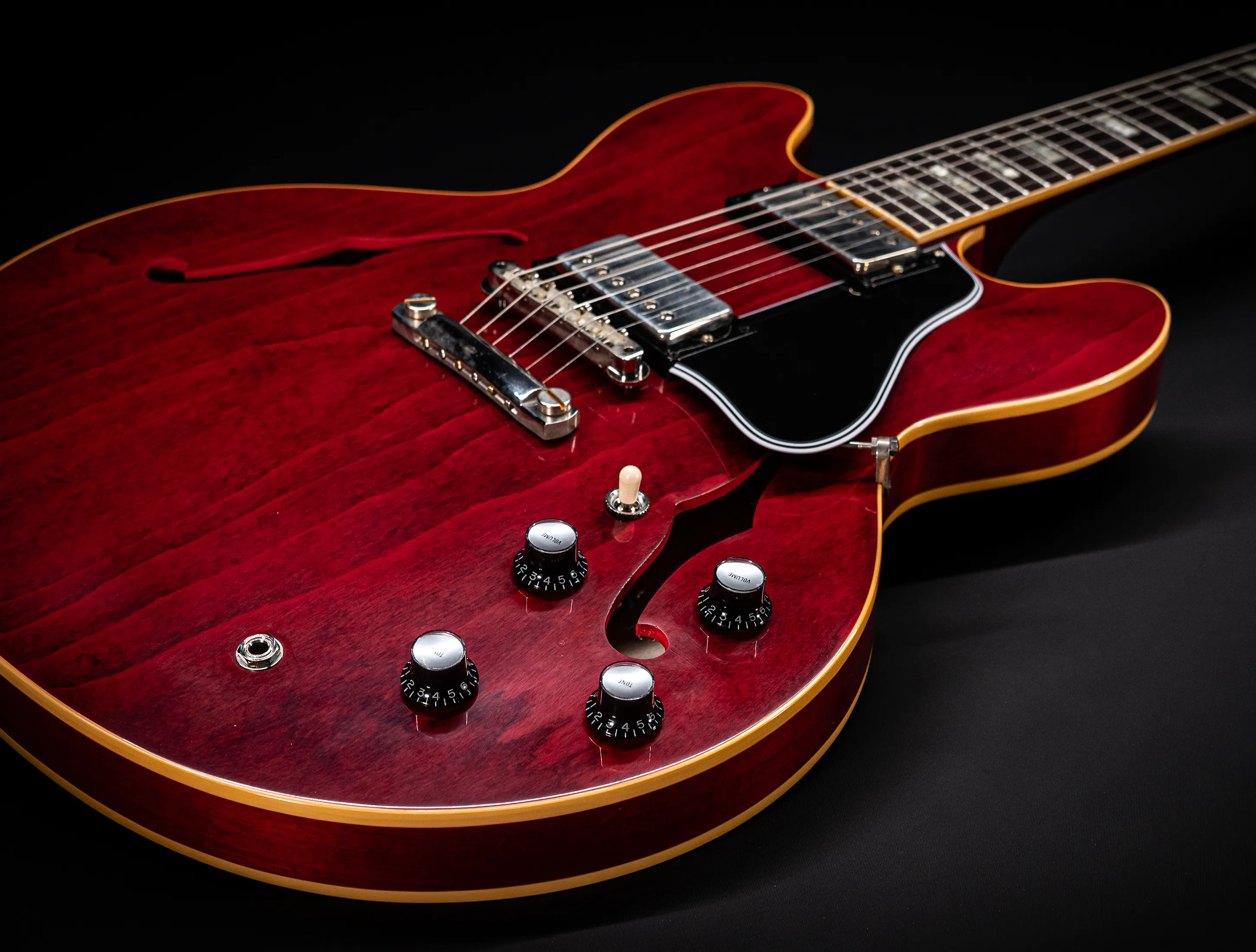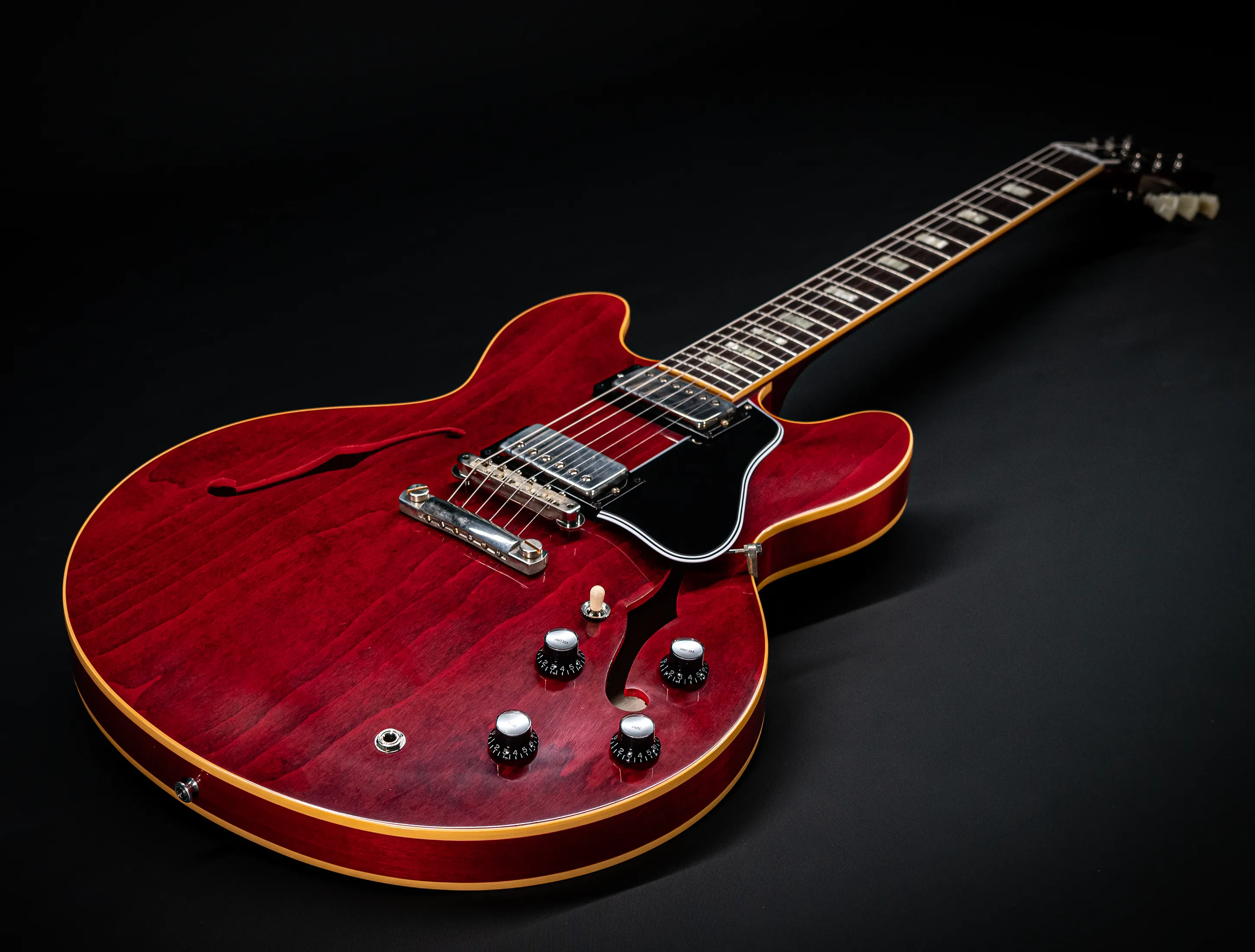 - Korpusform: ES-335 mit schmalen Cutaway Hörner