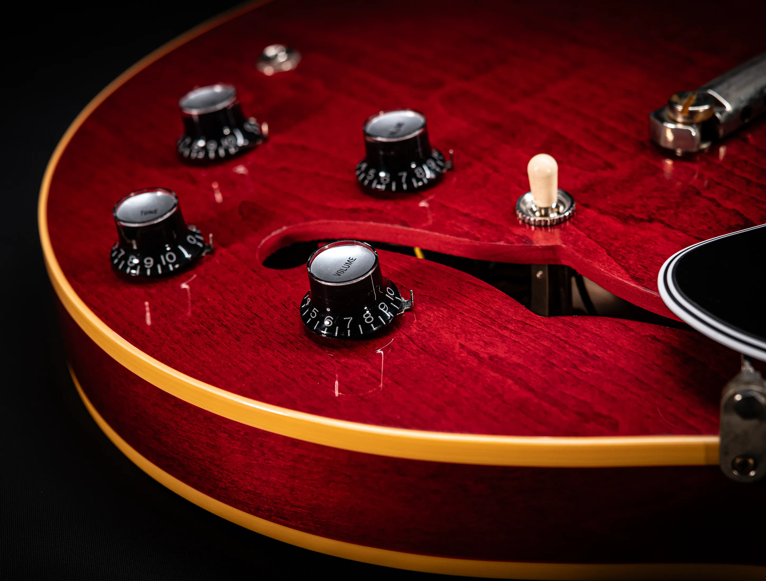 Im aktuellen Modelljahr der 1964 ES335 Historic Reissue sind kleine, aber wesentliche Verbesserungen in der Fertigung vorgenommen worden, darunter zählt: