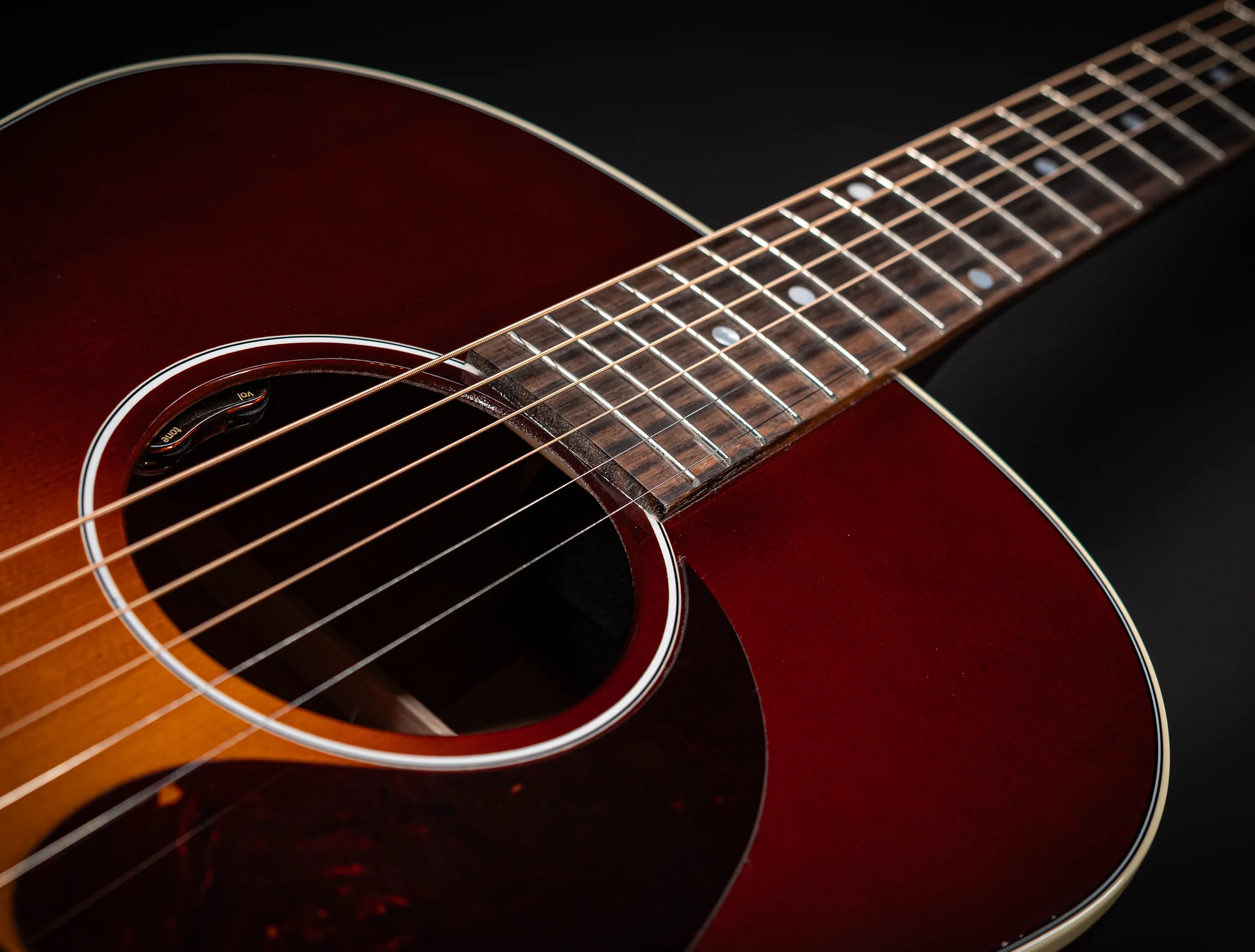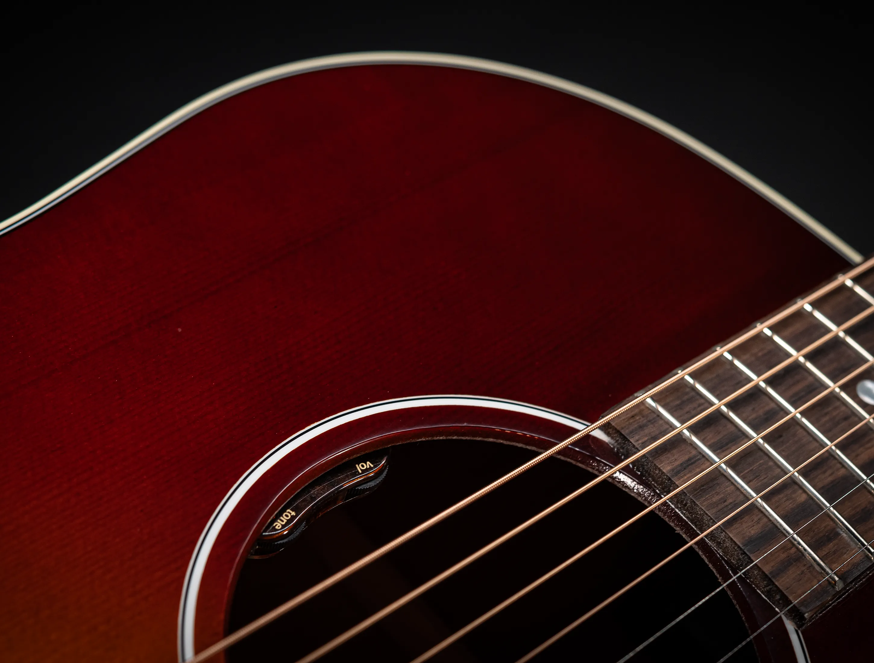 Final wurde die J-45 mit dem beliebten L.R.Baggs Element VTC (Volume-Tone-Compression) Tonabnehmer der neuesten Generation (!) ausgestattet, ein Piezo-Tonabnehmer welcher speziell für dieses Instrument abgestimmt wurde und über einen dezenten Volumen-& Tonregler im Schalllochrand regelbar ist.