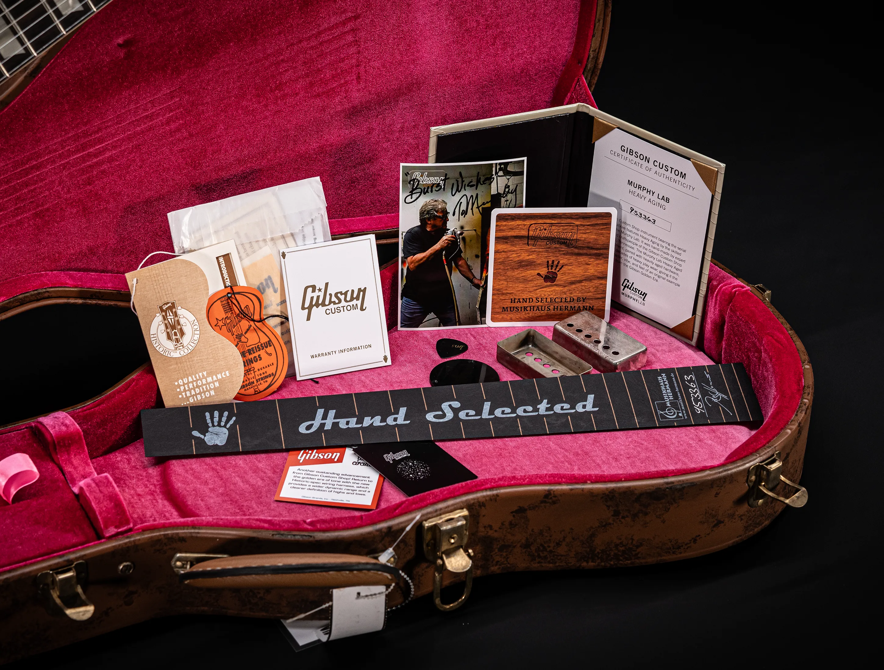 Die Sonderfarbe "Antique Amber Burst, die dazu passende, handselektierte R9 Premium Flame Decke sowie die passende Murphy LAB Heavy Aged Behandlung lassen diese Les Paul zu einem ganz besonderen Highlight werden. Und natürlich dürfen hier die passenden Tonabnehmer nicht fehlen, darum wurden für diese Gitarre selbstverständlich die original Custom Shop - CustomBucker Aged AL3 15.5" UNPOTTED Alnico 3 Double Black verbaut !!!