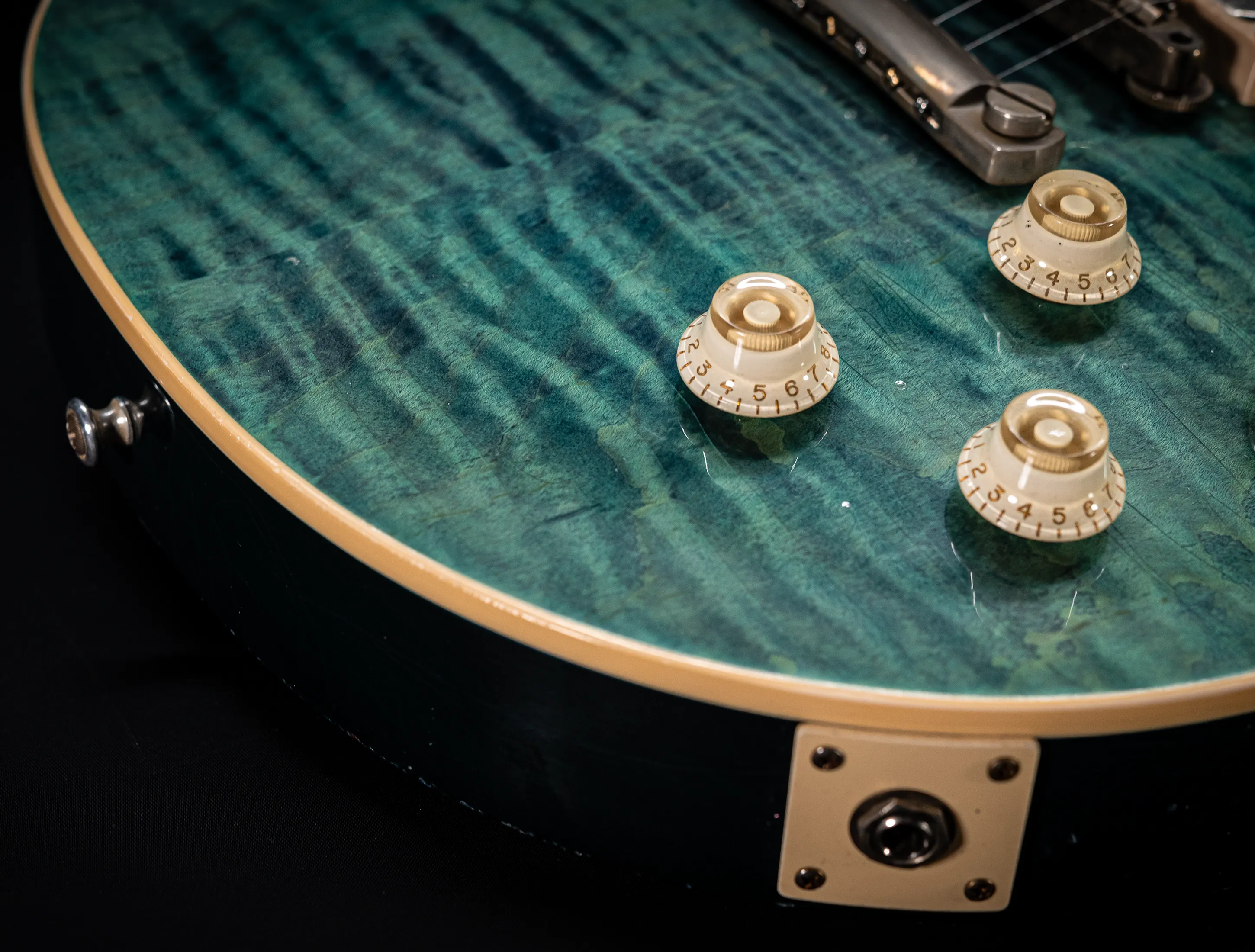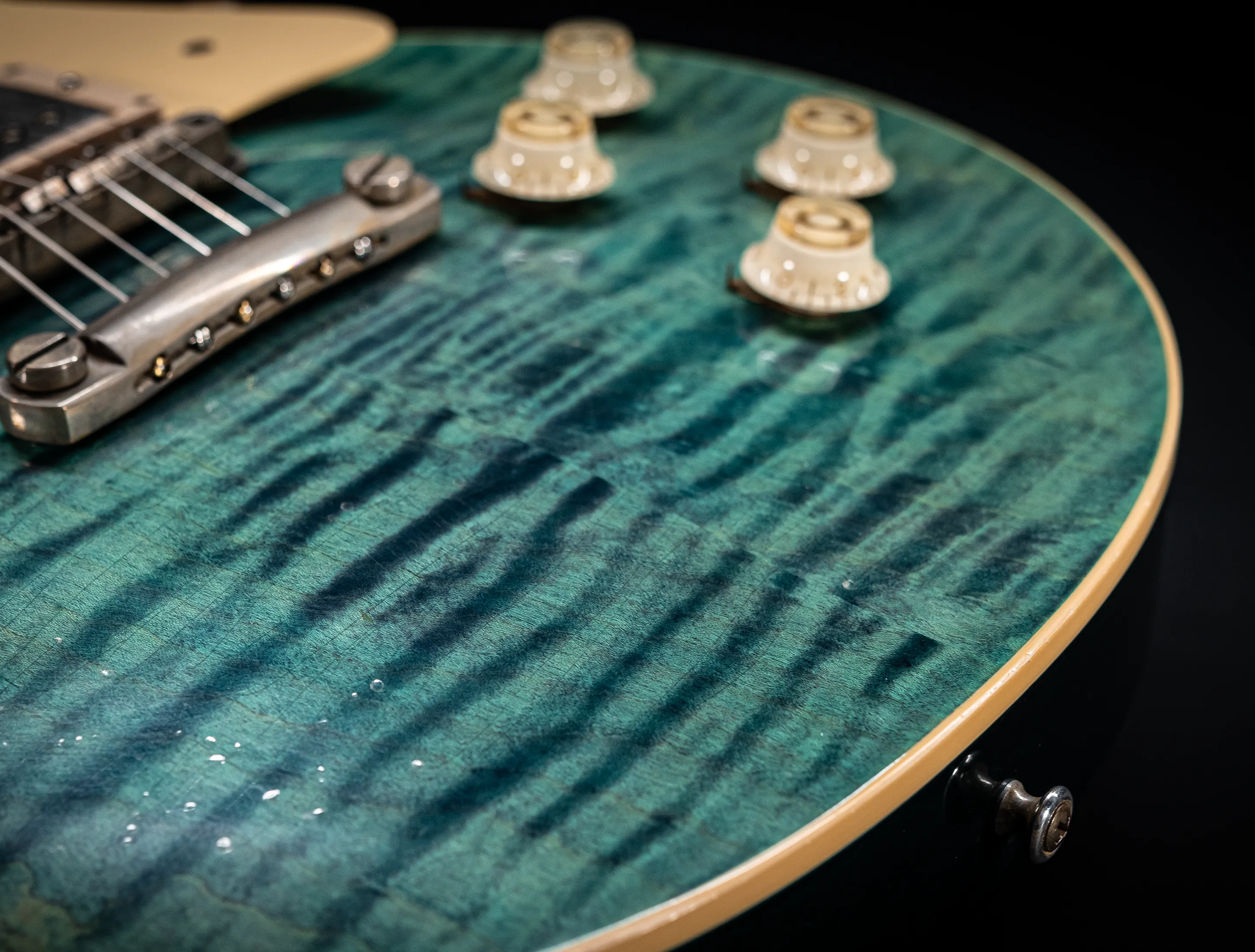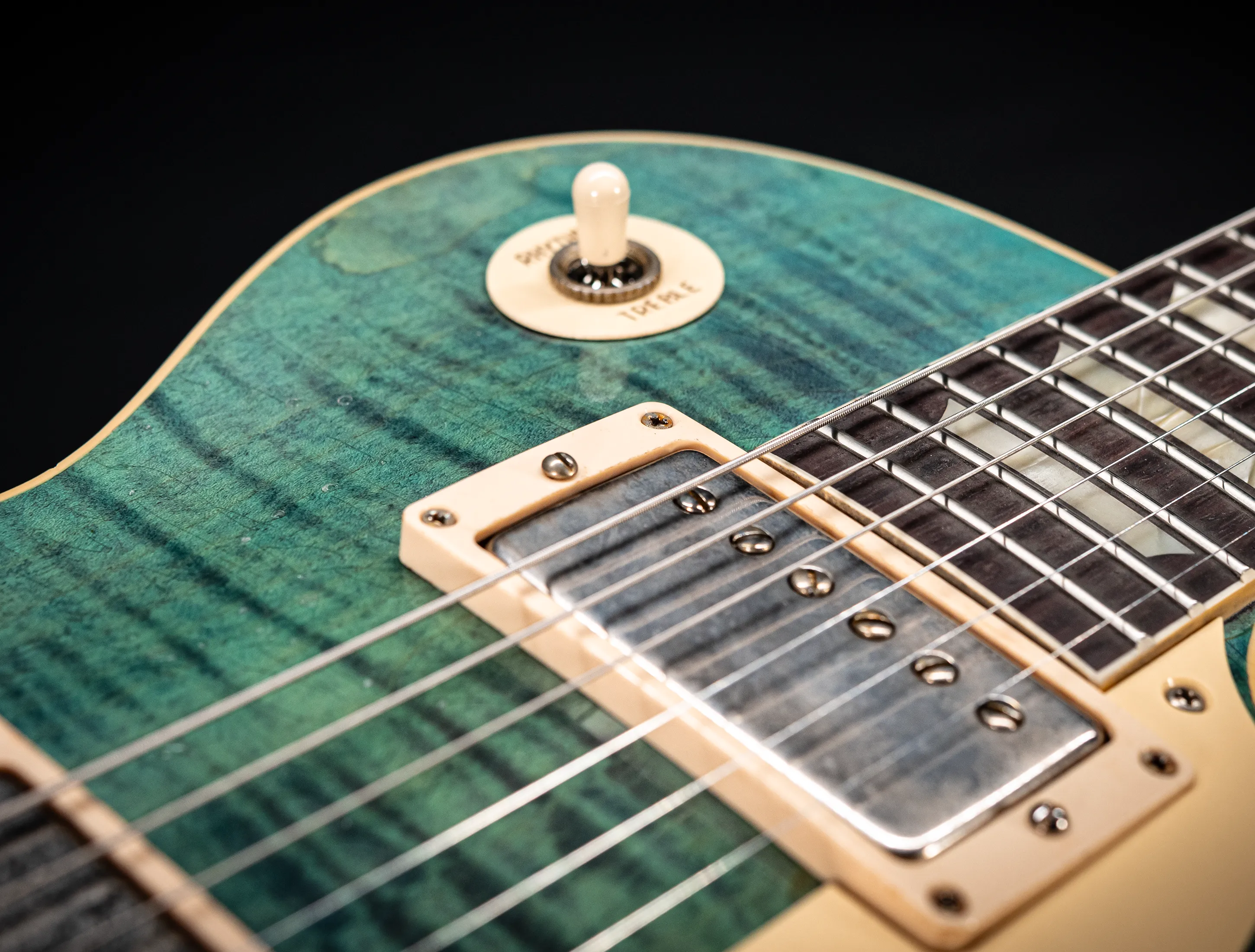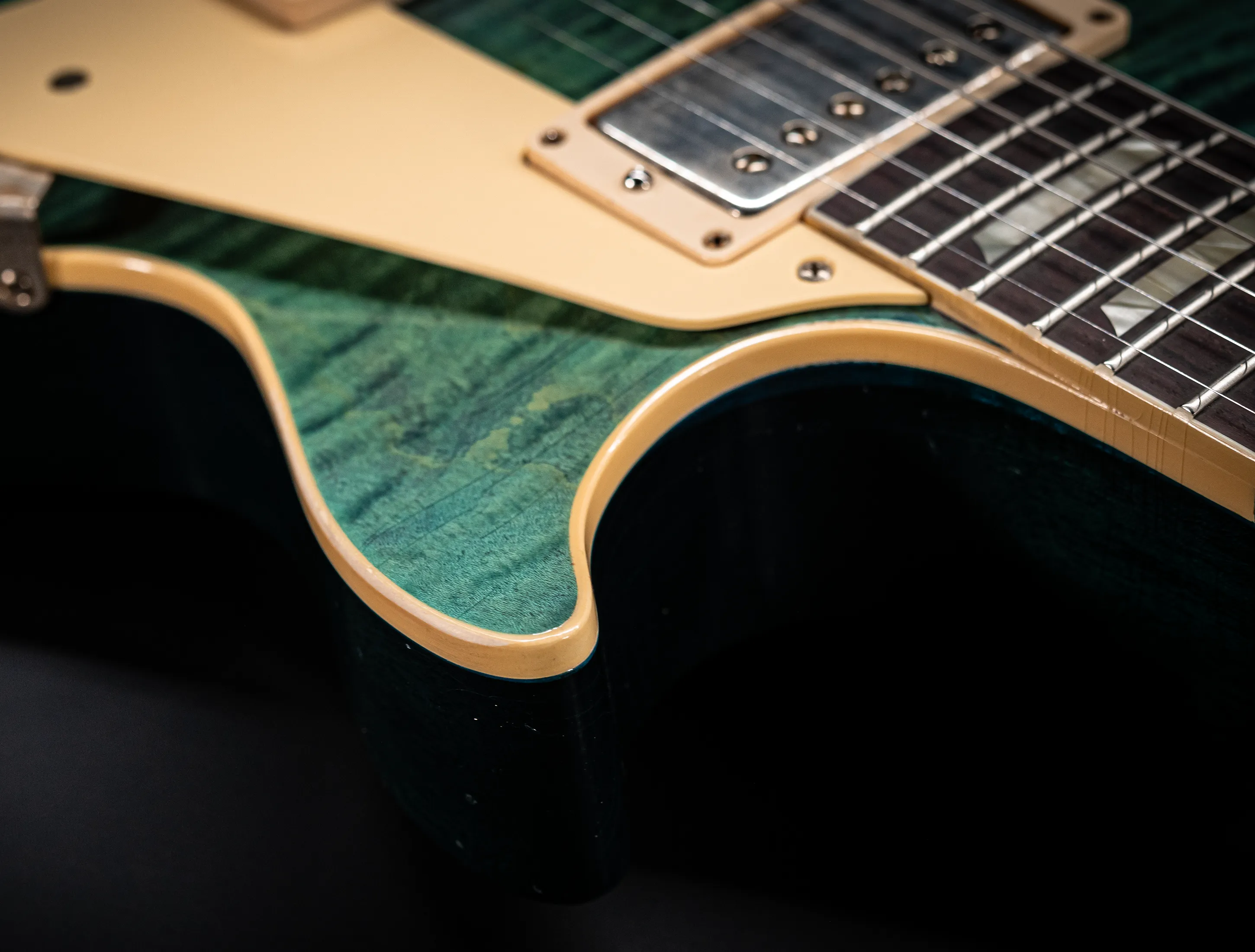 - Decke: 2tlg. auf Gewicht und Schwingung selektierte Flame Ahorn Decke, personal Selektion im Custom Shop Werk Nashville