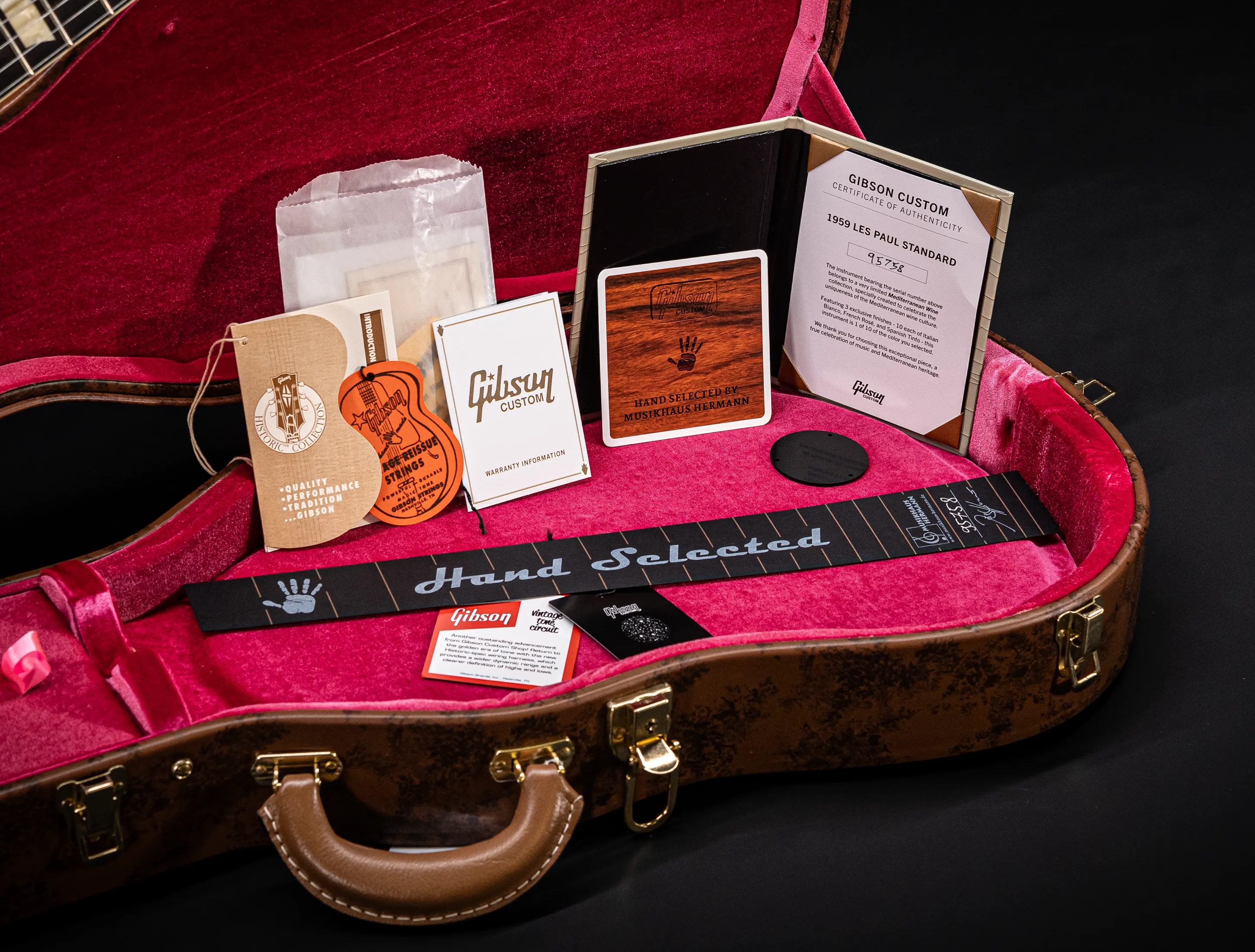 Die Entscheidung für eine ´59 Les Paul hängt jedoch nicht alleine von blanken "Spezifikationen" ab. Vielmehr die Emotionen mit welche man solch ein Instrument verbindet. Sei es auf der Bühne für einen phänomenalen Auftritt und den Jubel der Zuhörer, in einer kleinen Combo im kleinen persönlichen Rahmen oder vor allem (und das ist das Wichtigste) FÜR SICH SELBST - zum Auszeit nehmen und schlichtweg das Instrument vollumfänglich zu genießen. Mit einer 1959 Les Paul Standard haben Sie hierzu ein würdiges Instrument - nicht nur ein Instrument, eine Legende!