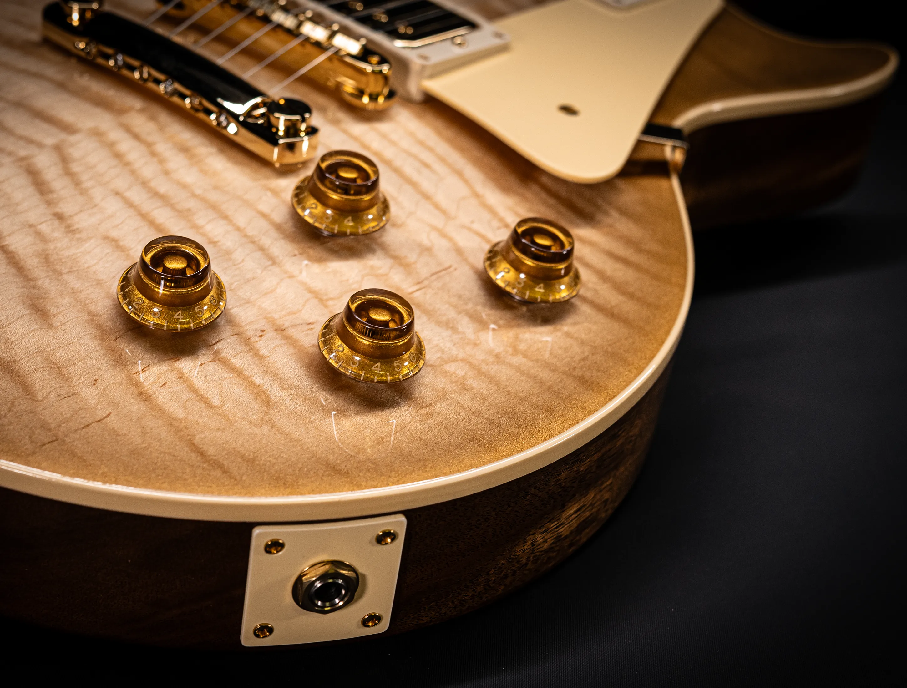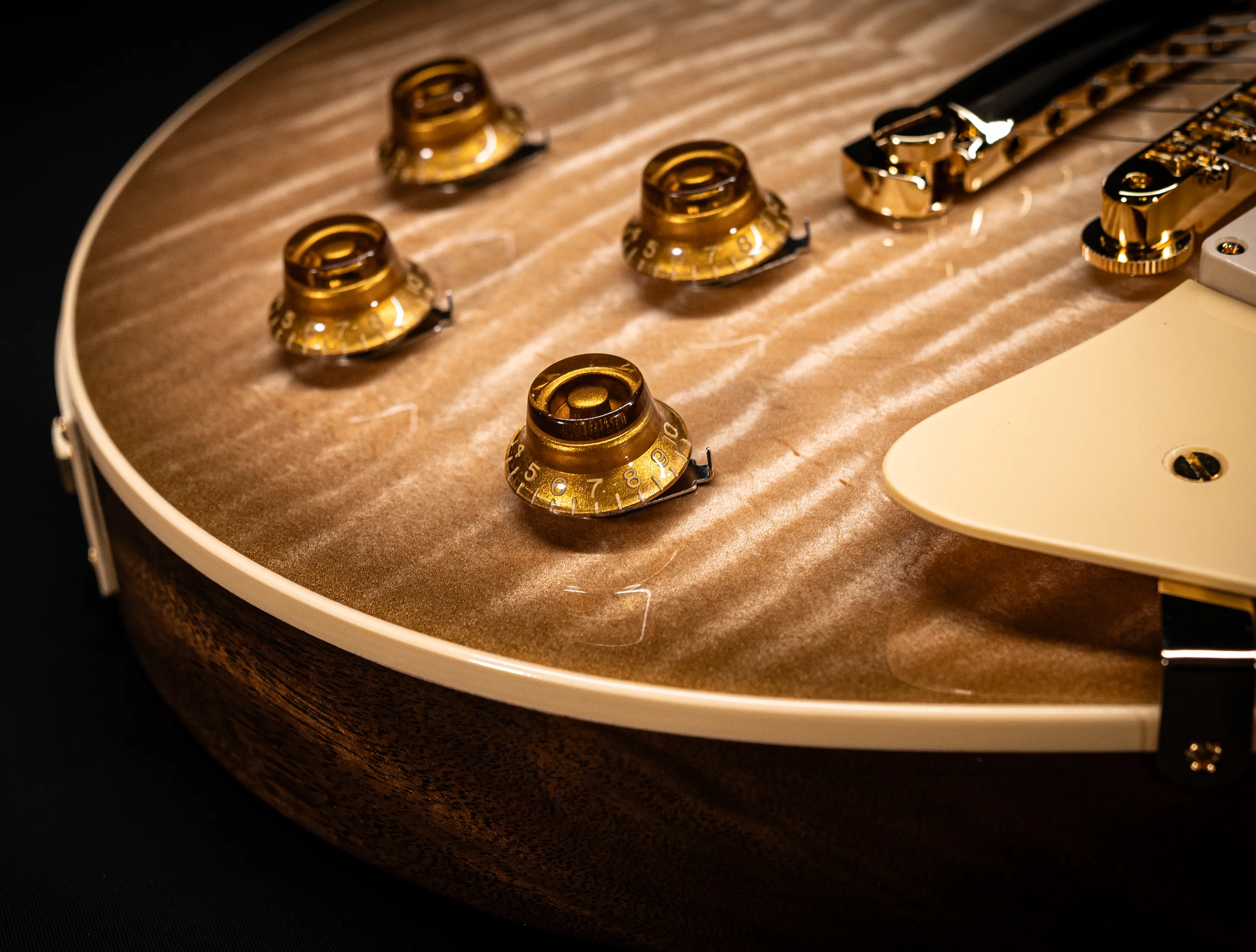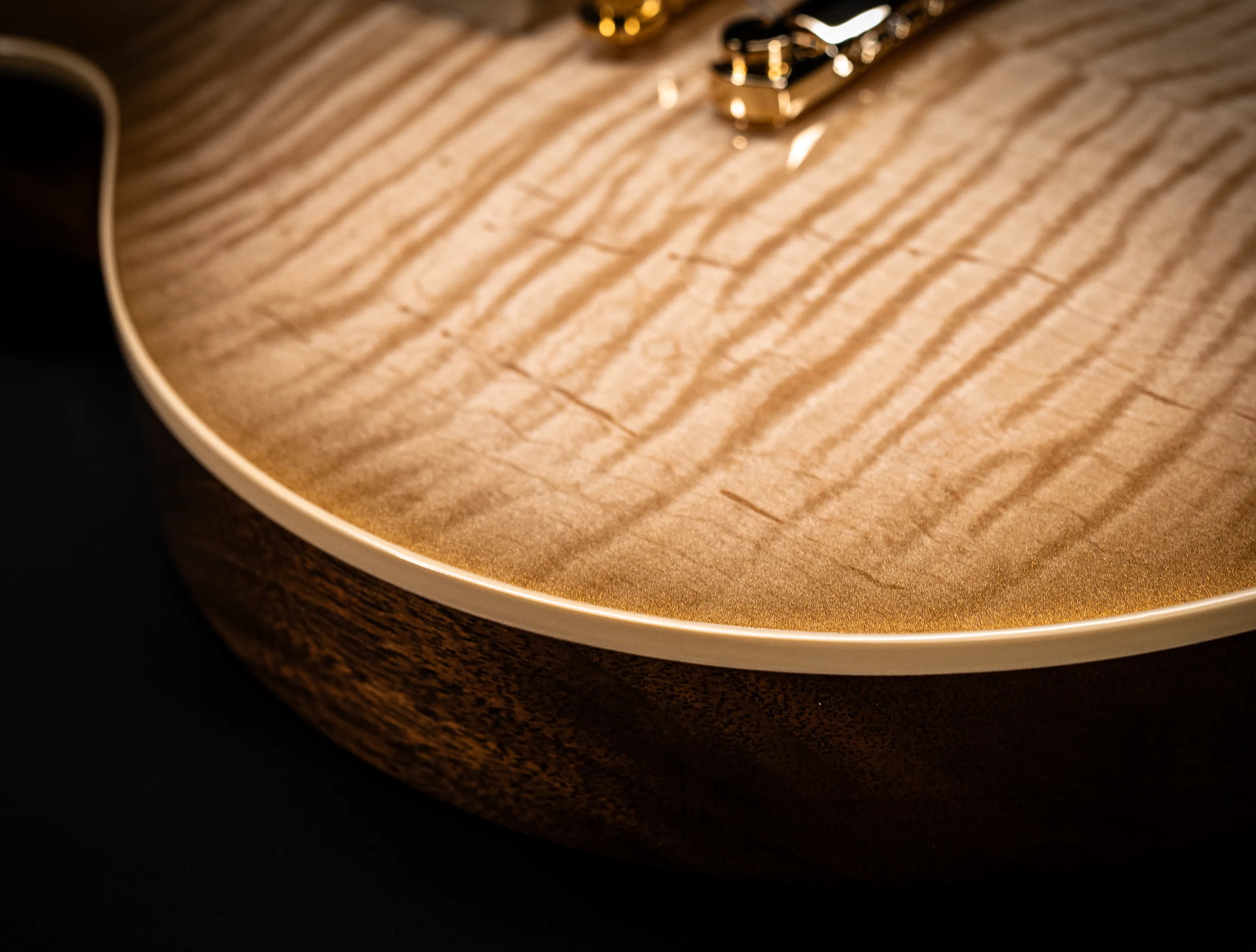 Im strahlenden hochglanz poliertem Finish mit edler Goldhardware stahlt sie nur so das Mediterane Gefühl aus, welches durch eine AAAA-Grade selektierte Ahorn-Decke perfekt unterstrichen wird.
