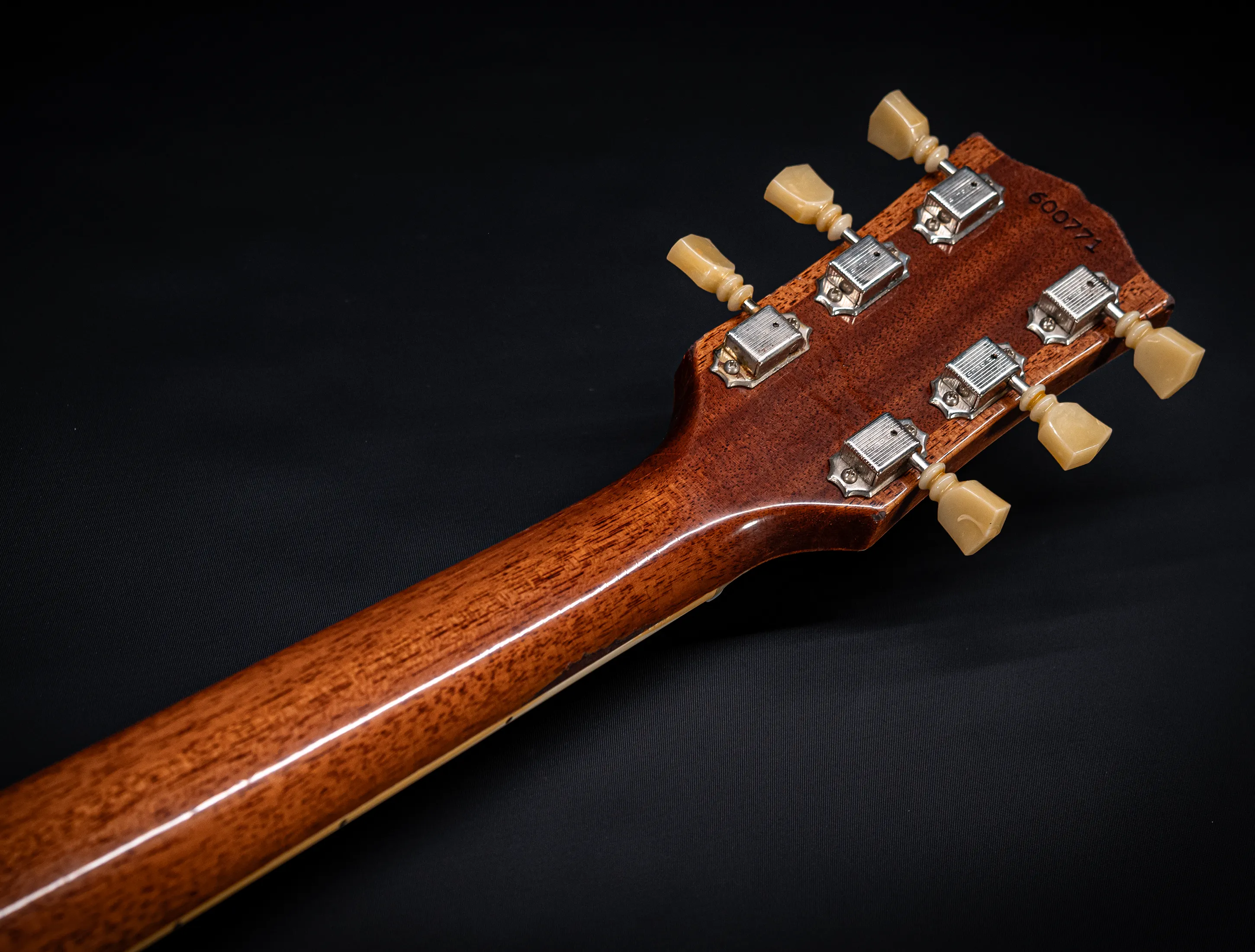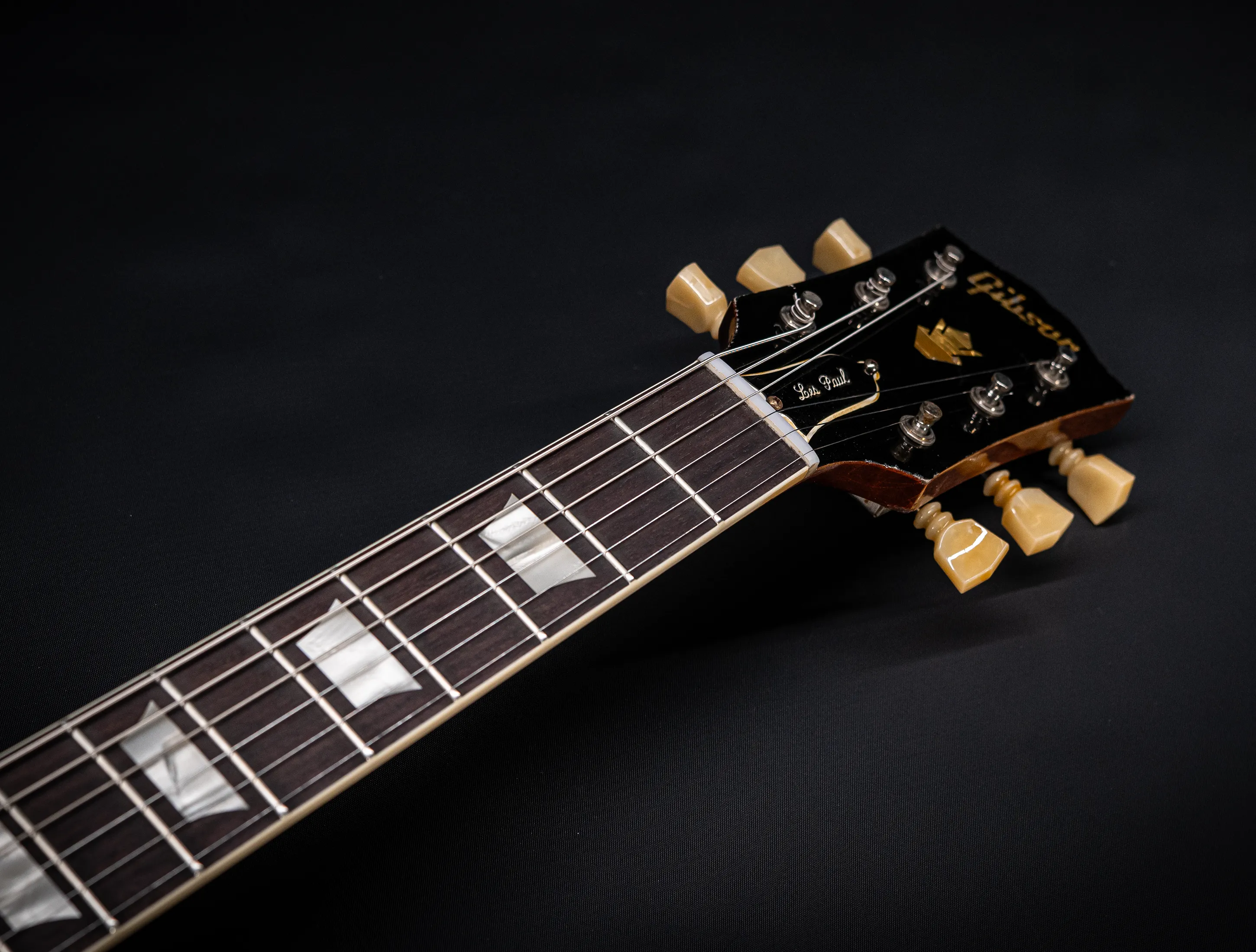 Das Murphy Lab Authentic Heavy Aging verleiht der Gitarre eine Aura, als hätte sie bereits Jahrzehnte auf den größten Bühnen der Welt verbracht. Der Look? Atemberaubend. Die Ausstrahlung? Unverkennbar. Die Farbe Antique Super Faded Brown bringt genau jene warme, gelebte Eleganz, die sofort Bilder von verrauchten Clubs, endlosen Jams und legendären Sessions entstehen lässt.