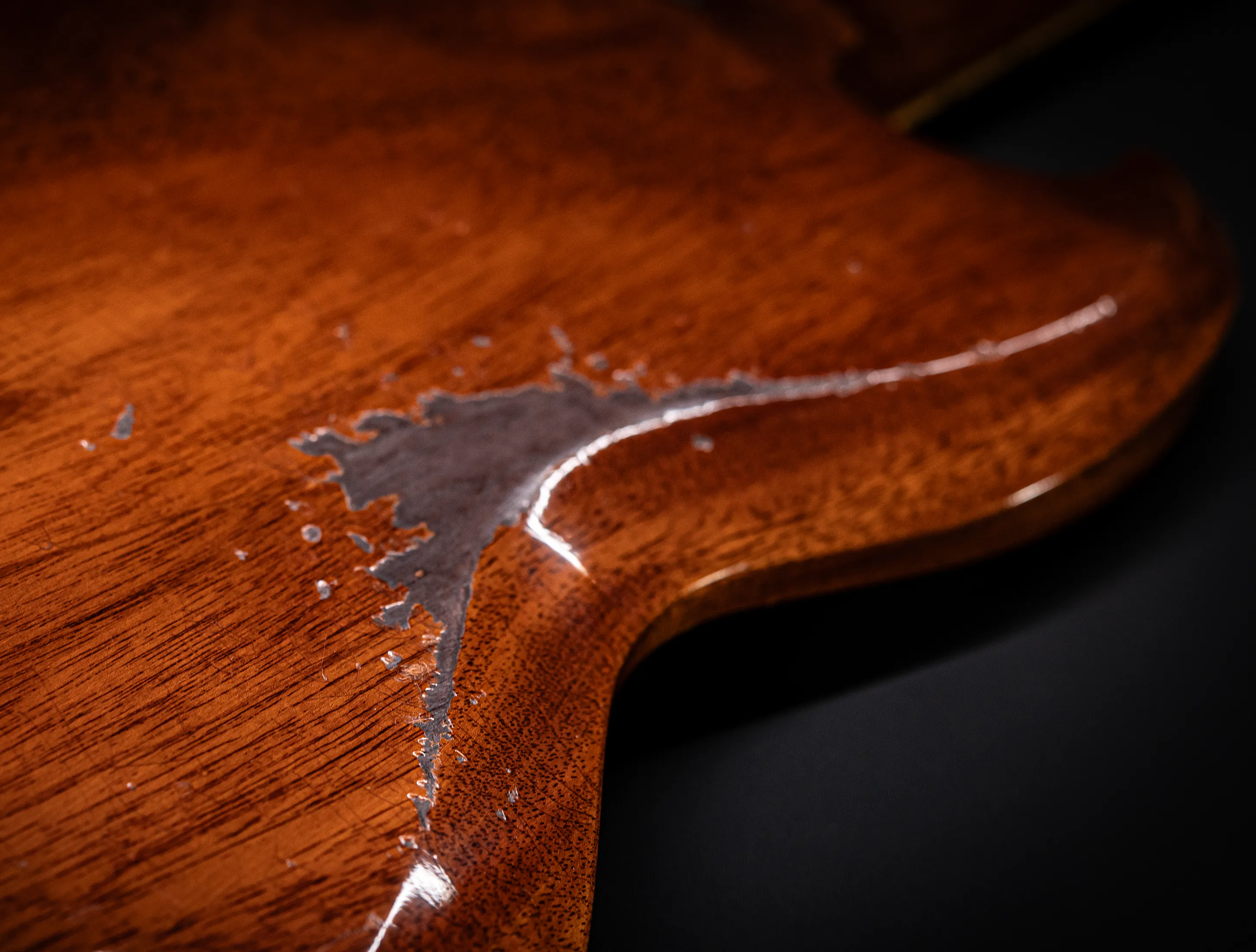 Fühlen Sie die Leidenschaft des Murphy Lab, das künstlerische Flair und die Liebe zum Detail. Es ist schwer in Worte zu fassen, was für eine Anmut dieses Instrument hat. Das LAB Authentic Aging durchdringt quasi jede Pore der Gitarre und die daraus resultierende Optik und Haptik ist unglaublich. Man spürt quasi das Mojo der Gitarre. Denn der verwendete Lack ist eine Entwicklung von Tom Murphy persönlich, nach jahrelangem Suchen nach der perfekten Rezeptur einer authentischen Gitarre "wie damals" ist es Tom Murphy gelungen, diese DNA zu "entschlüssel". Mehr Freiheit zum Atmen, ultra dünn und schlichtweg authentisch. Bereits trocken anspielt merkt man die Resonanz, das Sustain und das Schwingen des ganzen Körpers