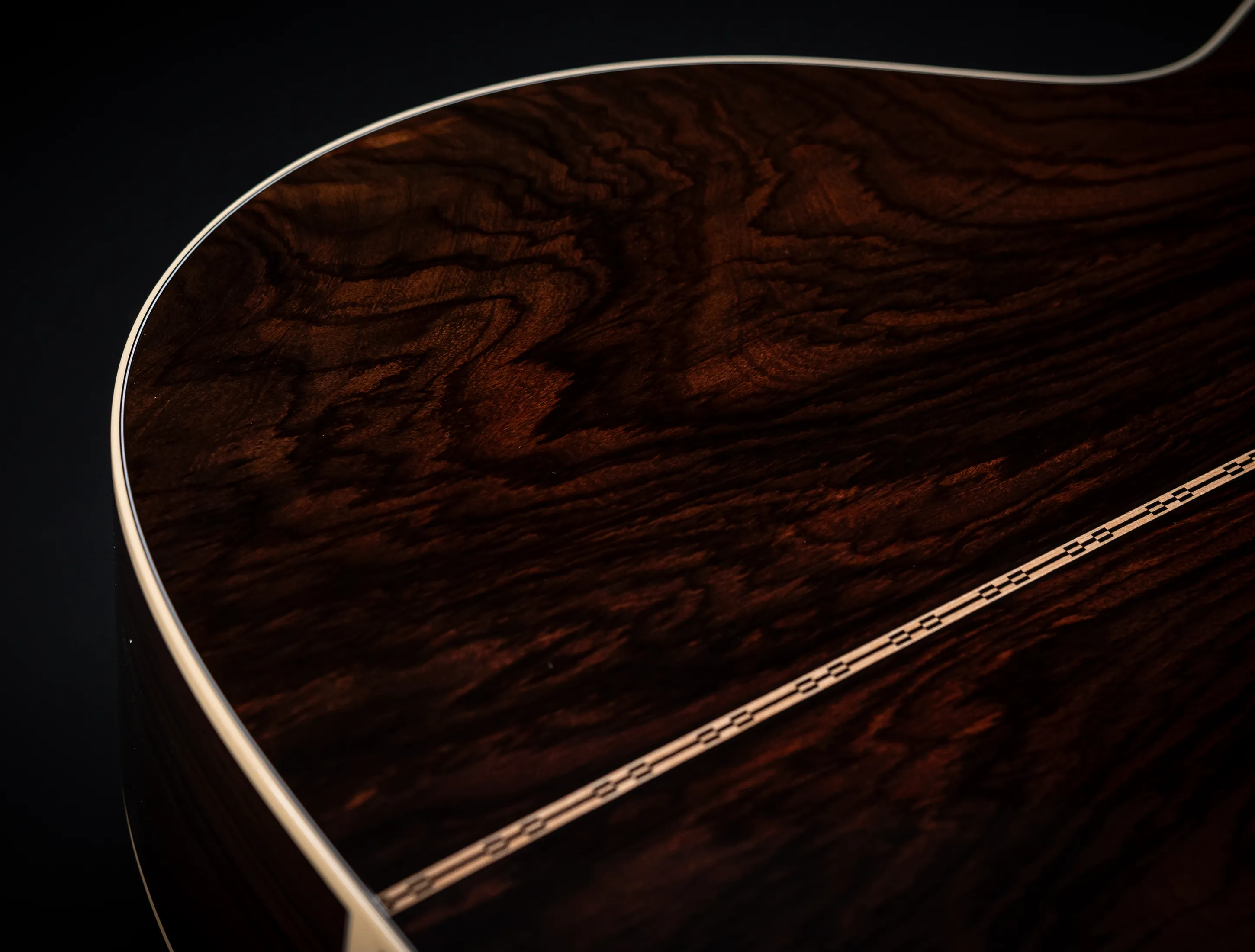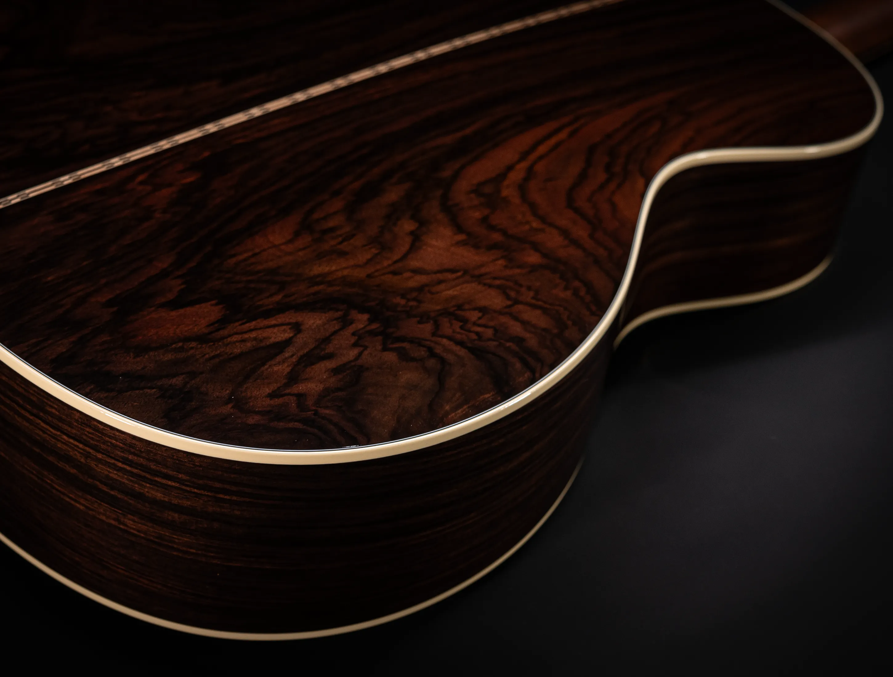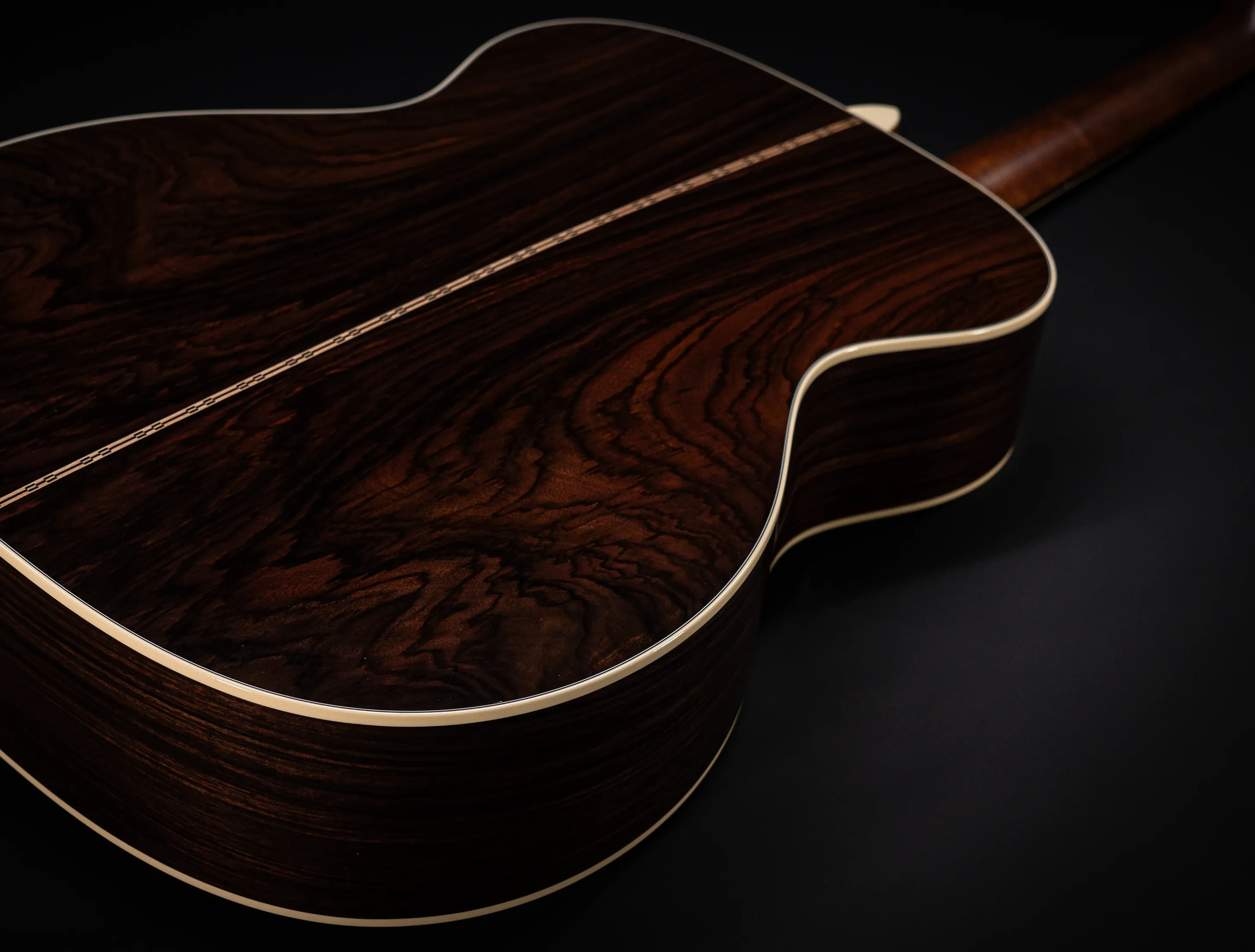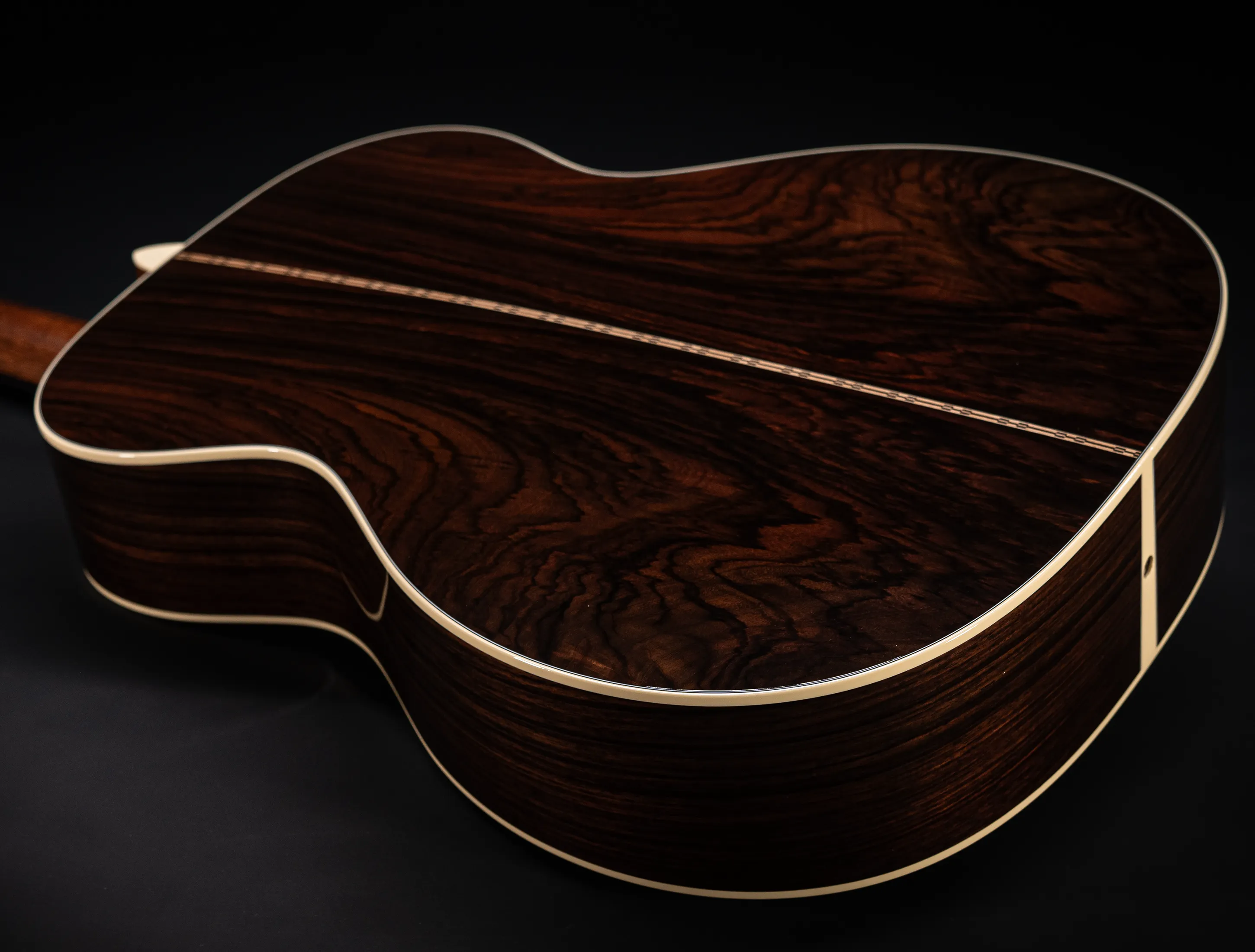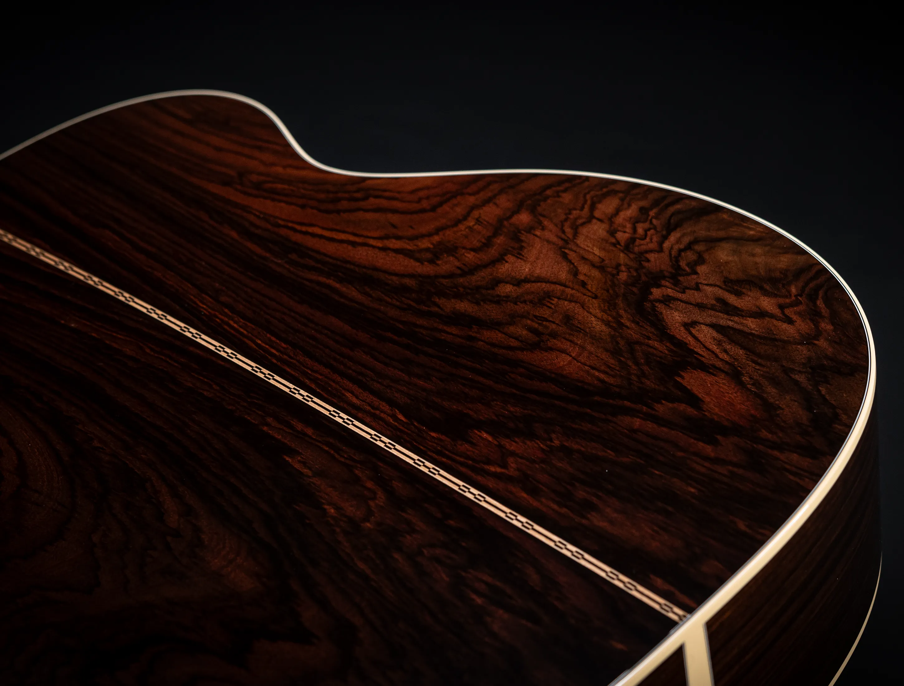 - Boden und Zarge aus massivem, handselektierten indischen Mystic Wildgrain Palisander
