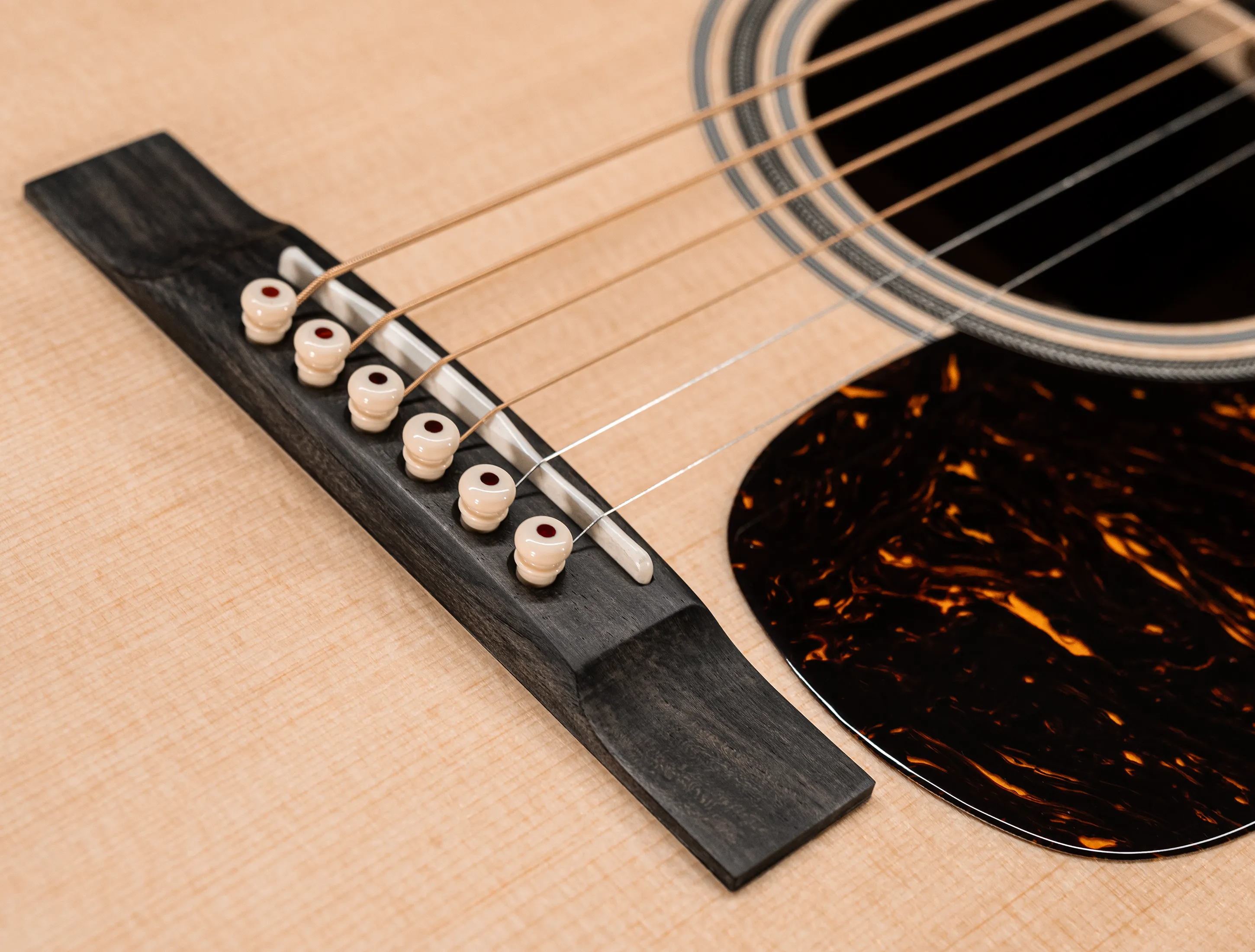 - Bridge Pins: White w/Tortoise Dots