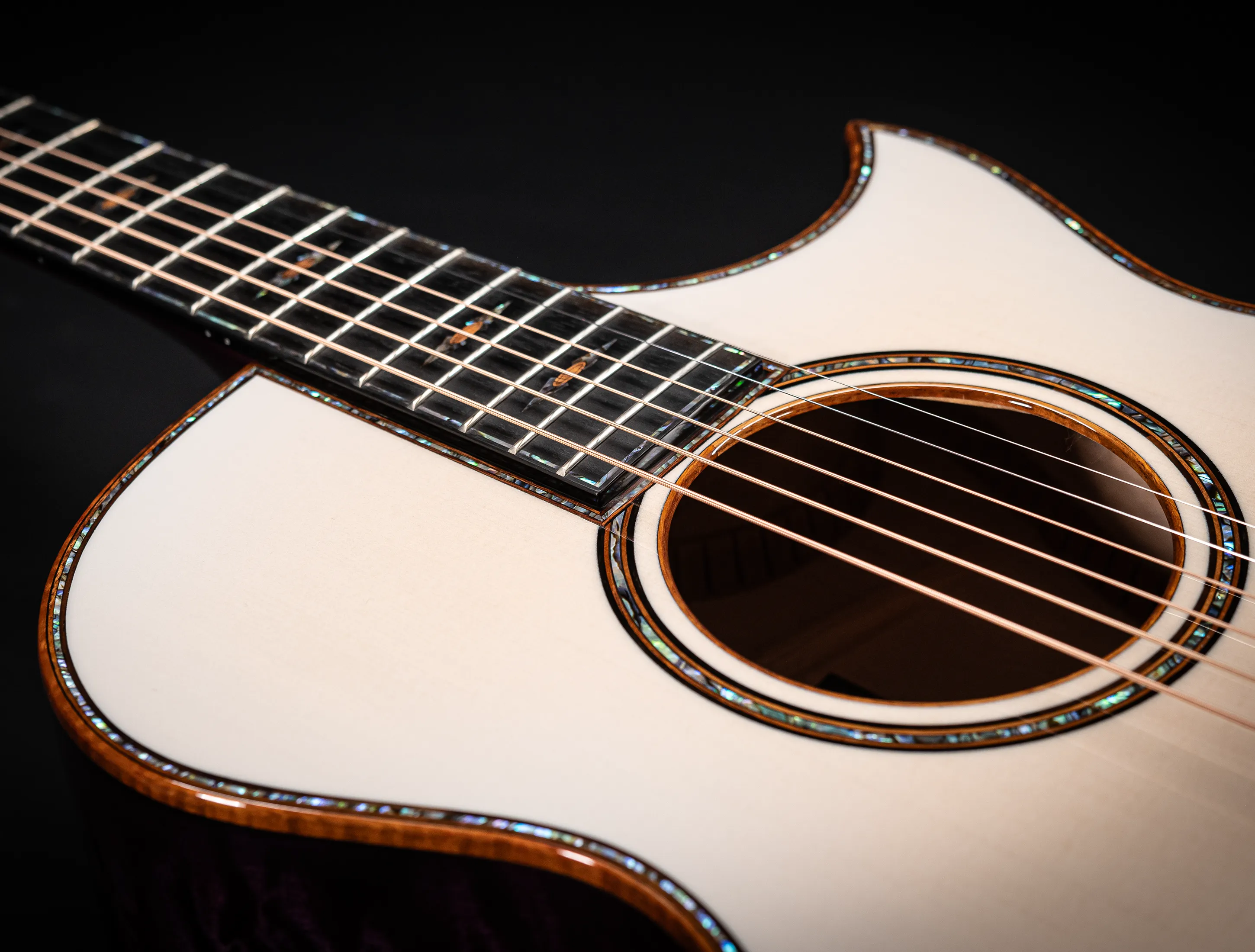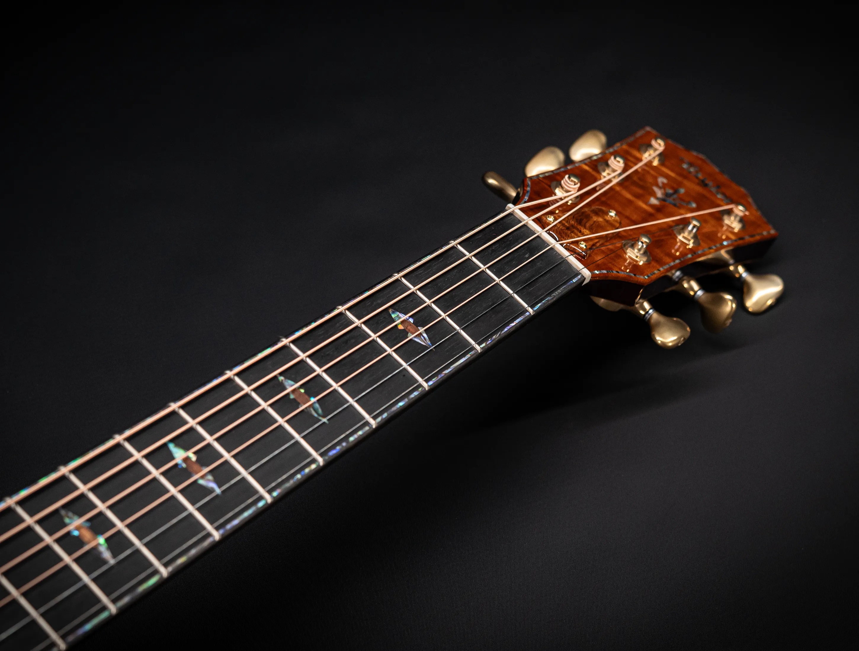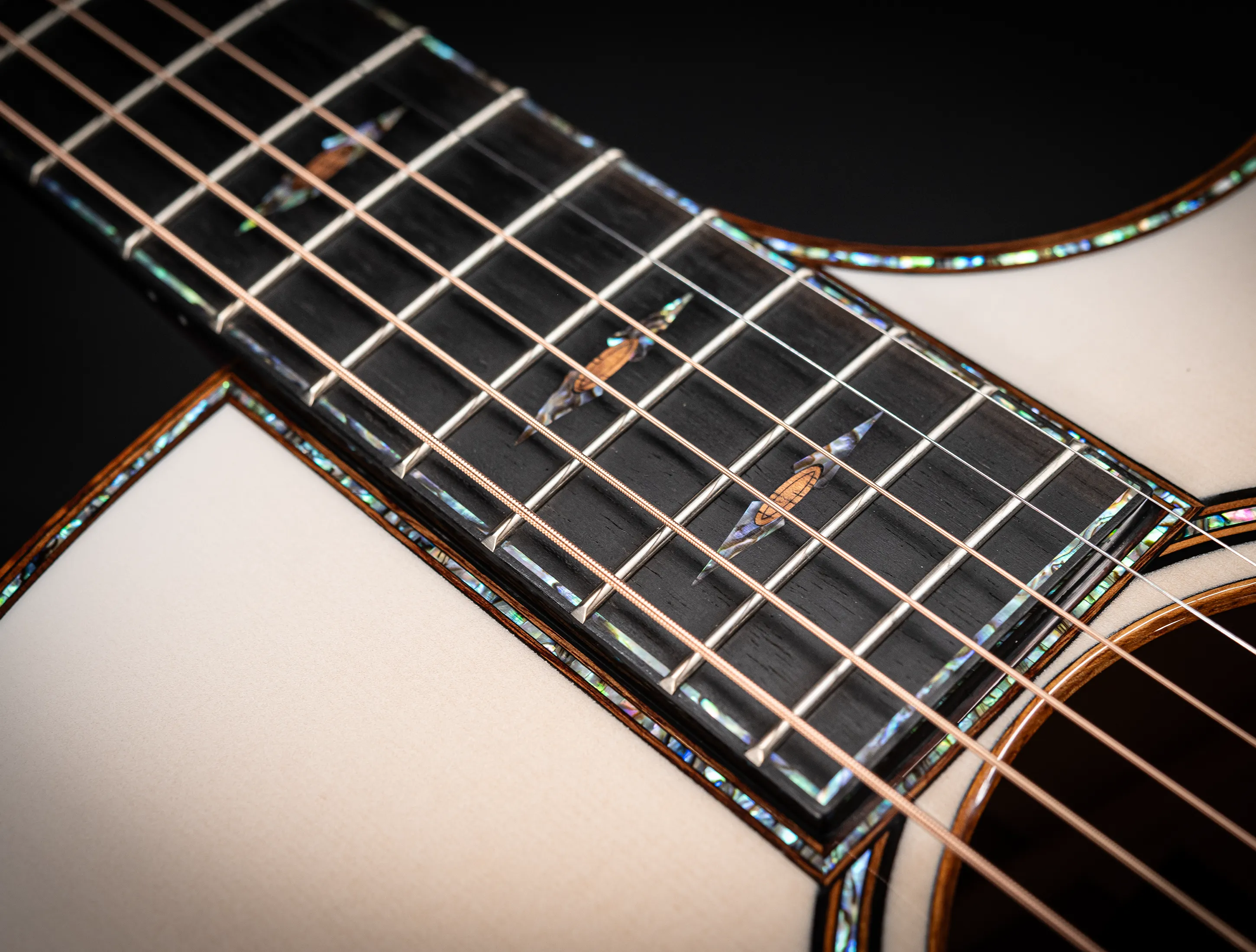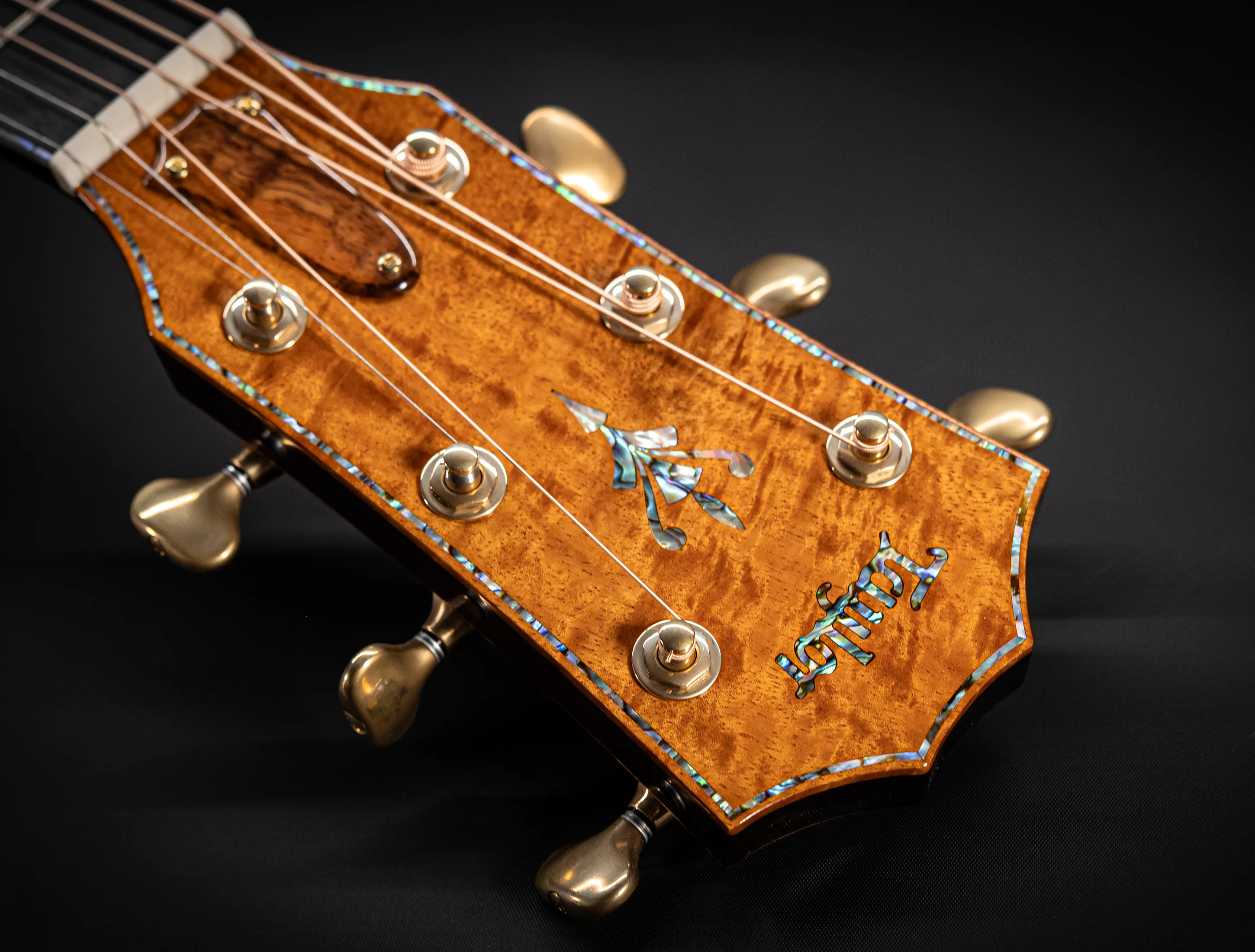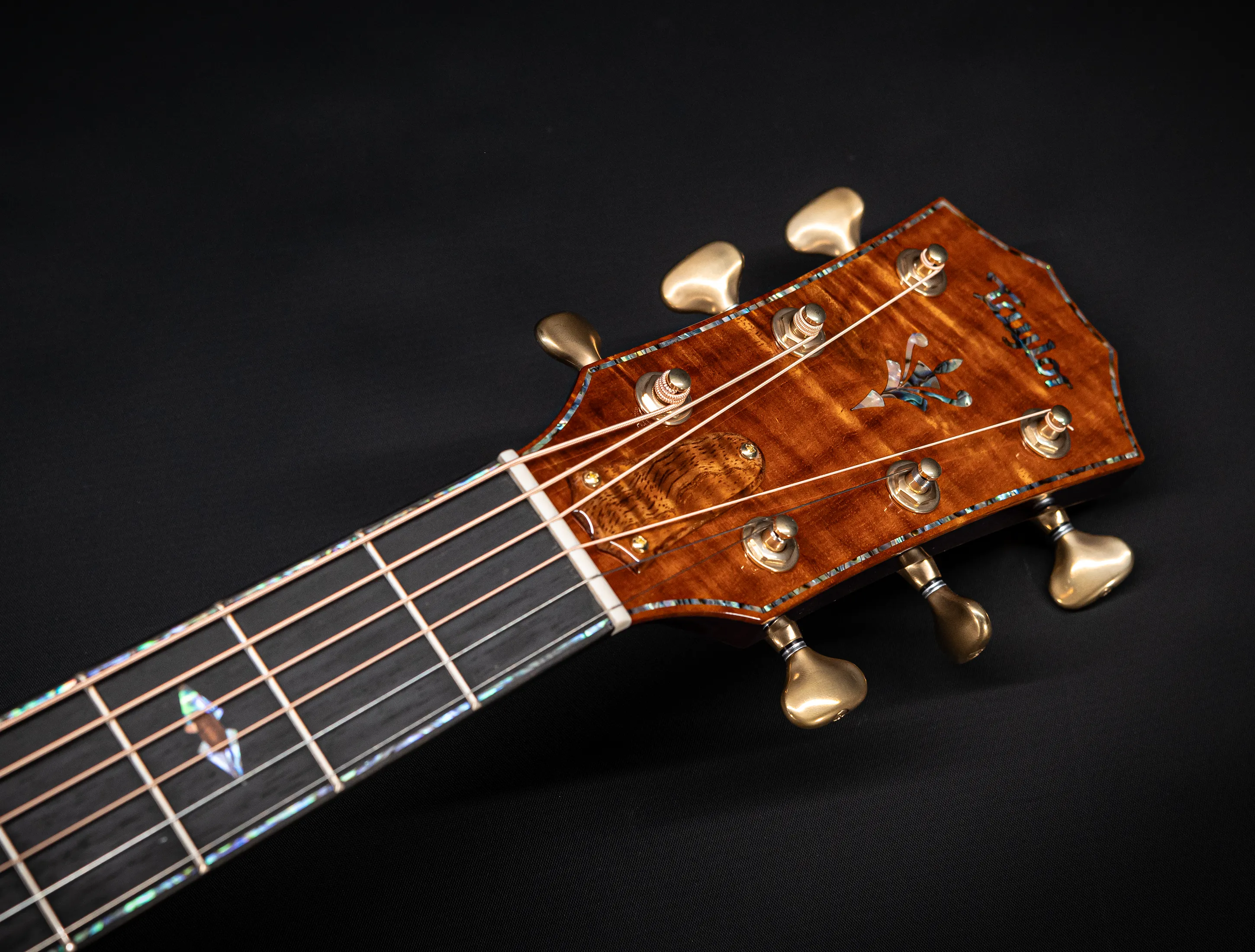 - Binding: gemaßertes, hawaiianisches Koa mit Paua