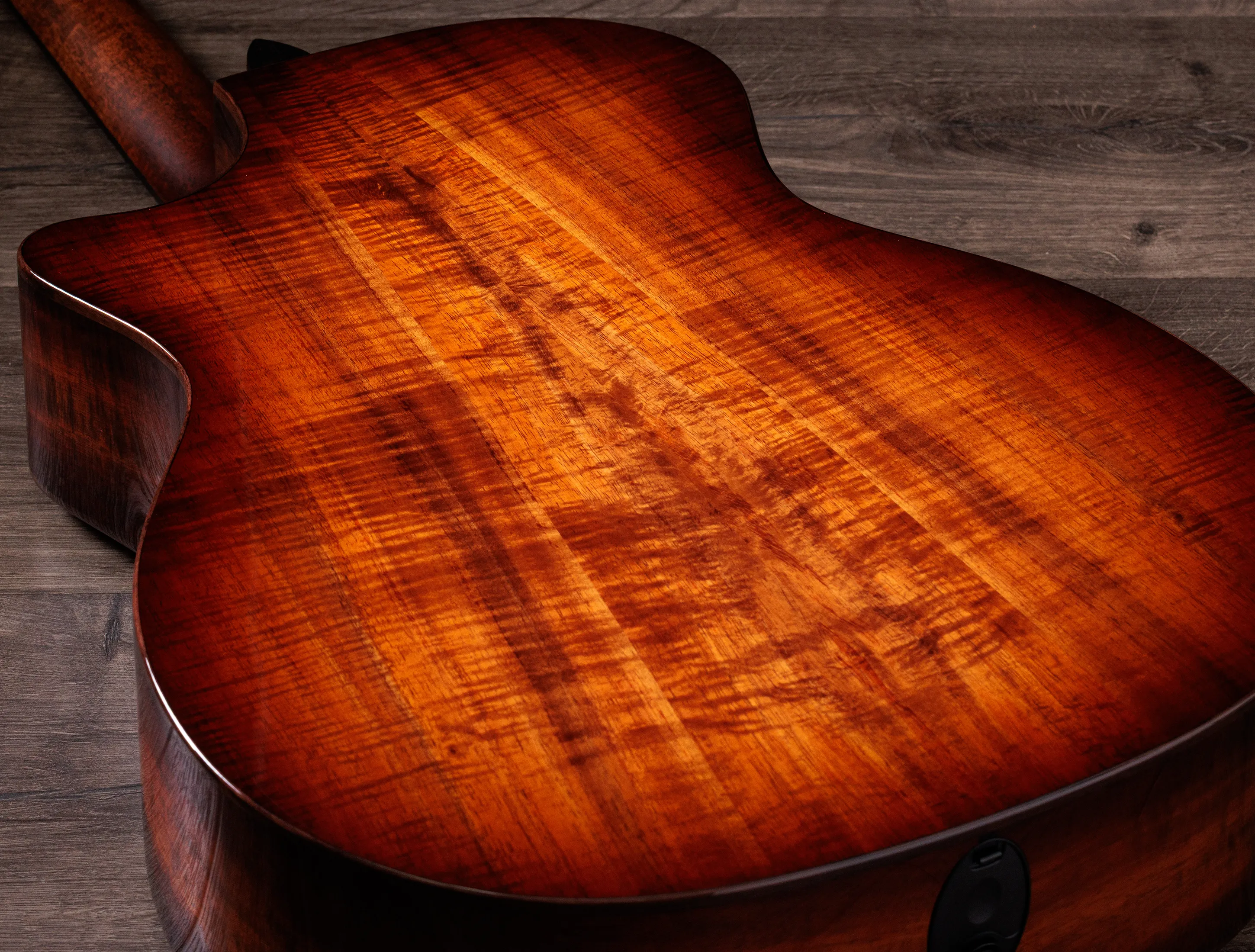 - Boden & Zarge: massives, hawaiianisches Koa (Selected-Grade)