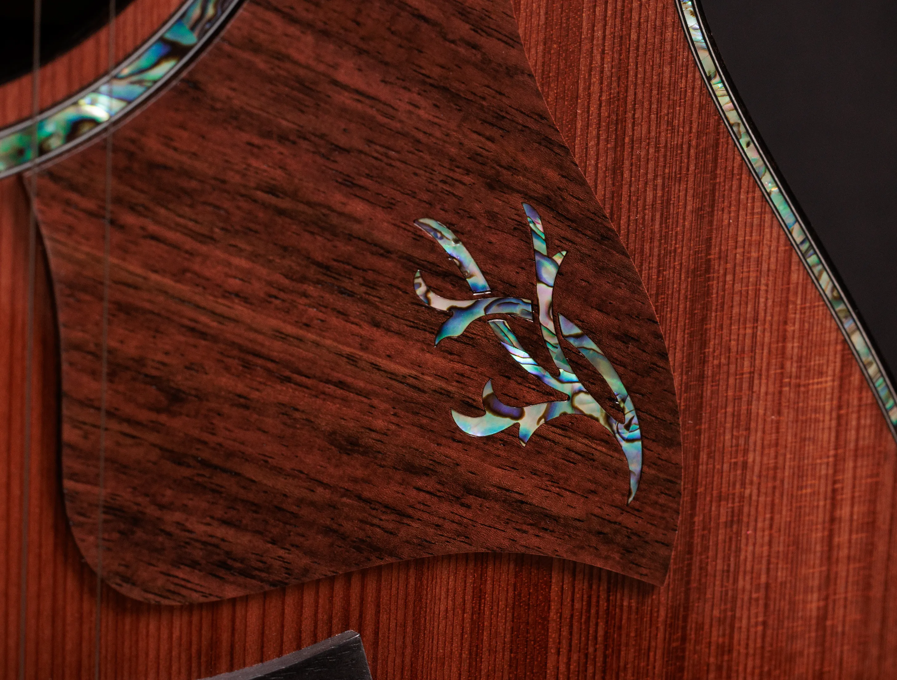 - Griffbretteinlagen: aufwendige Paua Einlagen "California Vine"