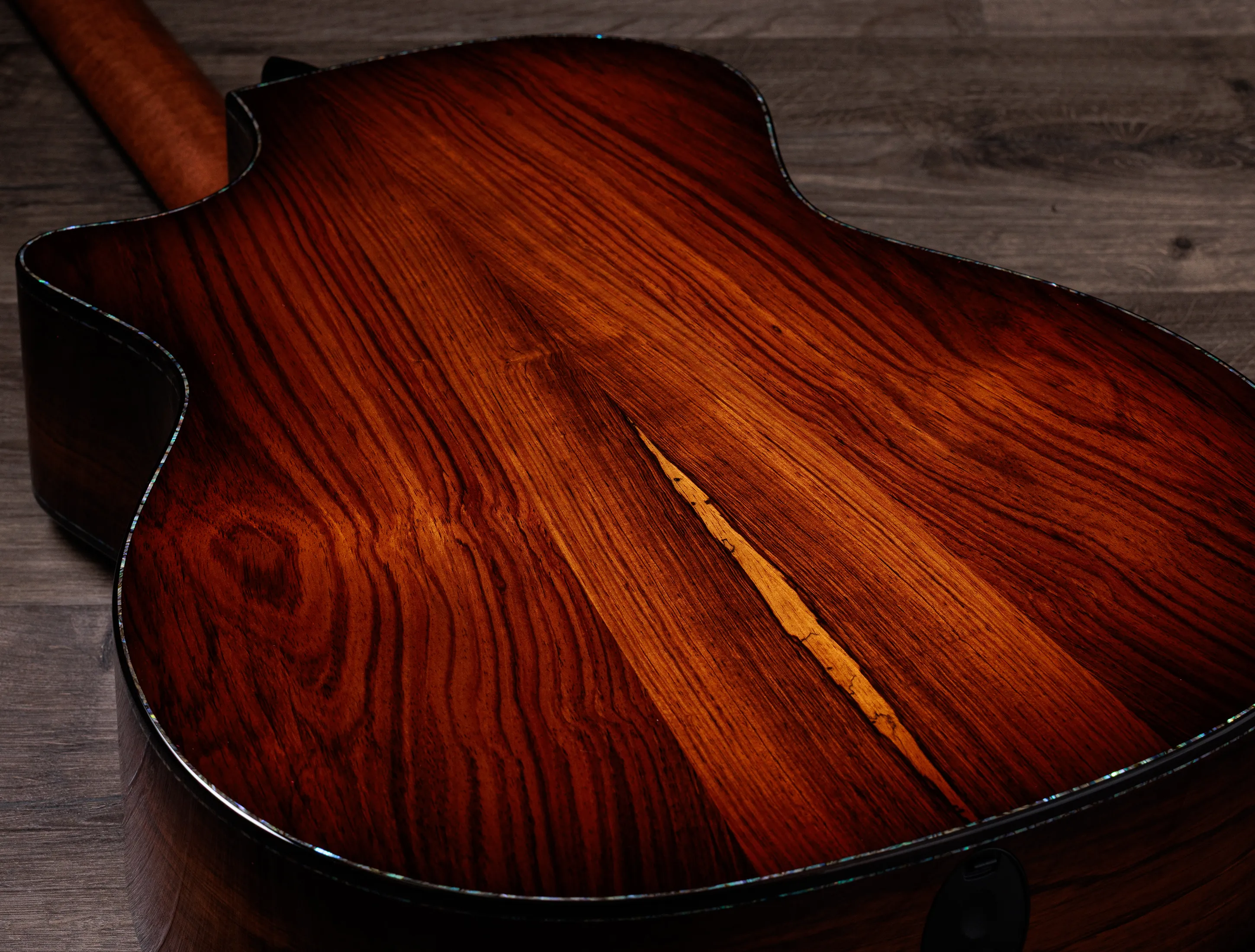Bereits der Name verspricht einiges und das tut er auch. Jahrzehnte lang "versunkenes" Holz mit der ganzen Kraft der Mineralien eines kalifornischen Flusses ziert dieses edle Stück auf der Decke. Und neben den klanglichen, fantastischen ausbalancierten Spektren ist es schlichtweg wunderschönes, ein optisches Highlight. Extrem selten.....somit sehen Sie den Stellenwert welchen Taylor dieser Gitarre zugrunde gelegt hat!